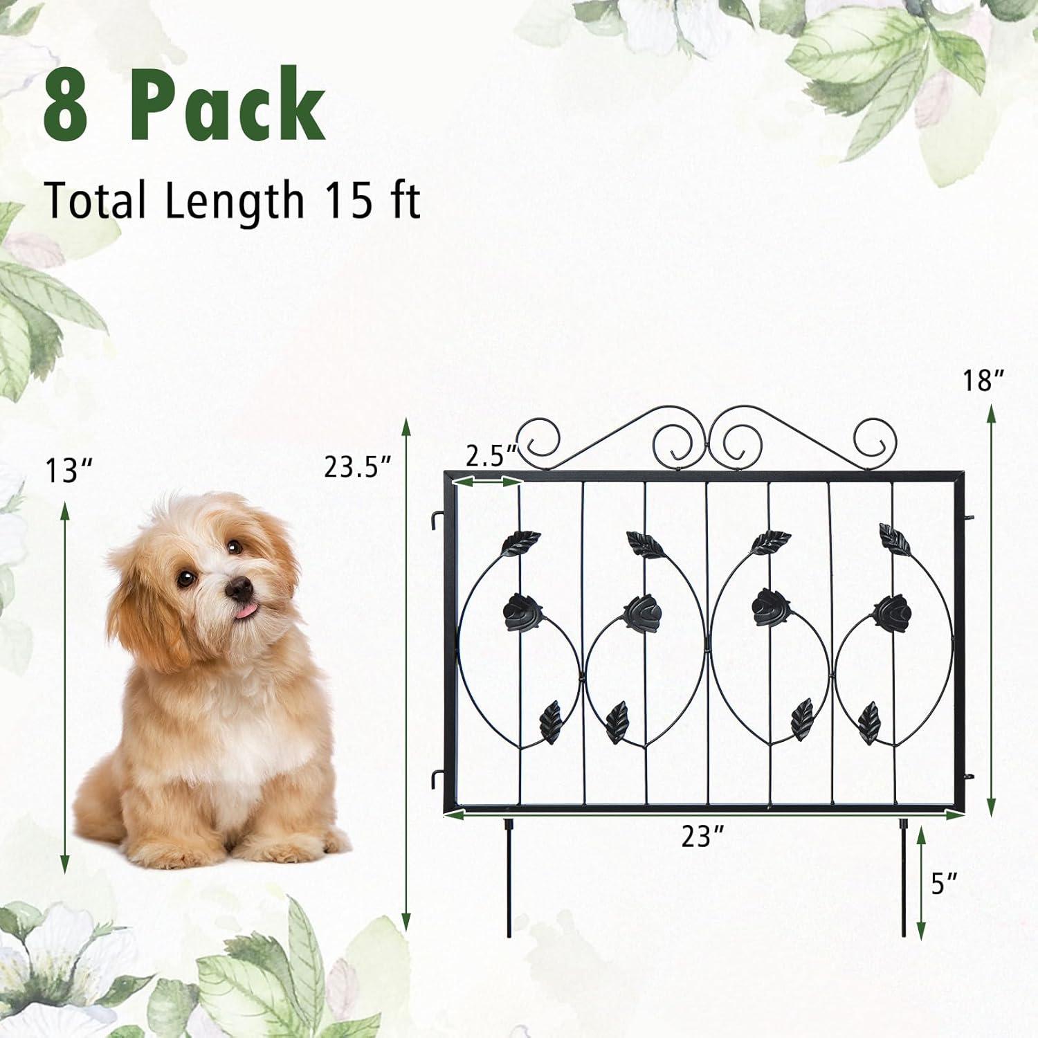 Giantex Decorative Garden Fence 8 Pack, 23.5”(H) x 15.3ft (L) Rustproof Metal Fencing Animal Barrier for Small Dogs Rabbits, Flower Bed Edging Fence Border for Outdoor Yard Patio Landscape Decor