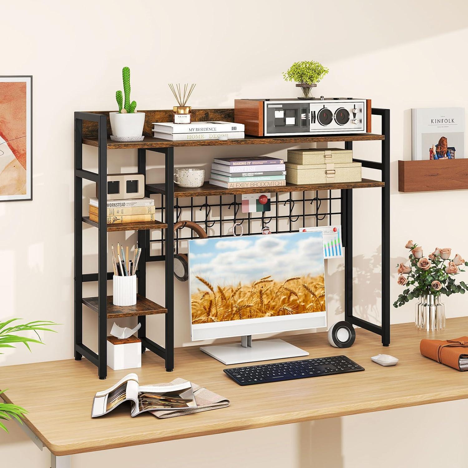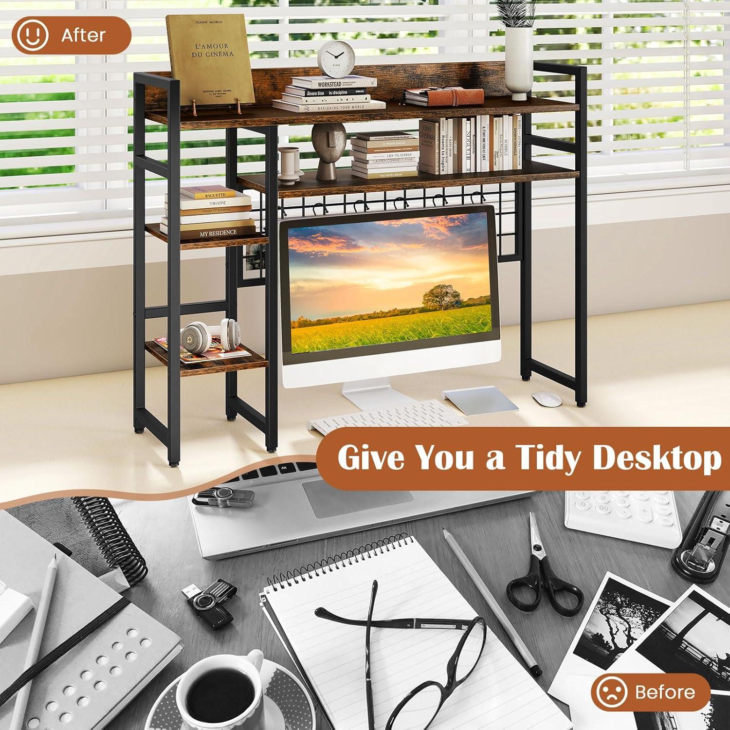 Optimal Organization: The desk shelf features 4 open shelves to store a variety of items and let you experience the ultimate desk organization. Moreover, it doubles as a charming bookcase or display stand, ensuring a tidy and clutter-free workspace.