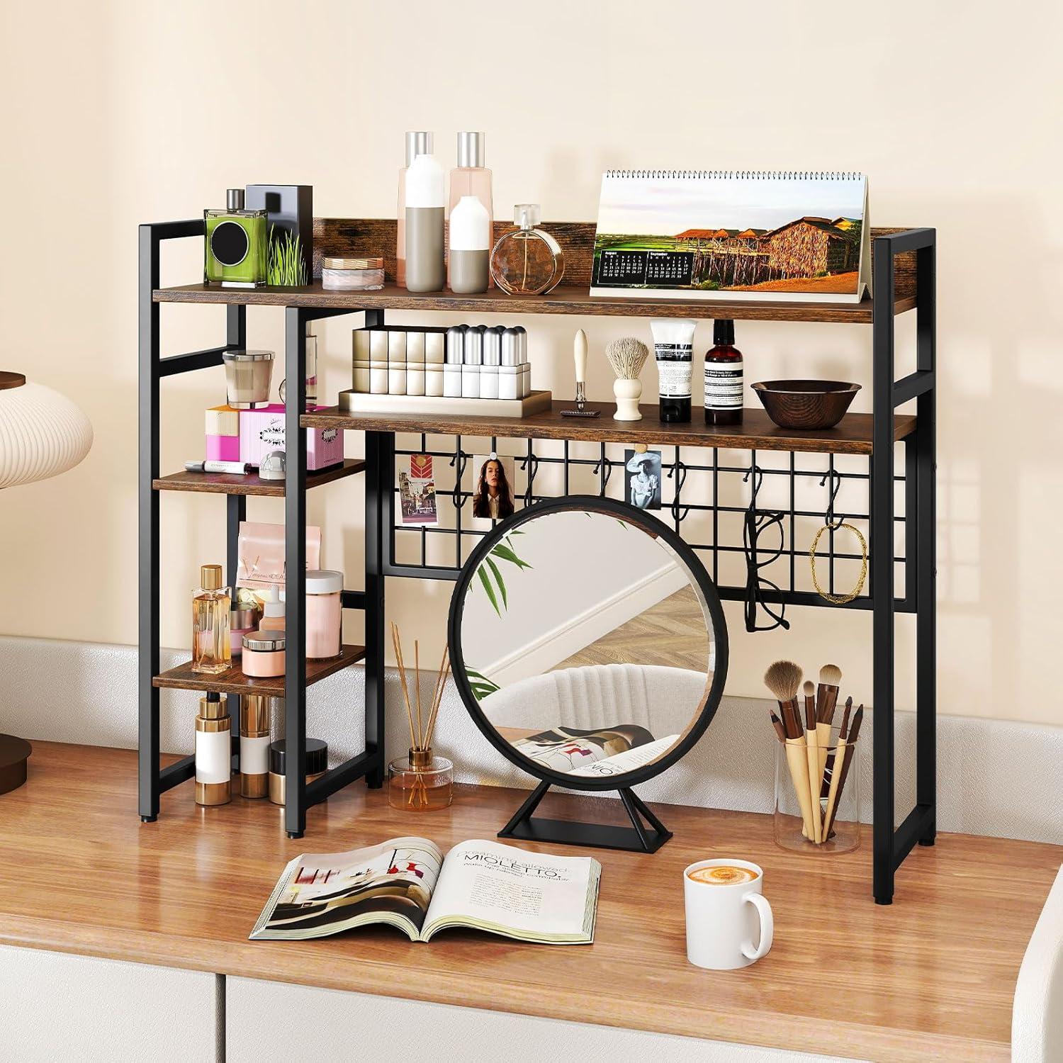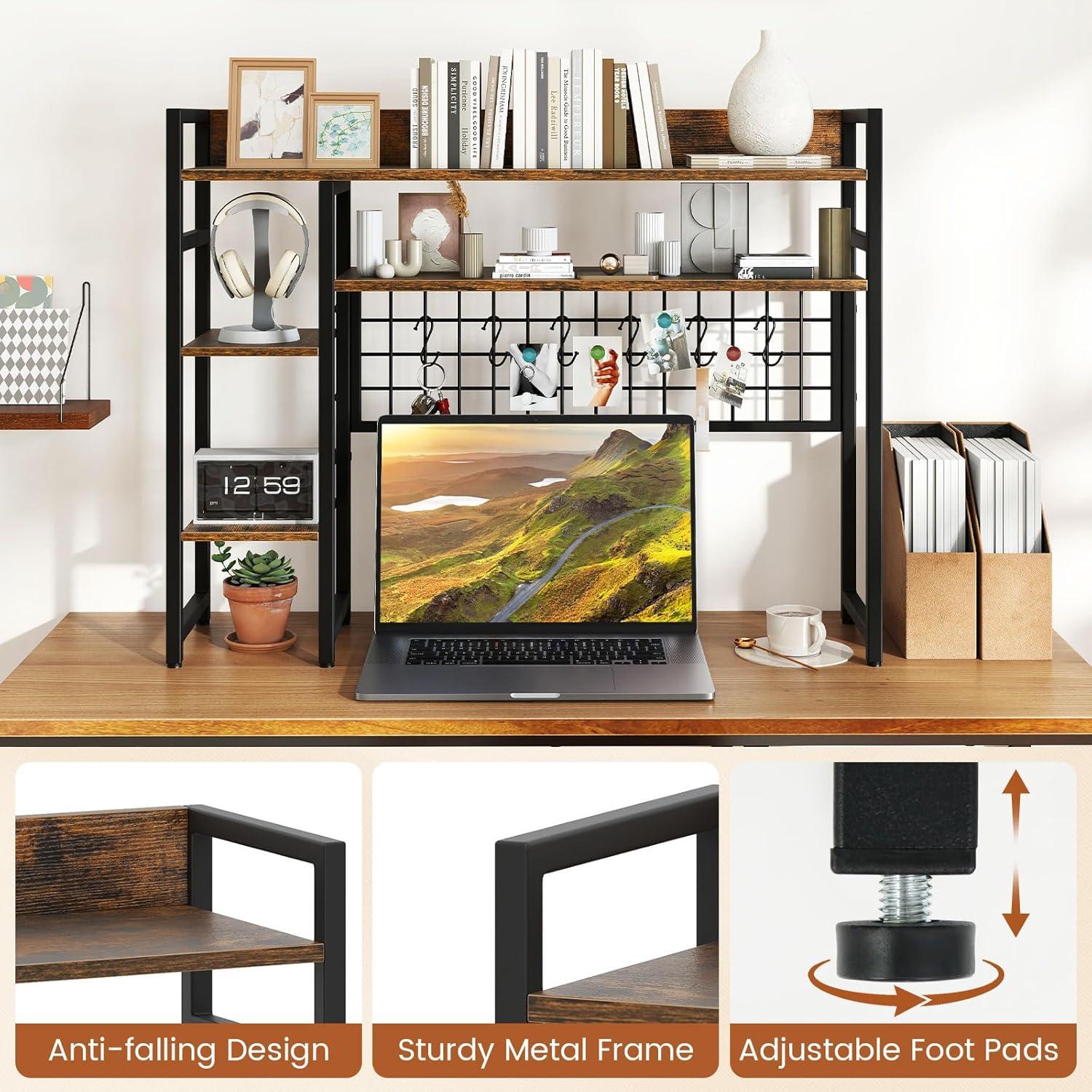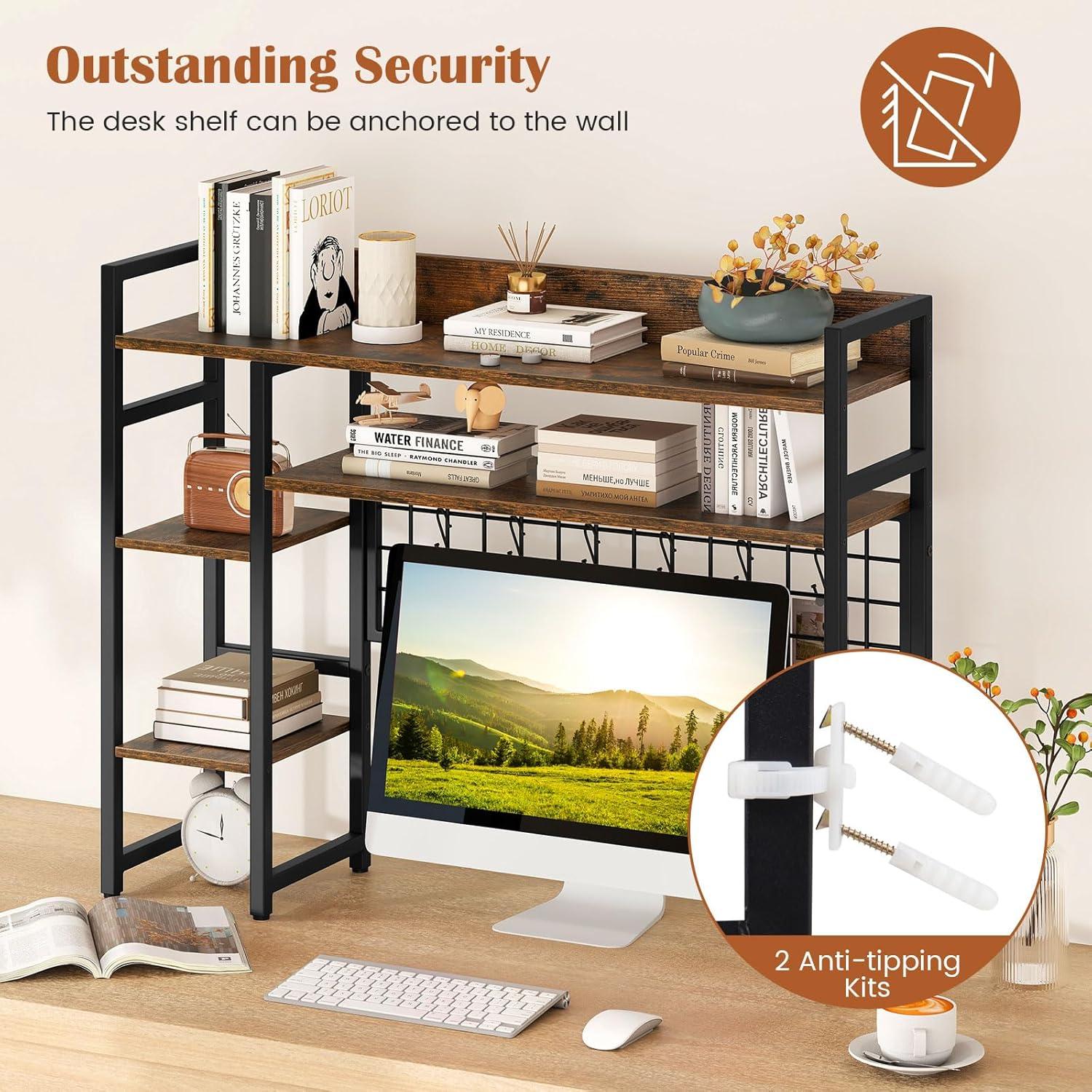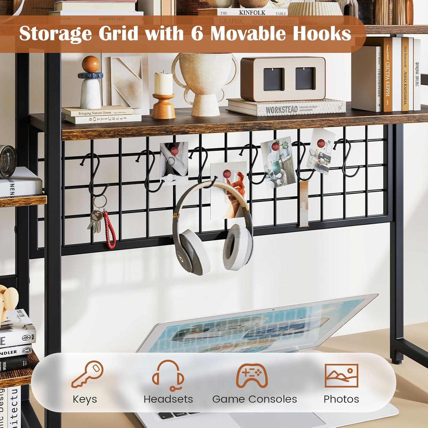 Storage Grid with 6 Hooks: Equipped with a practical storage grid, the countertop hutch is perfect for organizing game consoles, headsets, keys, photos and more, providing a neat look and easy access. Besides, the 6 movable hooks offer flexibility and convenience.