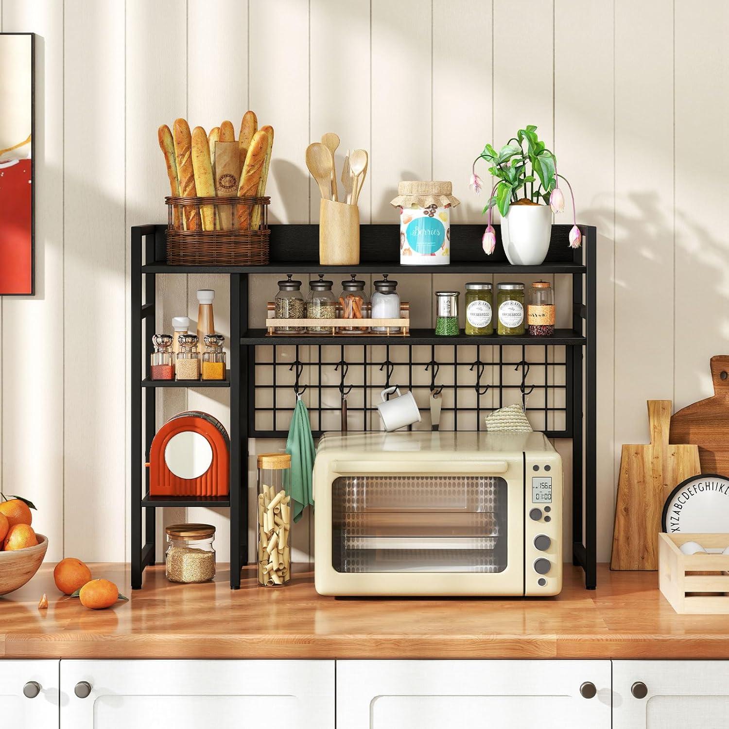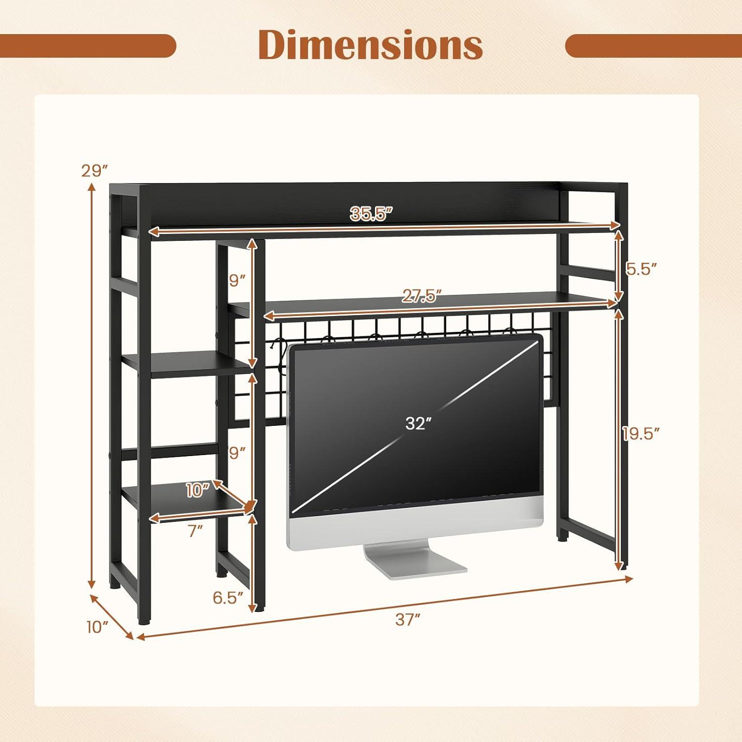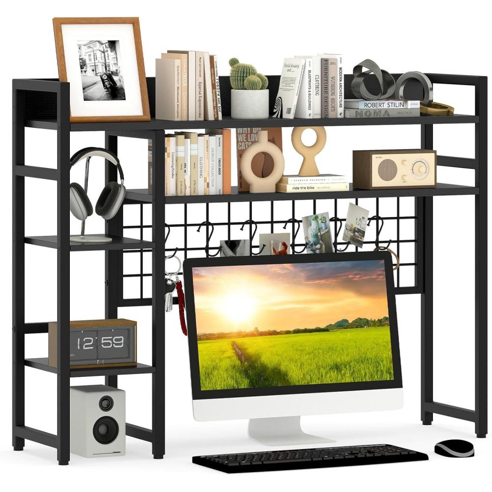 Storage Grid with 6 Hooks: Equipped with a practical storage grid, the countertop hutch is perfect for organizing game consoles, headsets, keys, photos and more, providing a neat look and easy access. Besides, the 6 movable hooks offer flexibility and convenience.
