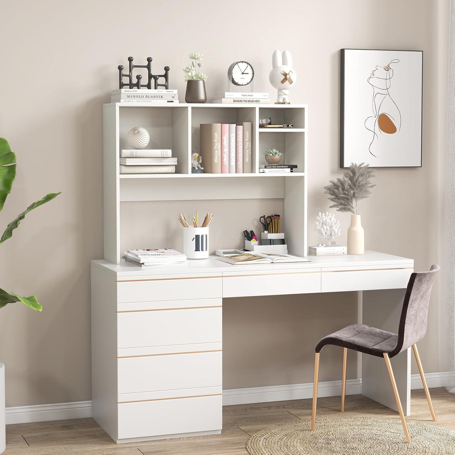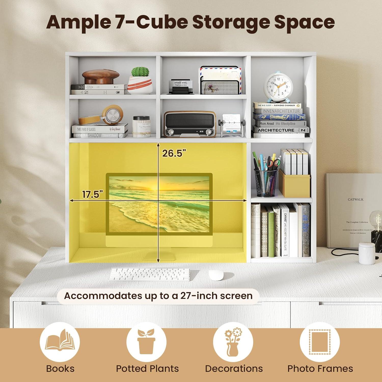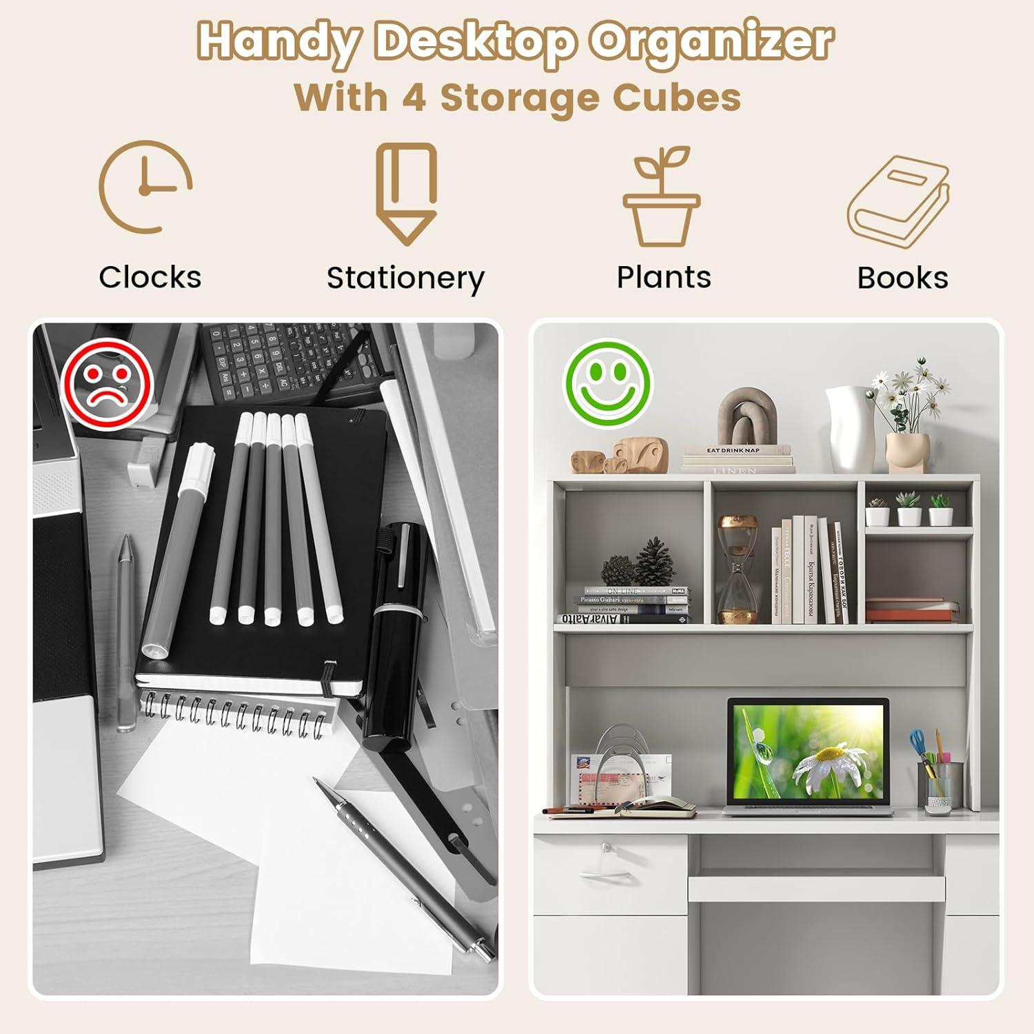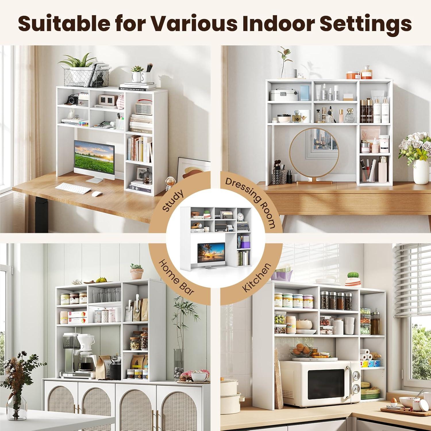 [Wide Applications]: The desk hutch is both functional and decorative, suiting for home and office. Also, it will be an awesome choice for college dorms. You can use it on the writing table, computer desk, vanity table, office desk and so on.