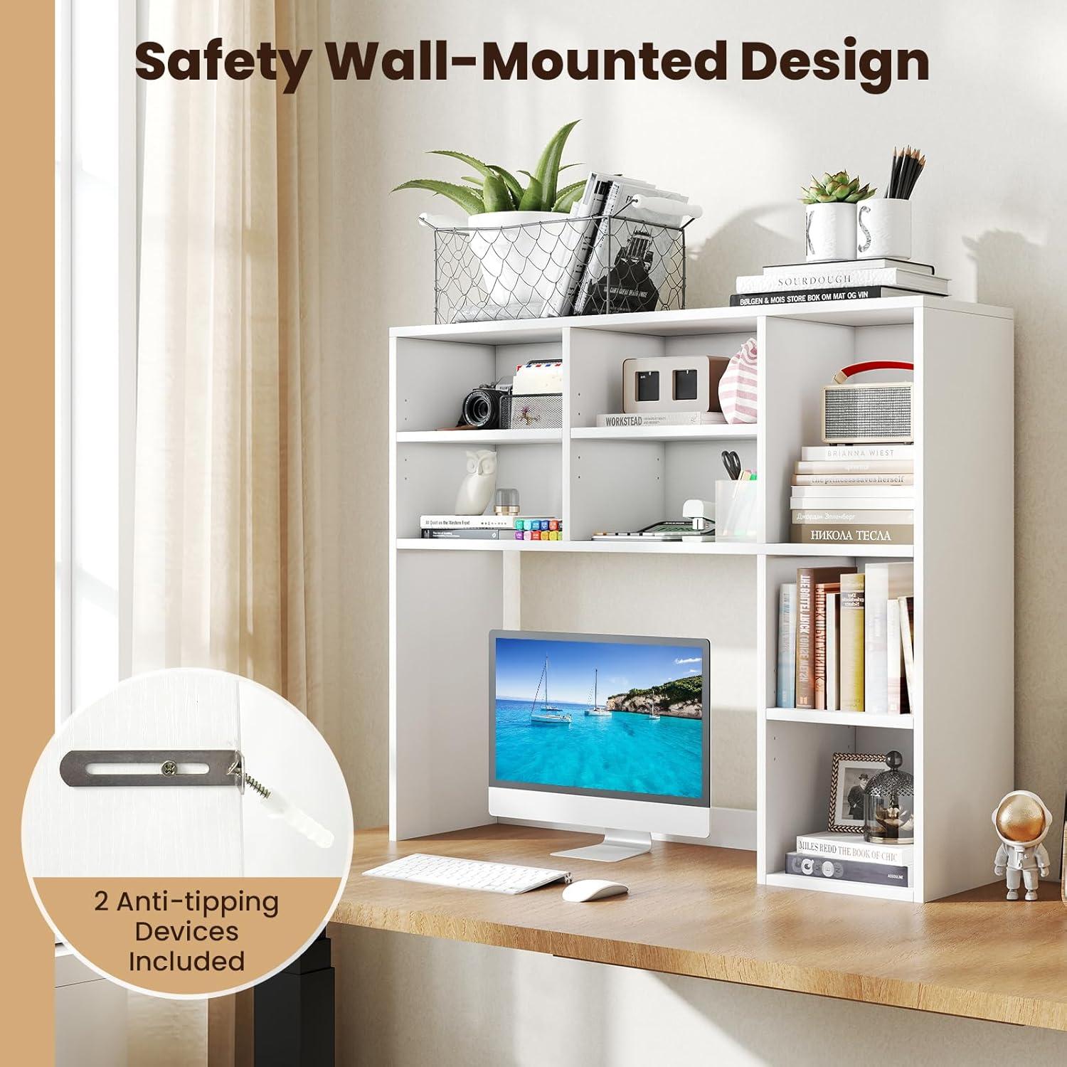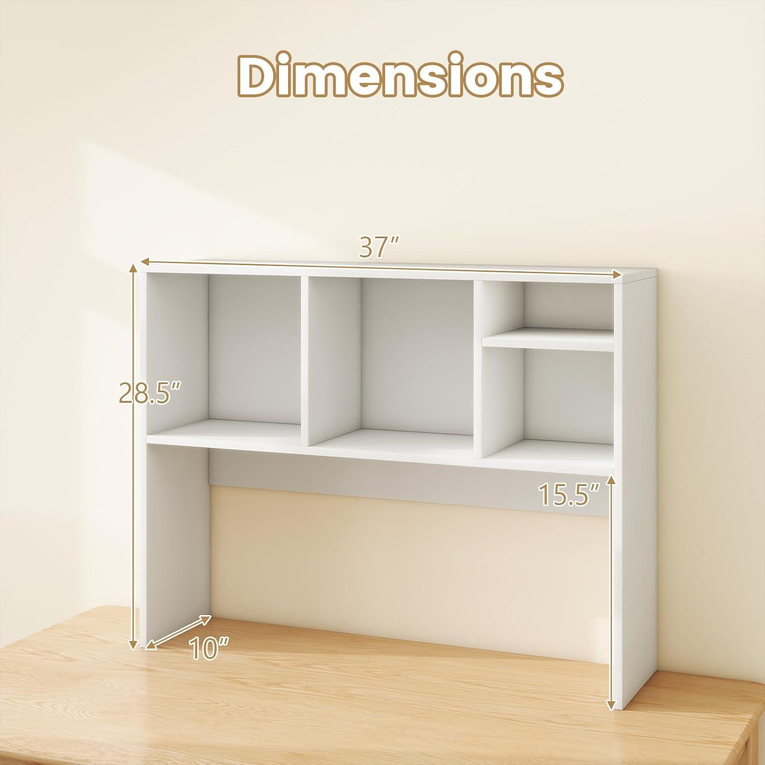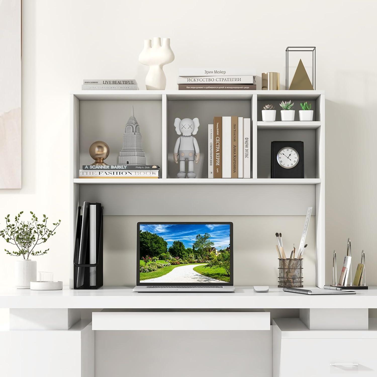 Giantex Desktop Bookshelf, Countertop Storage Hutch with 4 Shelves for Computer Desk, Dressing Tabletop Display Rack, Multipurpose Desk Hutch Storage Organizer for Home Office Dorm (Grey Oak)(White)