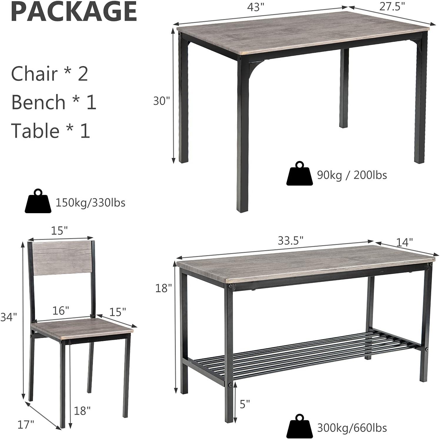 Giantex Dining Table Set for 4, 43″ Kitchen Table and Chairs, Dining Bench with Metal Frame & Storage Rack, 4-Piece Modern Functional Desk Set for Dinette, Small Space, Apartment, Restaurant, Brown(Black Oak)