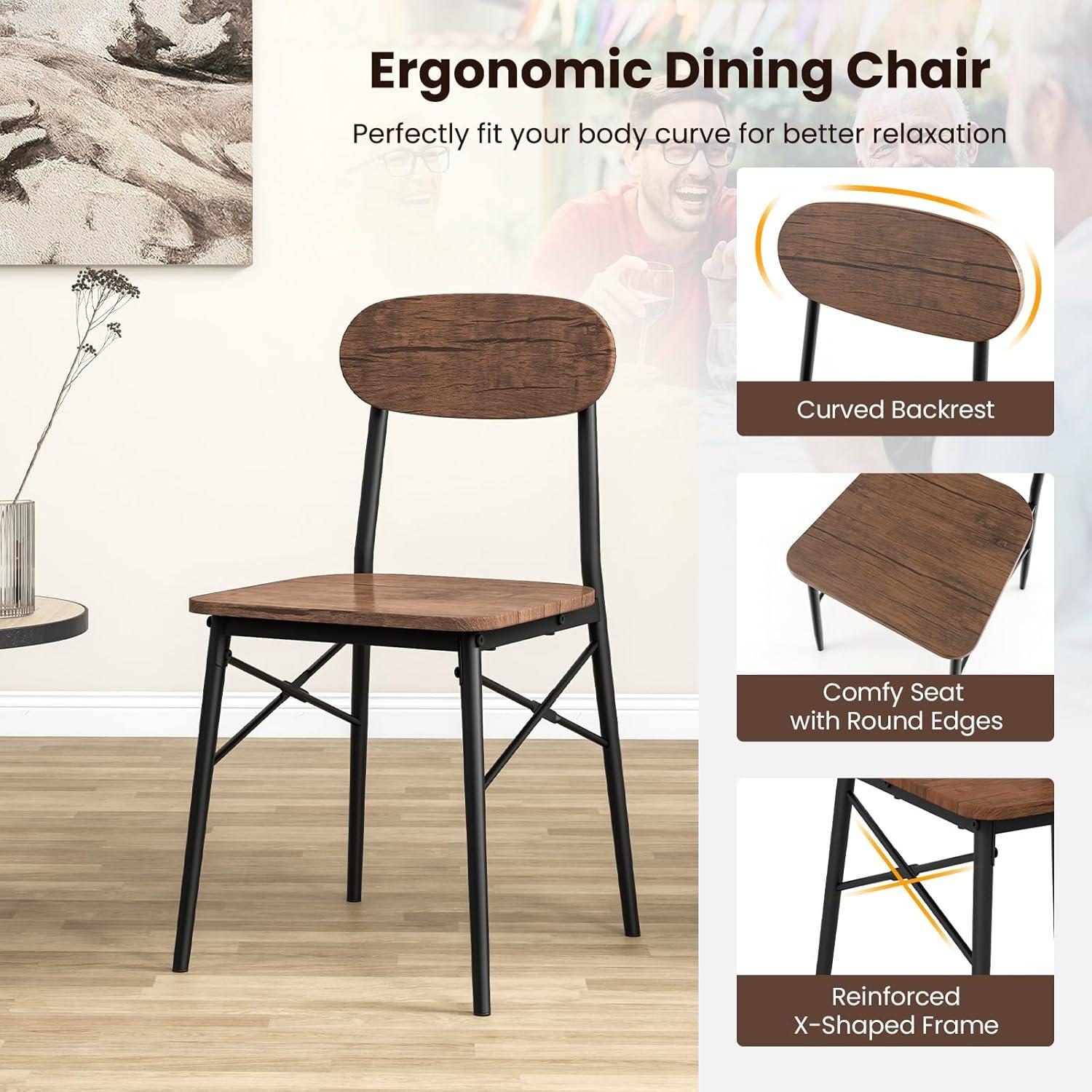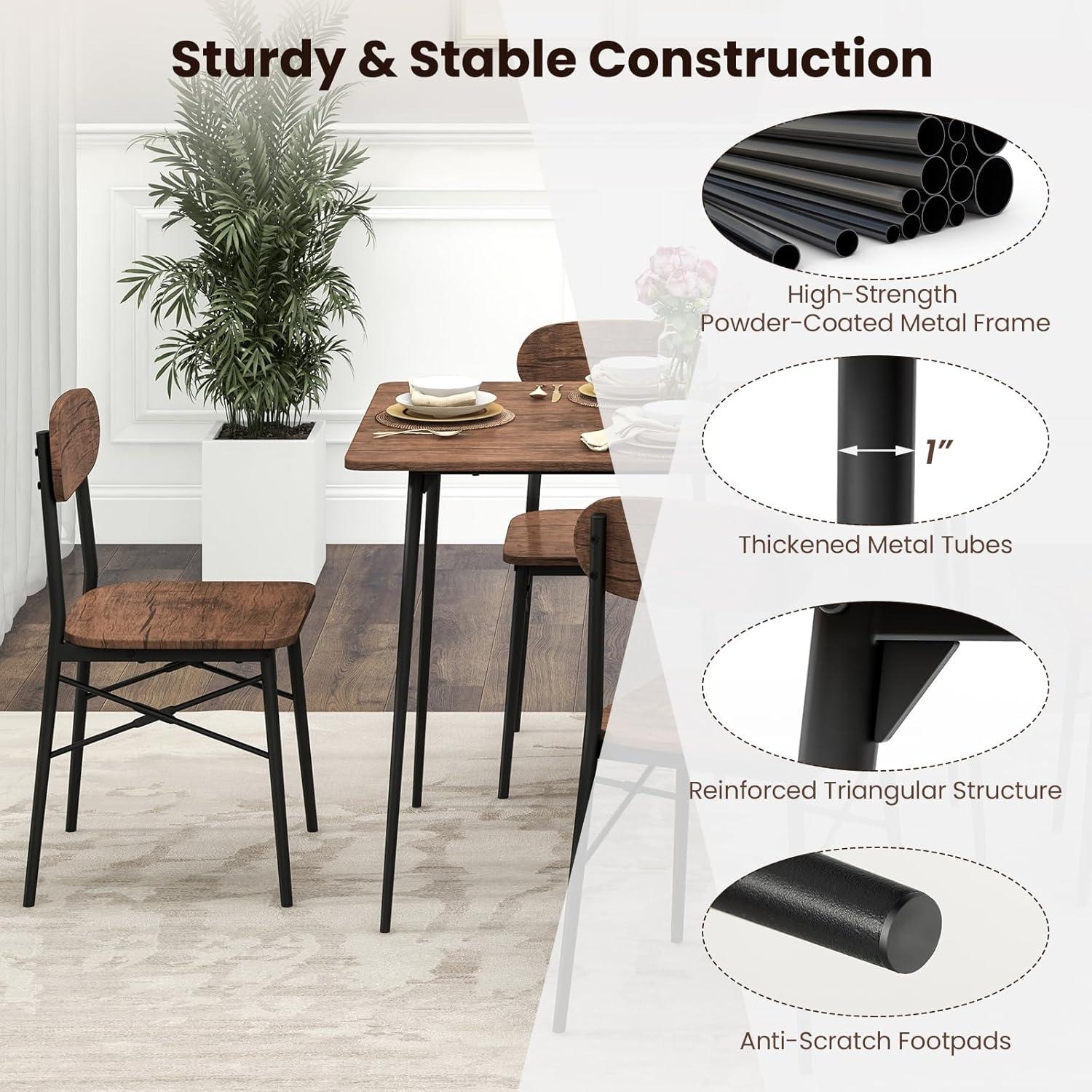 Our 5-piece dining table set includes a table and 4 chairs, making it suitable for various occasions such as family dinners and gatherings with friends. And 4 chairs can be conveniently stored underneath the table when not in use, maximizing floor space and allowing for easy movement around your dining area. Other than that, built with a robust metal frame, our set ensures stability and durability throughout the years. And the tabletop is crafted of veneered MDF boards, which is not only durable but also waterproof, making it easy to clean and maintain. With its rustic and elegant appearance, our dining table set complements any home decor, making it suitable for various scenes like dining rooms, kitchens, cafes, and more.