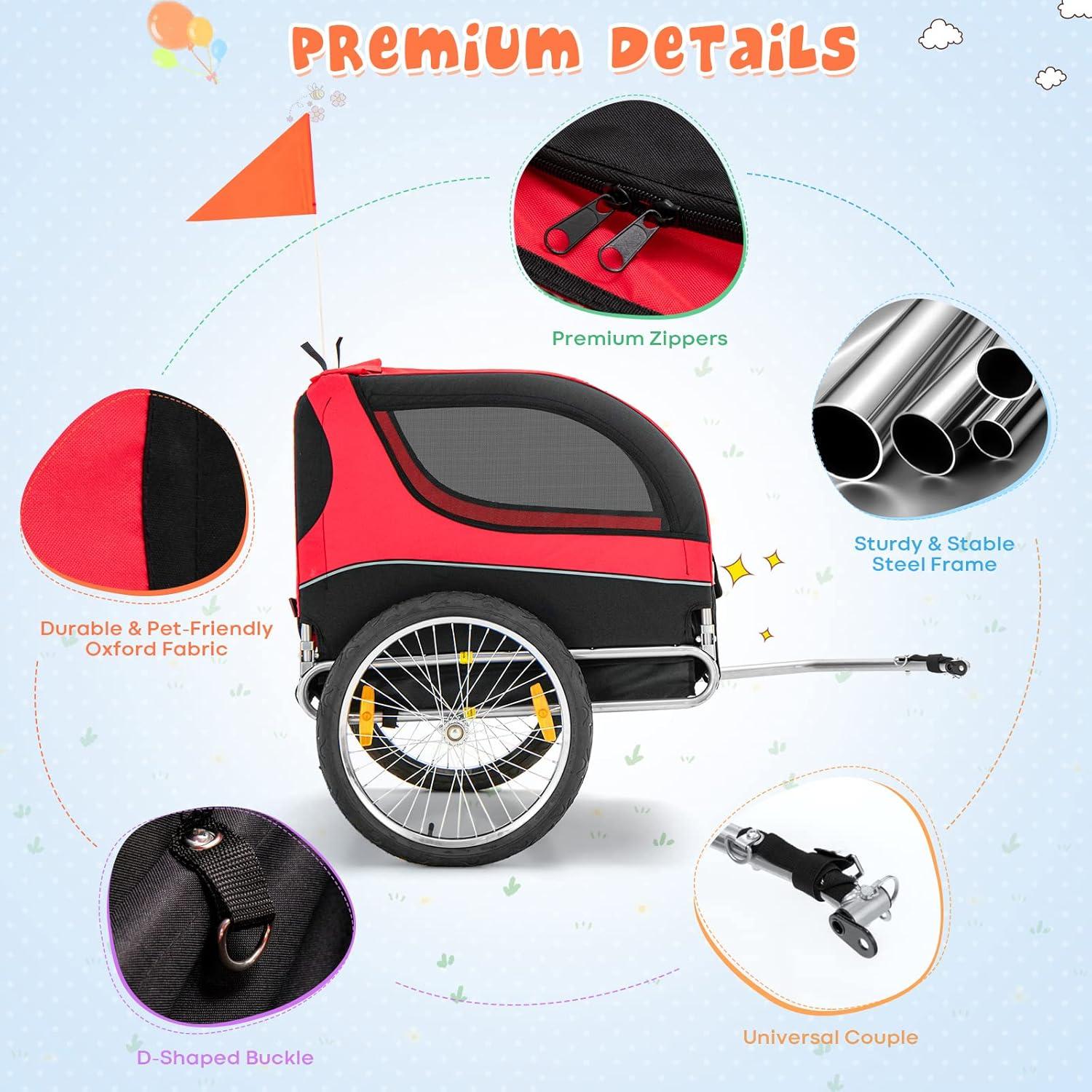 imageGiantex Dog Bike Trailer Pet Stroller Small Medium Dog Bicycle Trailer Carrier Wagon 20quot Large Wheels 3 Doors 2 Windows 8 Reflectors Folding Metal Frame Supports up to 88 lbsRed