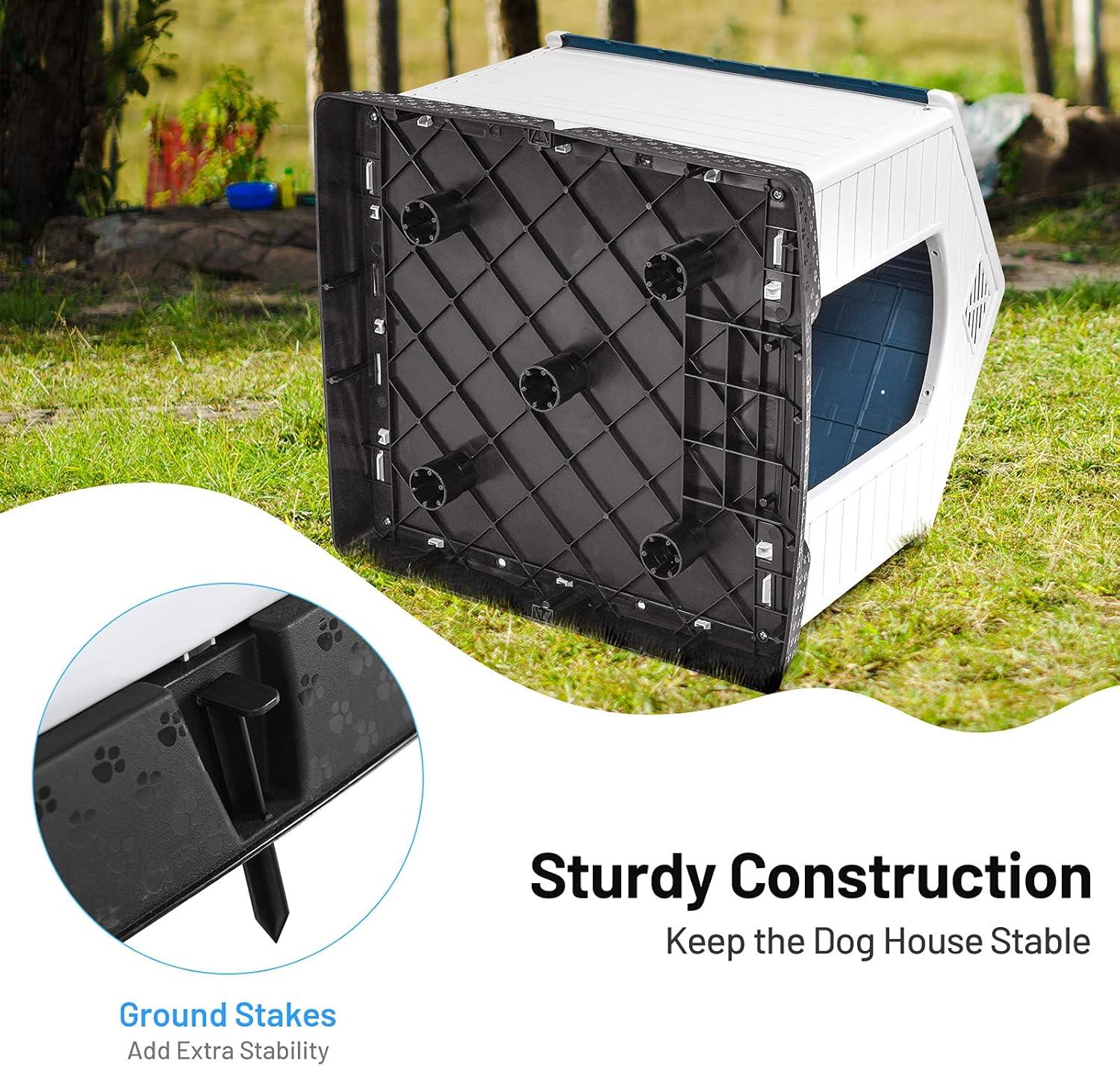 Giantex Dog House for Medium Dogs, Waterproof Plastic Dog Houses with Air Vents and Elevated Floor, Easy to Assemble, Outdoor Cat House Feeding Station Indoor Patio Backyard Dog Kennel House(Blue & White)