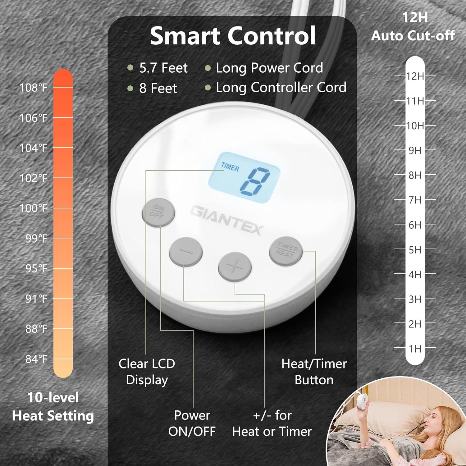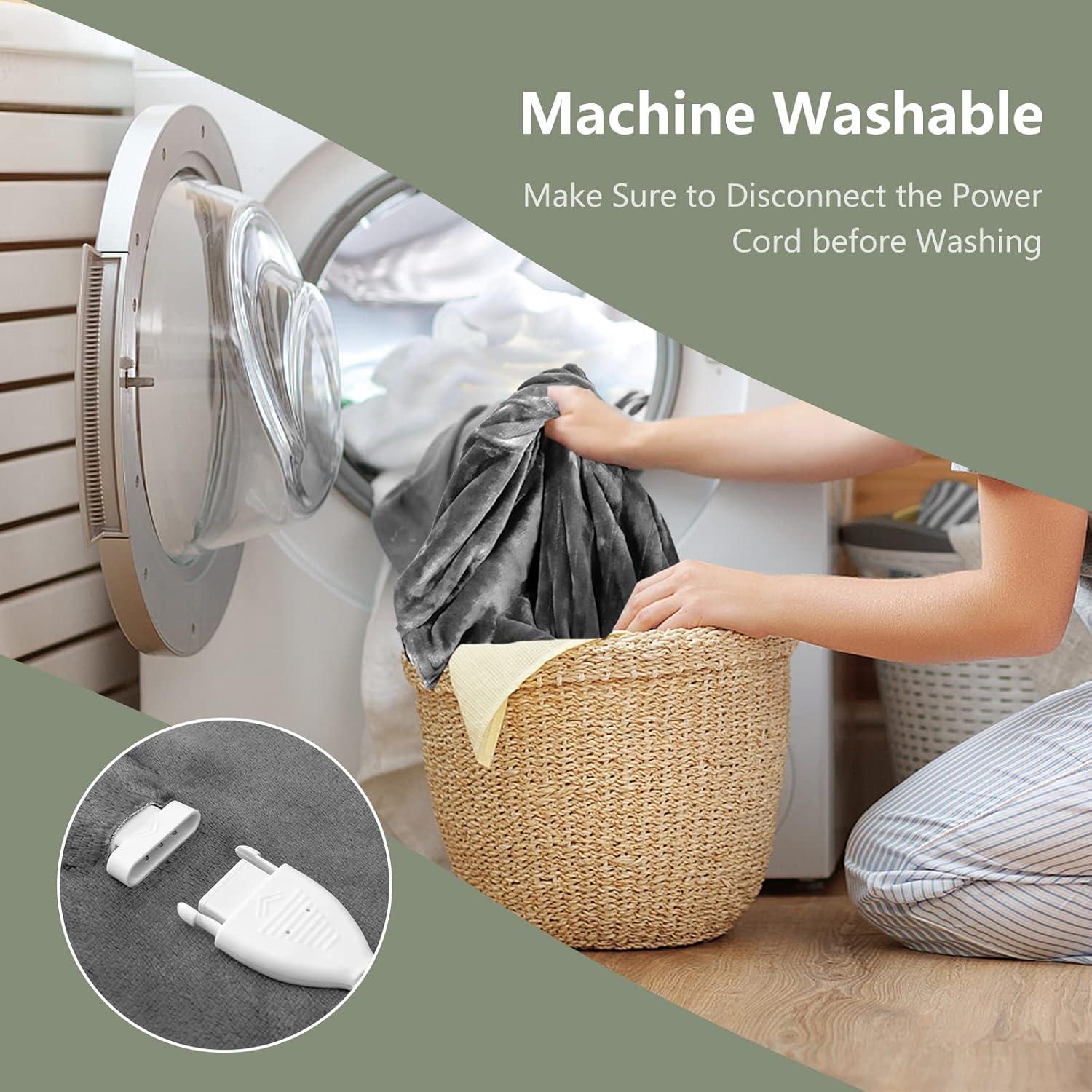 Hand/machine washable heating blanket is lint-free and easy to care for