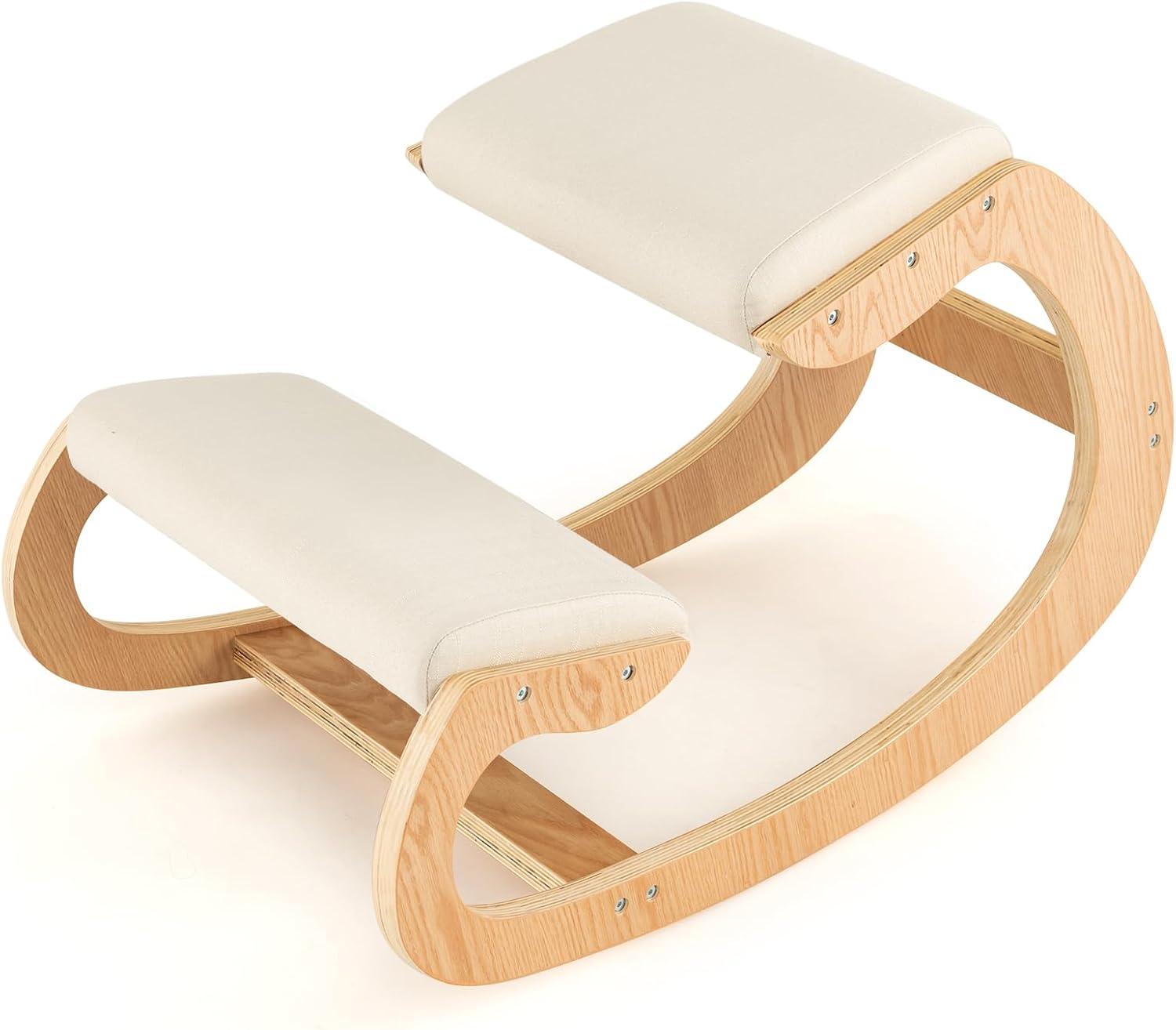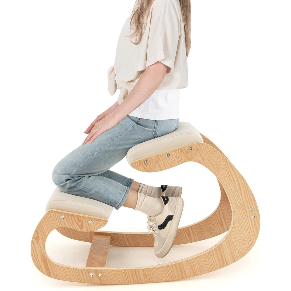 Such an ergonomic kneeling chair will surely make your life more comfortable! Giantex rocking knee chair can keep back upright and improve your poor sitting posture, helping you alleviate back fatigue after sedentary working. And the curved base ensures smooth back and forth motion to improve concentration and relieve stress. For better user experience, high density sponge padded seat and breathable polyester fabric upholstery offer a sense of comfort when sitting on the chair. Besides, solid wood frame leaves you no worry about load bearing capacity and using reliability. Bring this ergonomic kneeling chair home which strikes perfect balance between functionality and stylish design.
