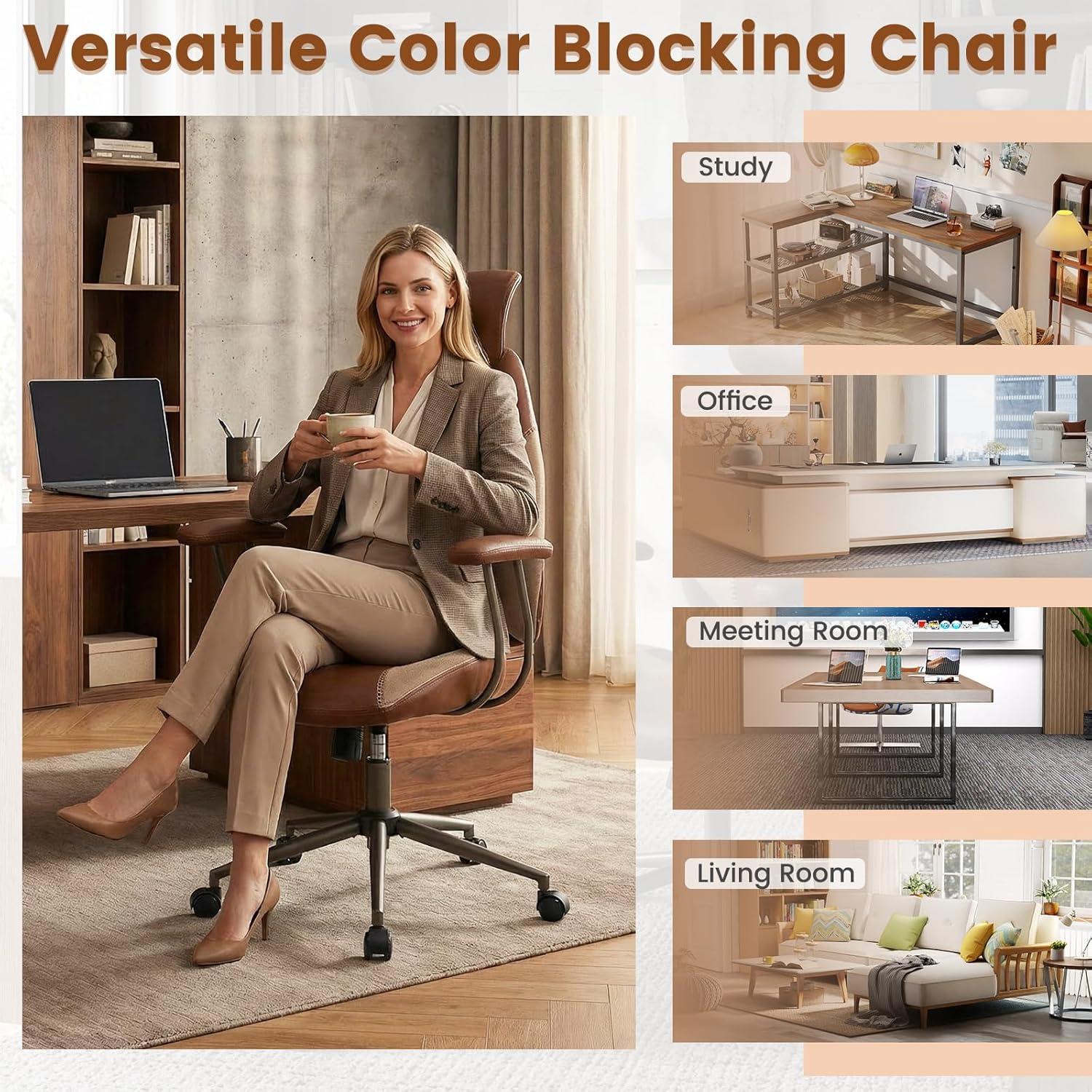 Color Blocking Style & Wide Use: Designed with trendy color blocking and unique stitching patterns, the high back desk chair elevates the look of your study, office, or meeting room, blending style with multi-scene functionality.