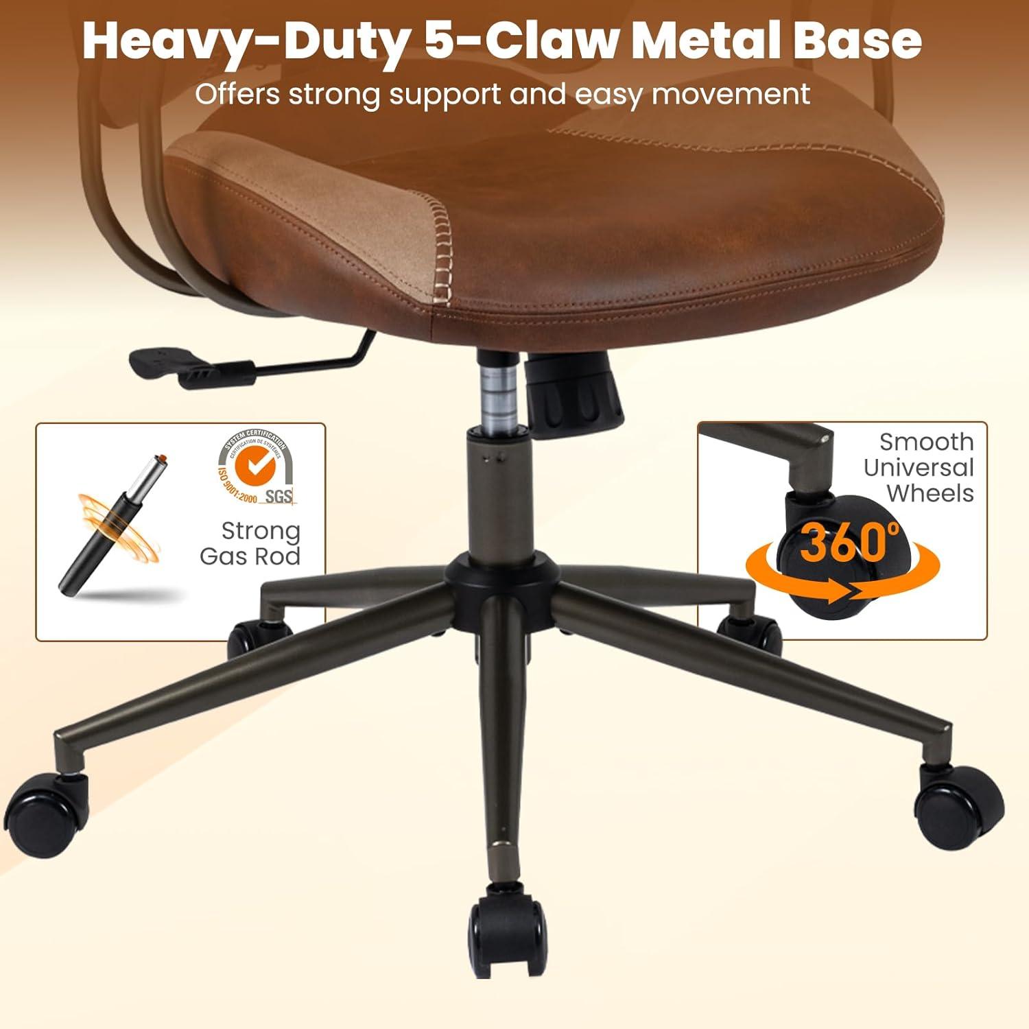 Sturdy Structure & Easy Mobility: Built with an SGS gas rod, the work chair allows for smooth height adjustment. Plus, its heavy-duty metal base provides a large weight capacity, while the 360° universal wheels ensure smooth movement.