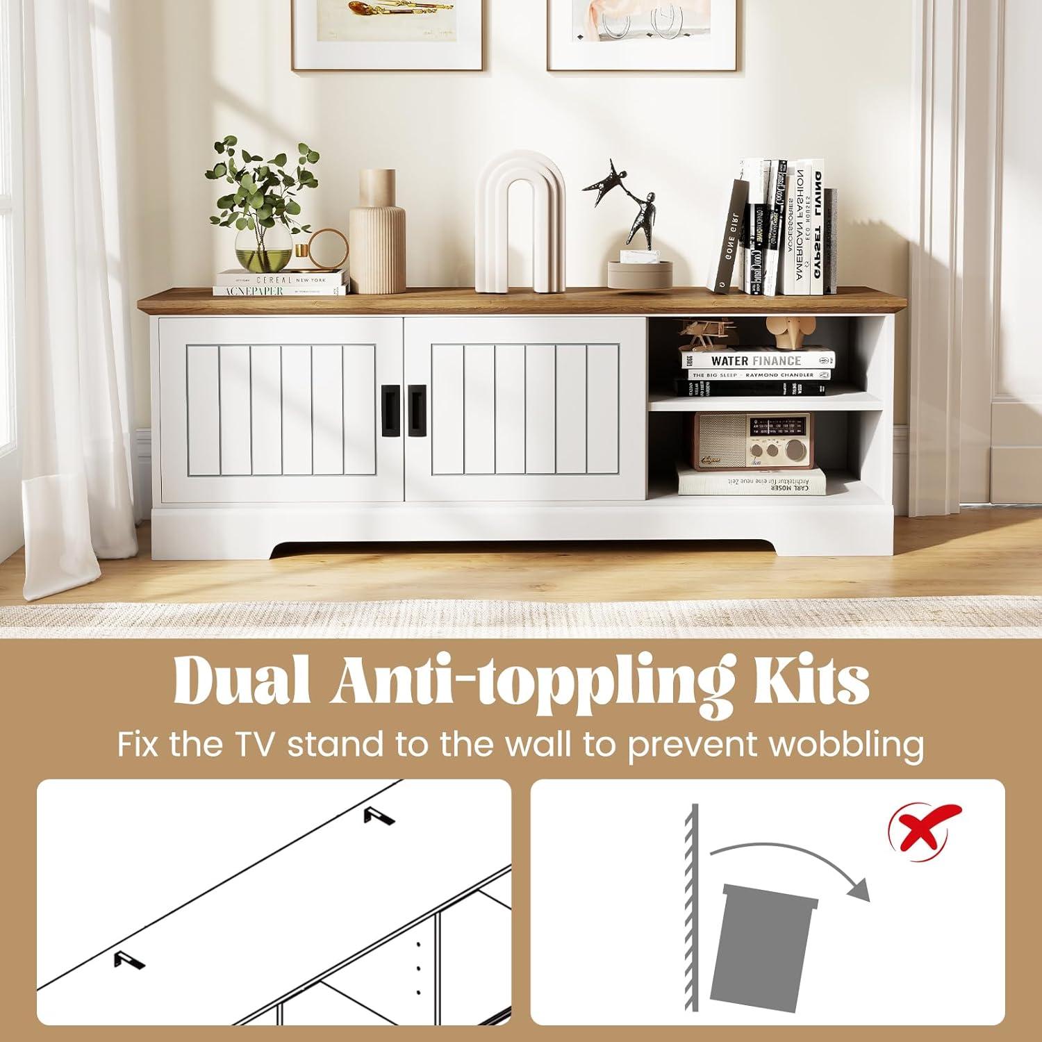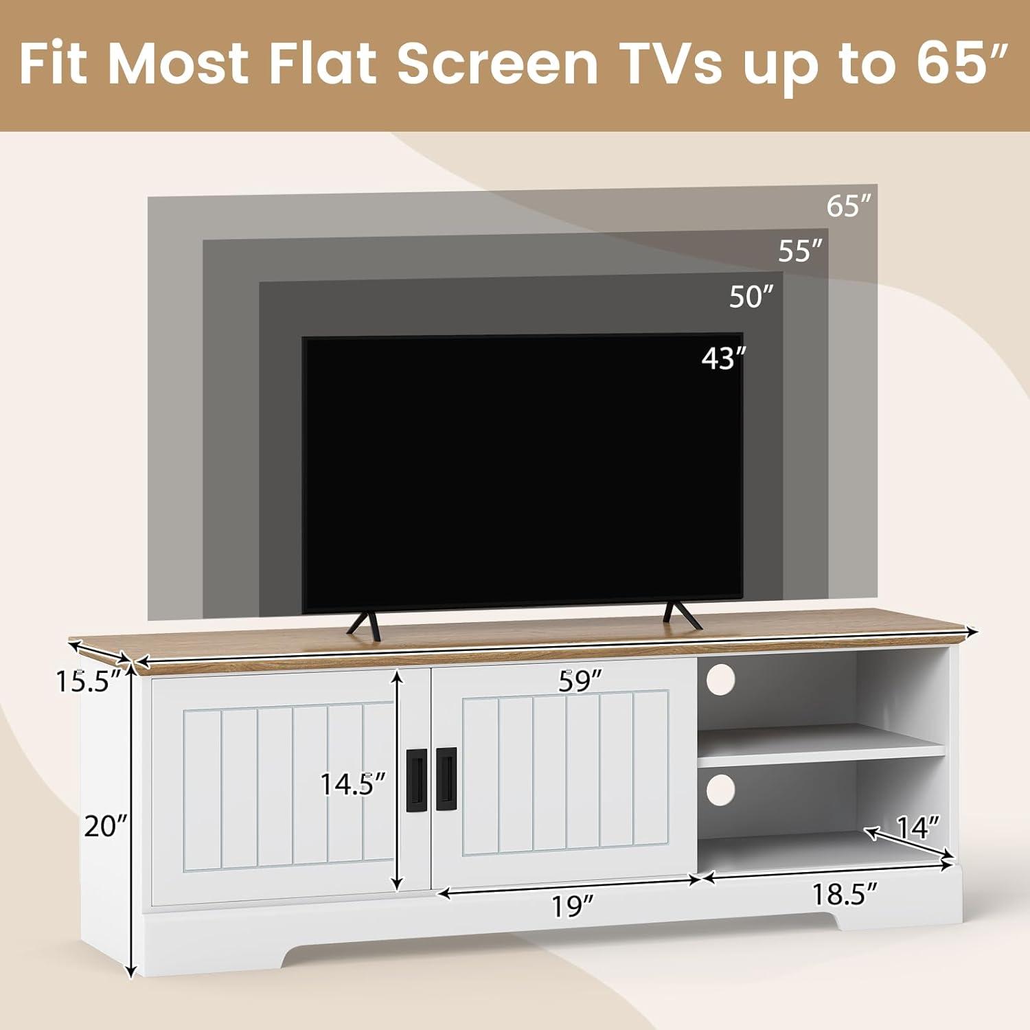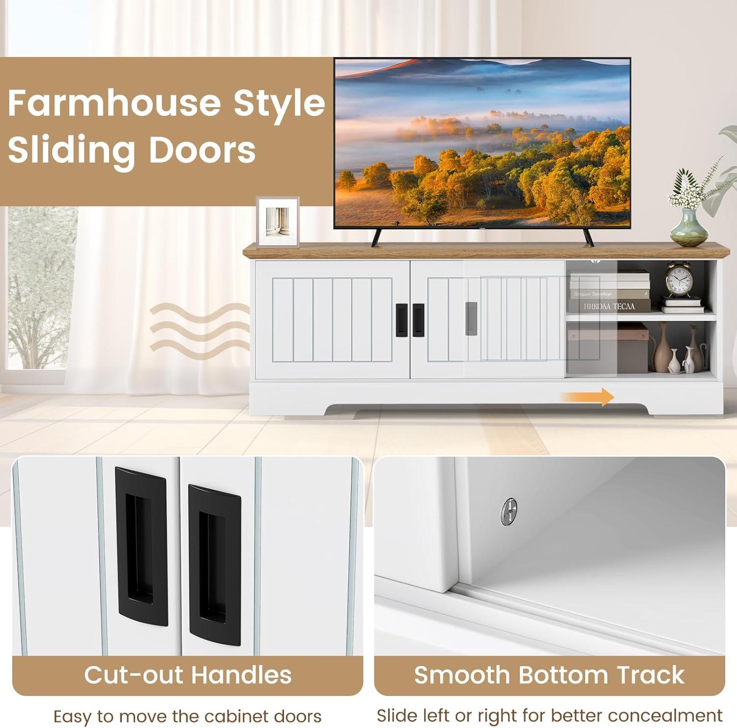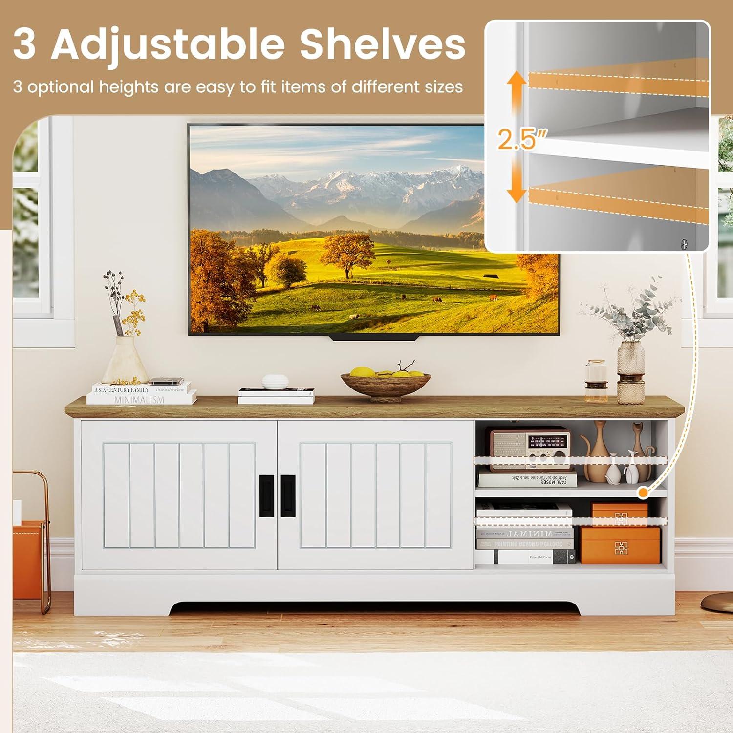 Giantex Farmhouse TV Stand for TVs up to 65", Entertainment Center with Storage Cabinets, Sliding Doors & Adjustable Shelves, Modern Media TV Console Table for Living Room, Bedroom, White & Oak