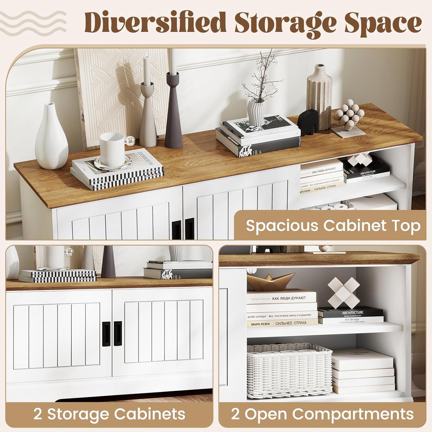 [Farmhouse Style]: Blending farmhouse charm with modern utility, this entertainment center transforms any room with its aesthetic appeal. Whether placed in a living room or bedroom, it serves as a stylish focal point while offering practical media solutions.