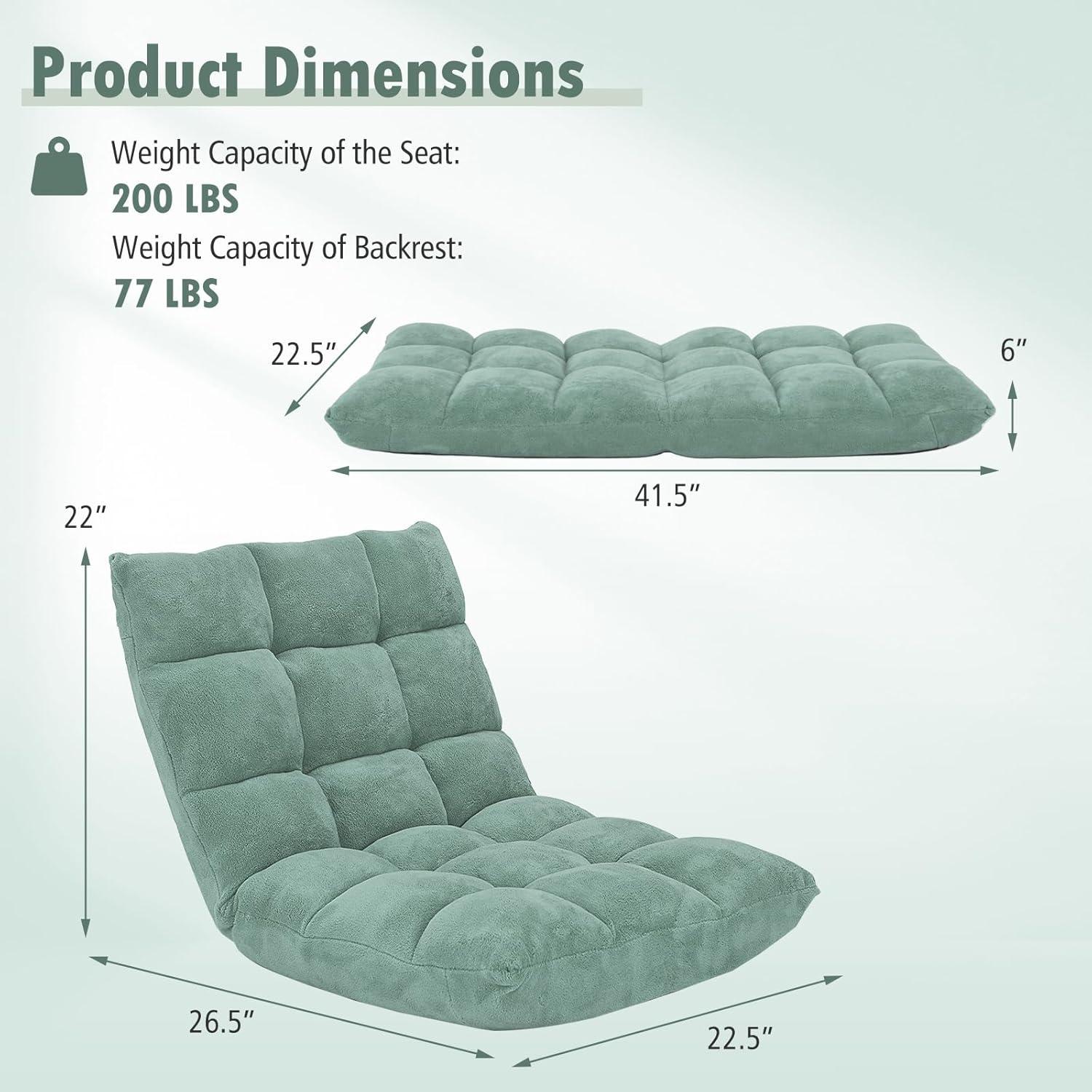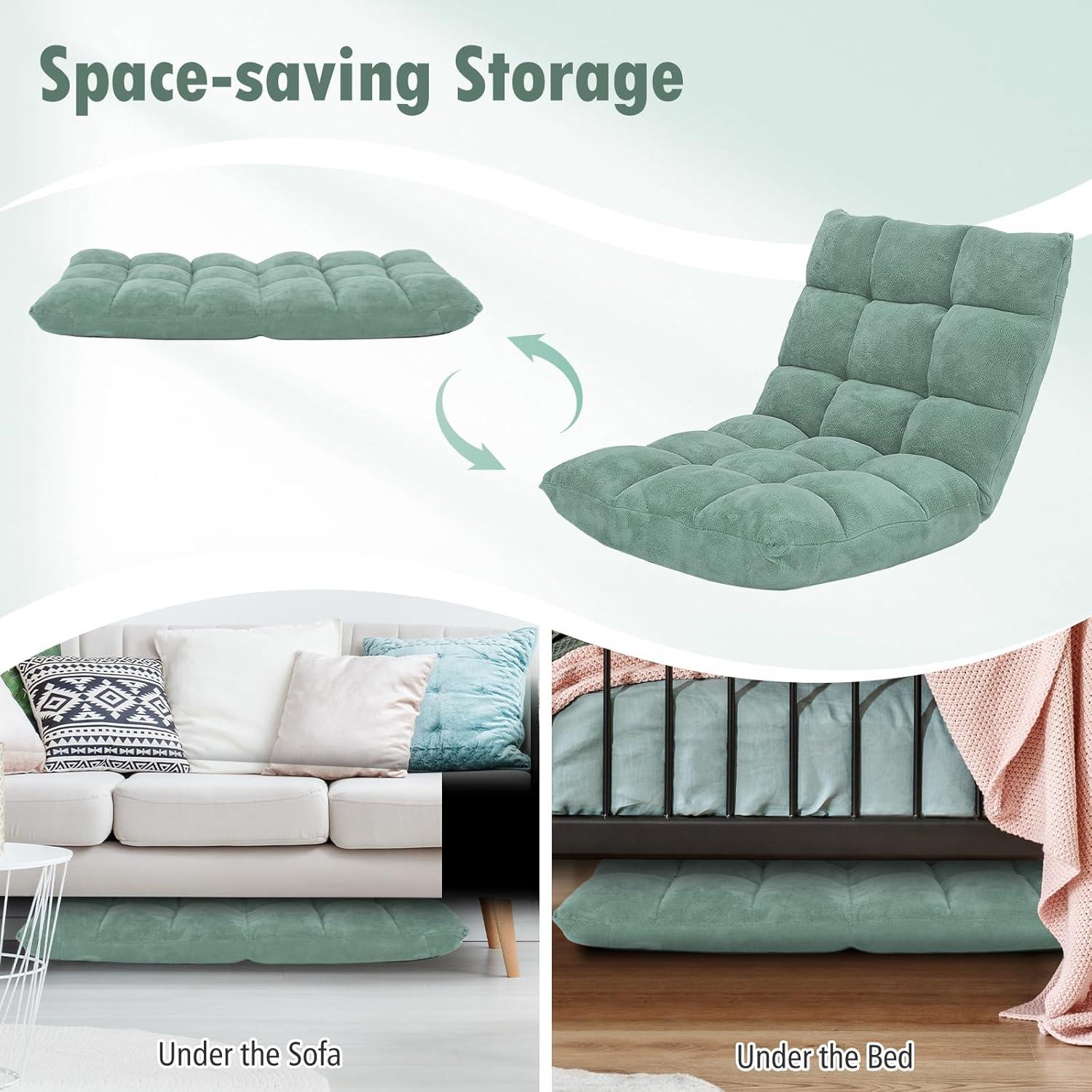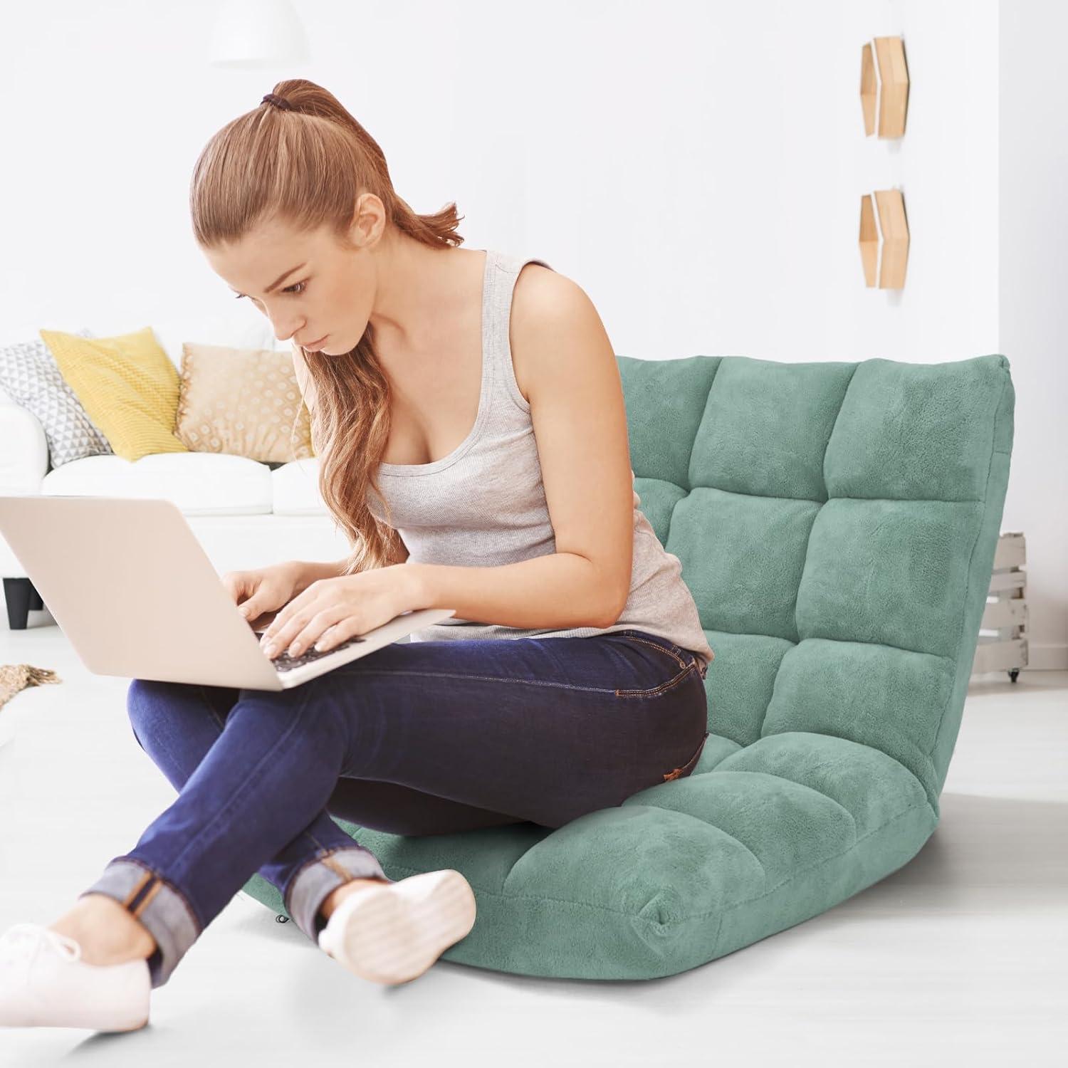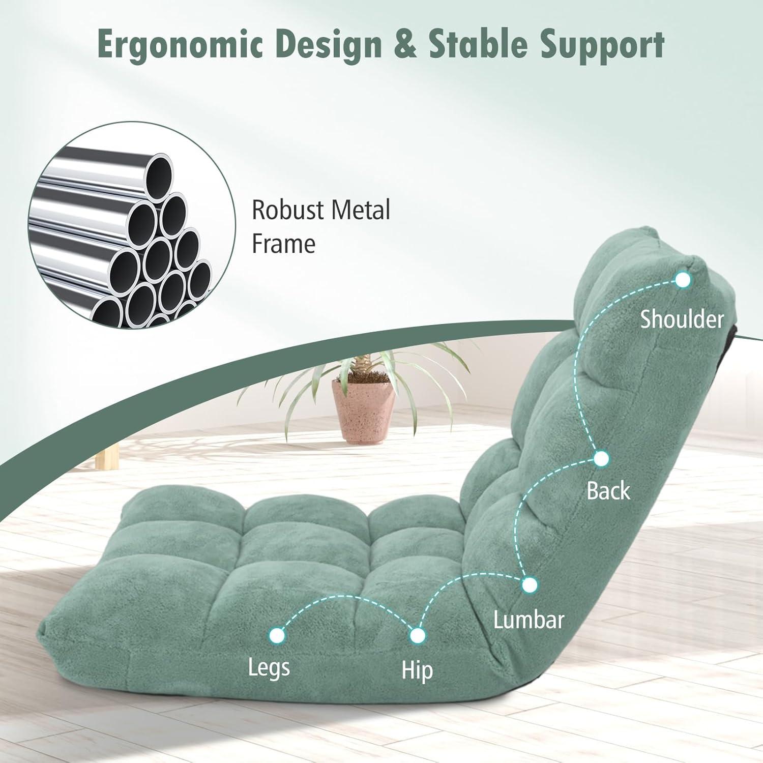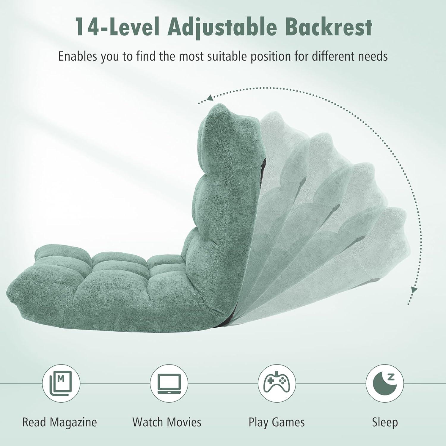 Giantex Floor Chairs for Adults – Floor Gaming Chair with Back Support, Coral Velvet, 14 Adjustable Position, Thick Sponge Padding, Floor Seating Lounge for Reading, Watching TV, Meditation (Black)(Green)