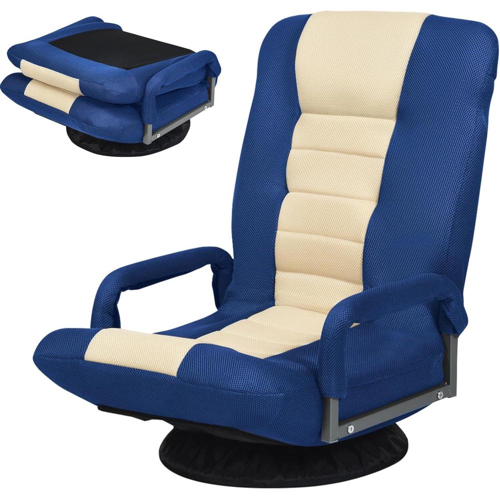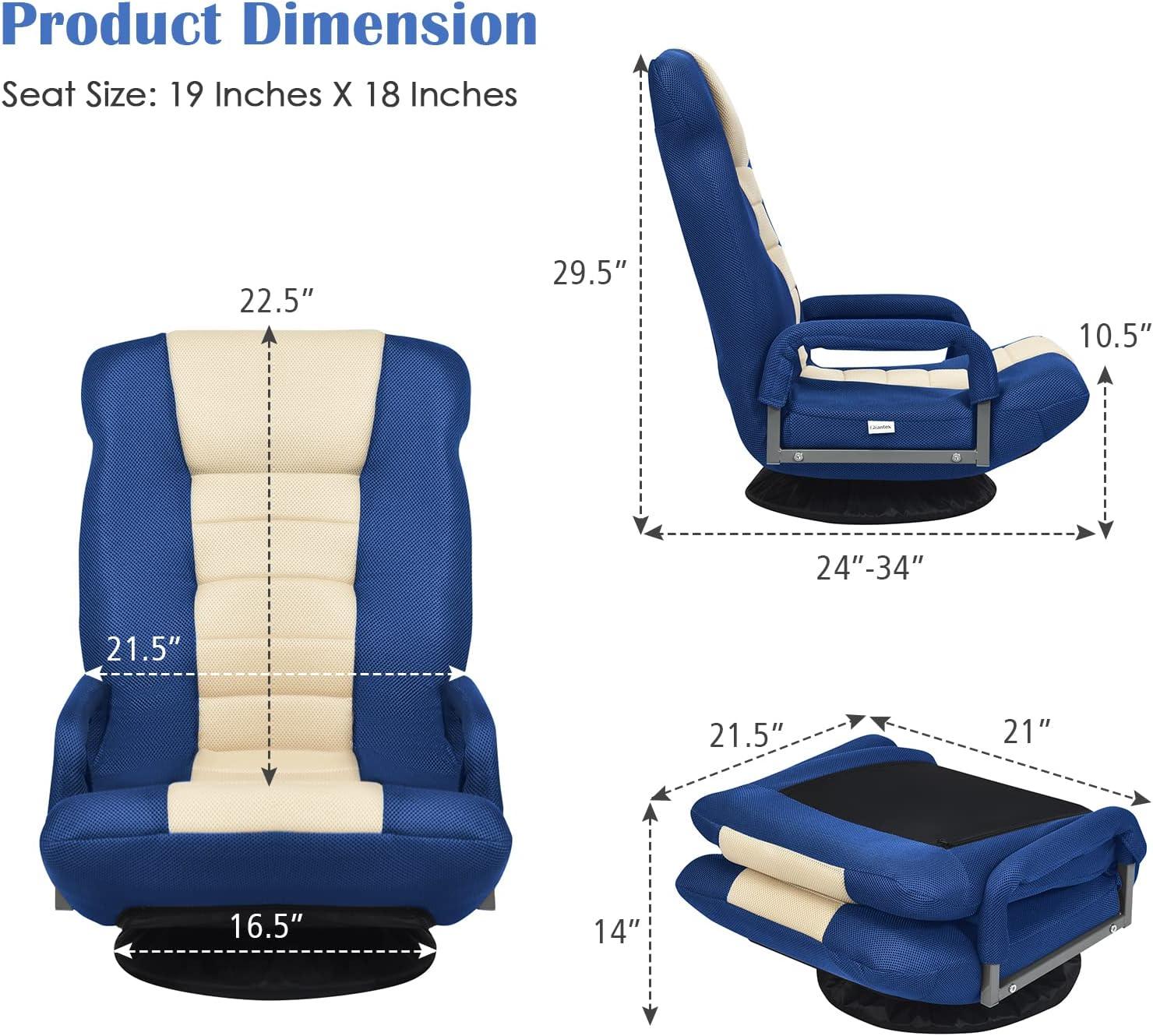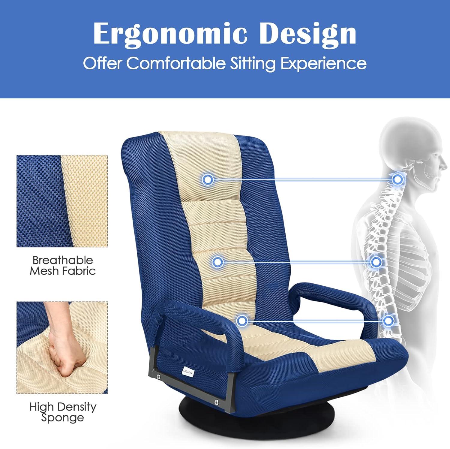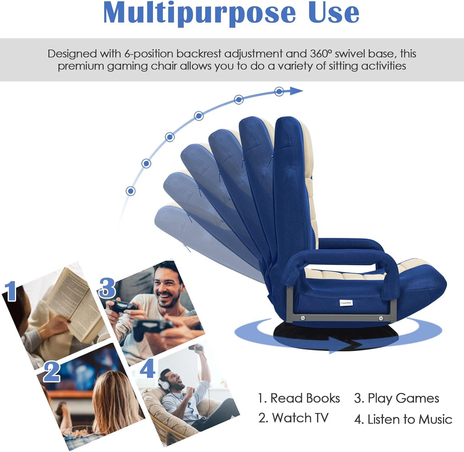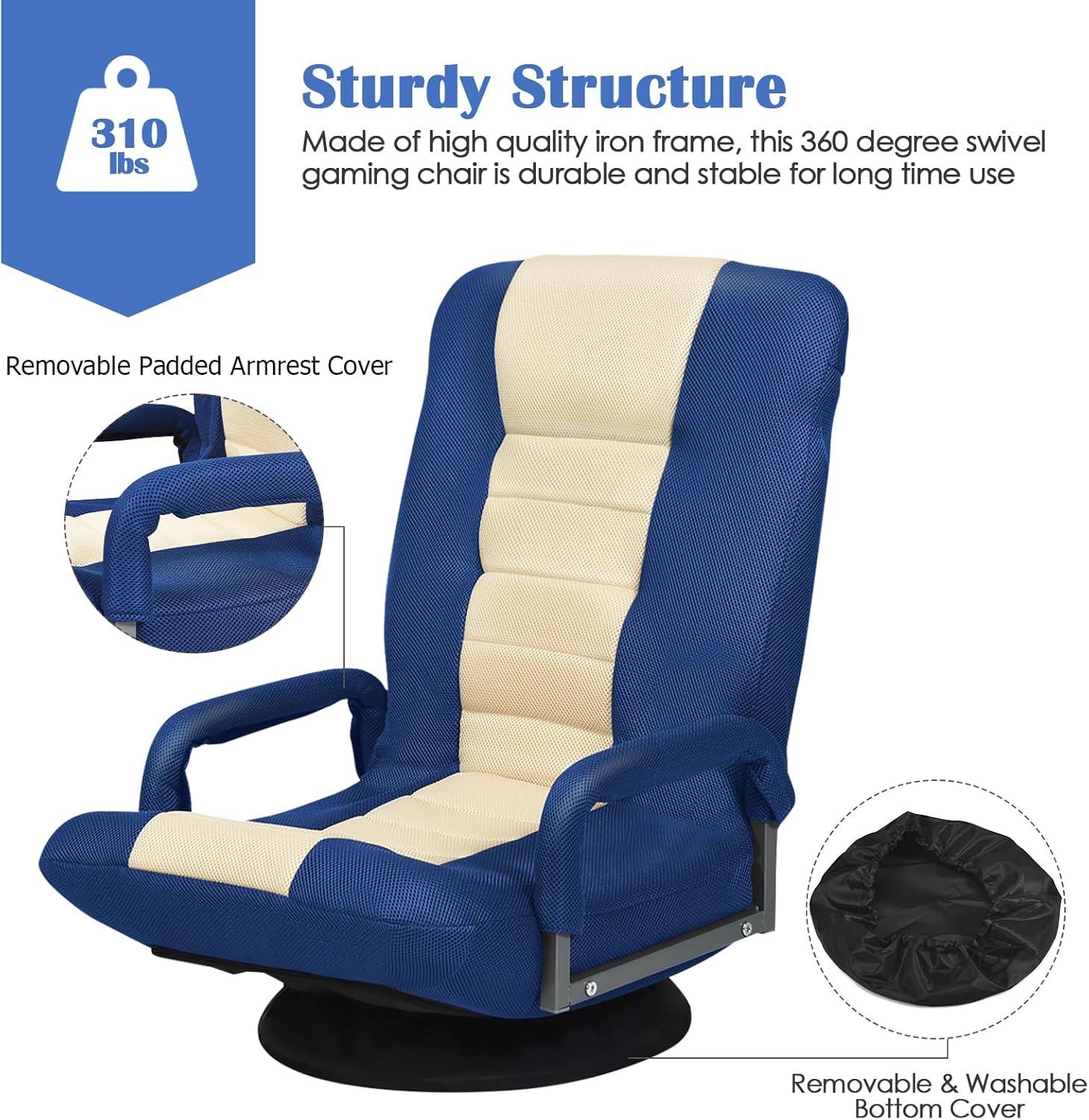 Giantex Floor Gaming Chair, 360 Degree Swivel Floor Chair with Armrests, 6 Adjustable Position, Padded Backrest, Folding Floor Chair Rocker for Games, Lazy Sofa Lounger, Gaming Chair Floor, Black/Gray(Blue/Beige)