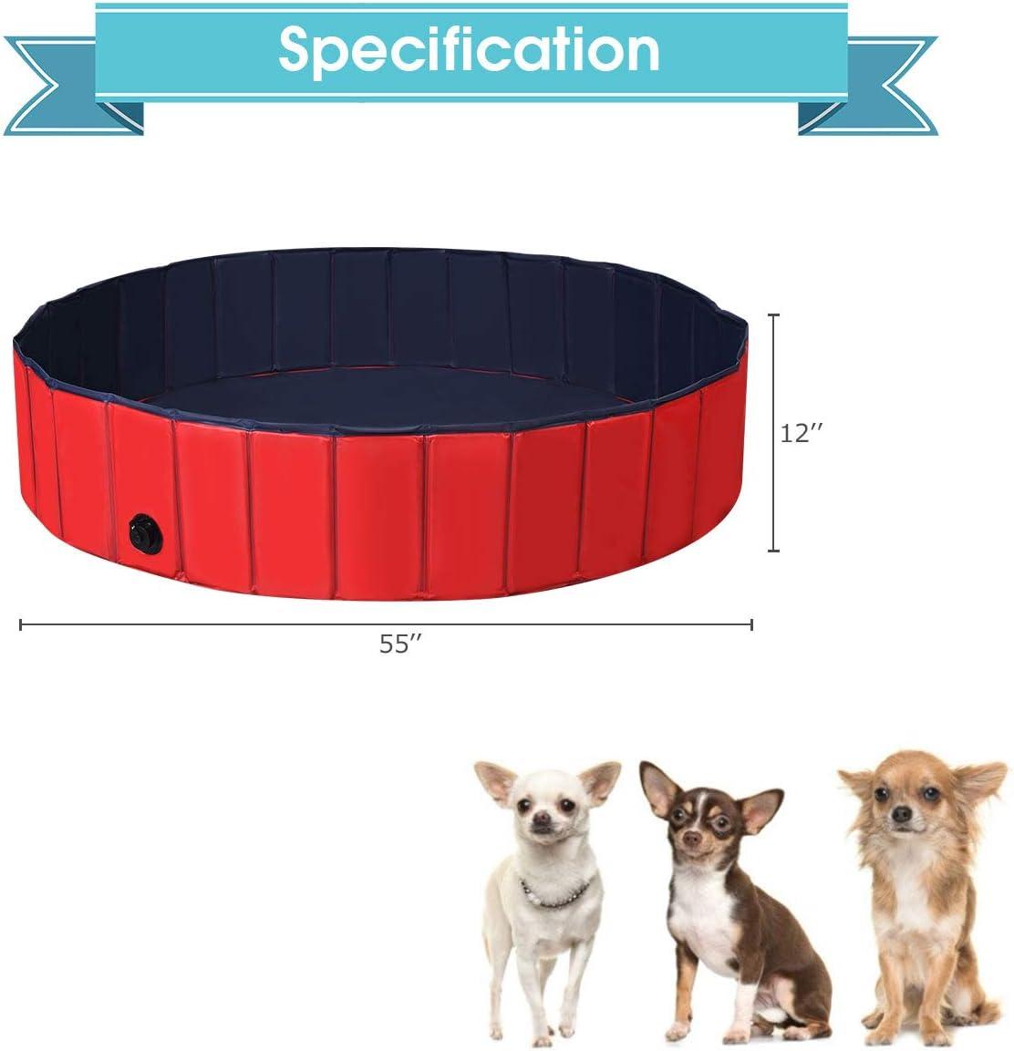 Giantex Foldable Pet Swimming Pool Dog Bath Pool with Anti-Slip Bottom, Portable PVC Pets Bathing Tub Kiddie Pools for Dogs Cats Kids, Easy to Drain, Collapsible Dog Pet Pool (XL-55inch, Red)