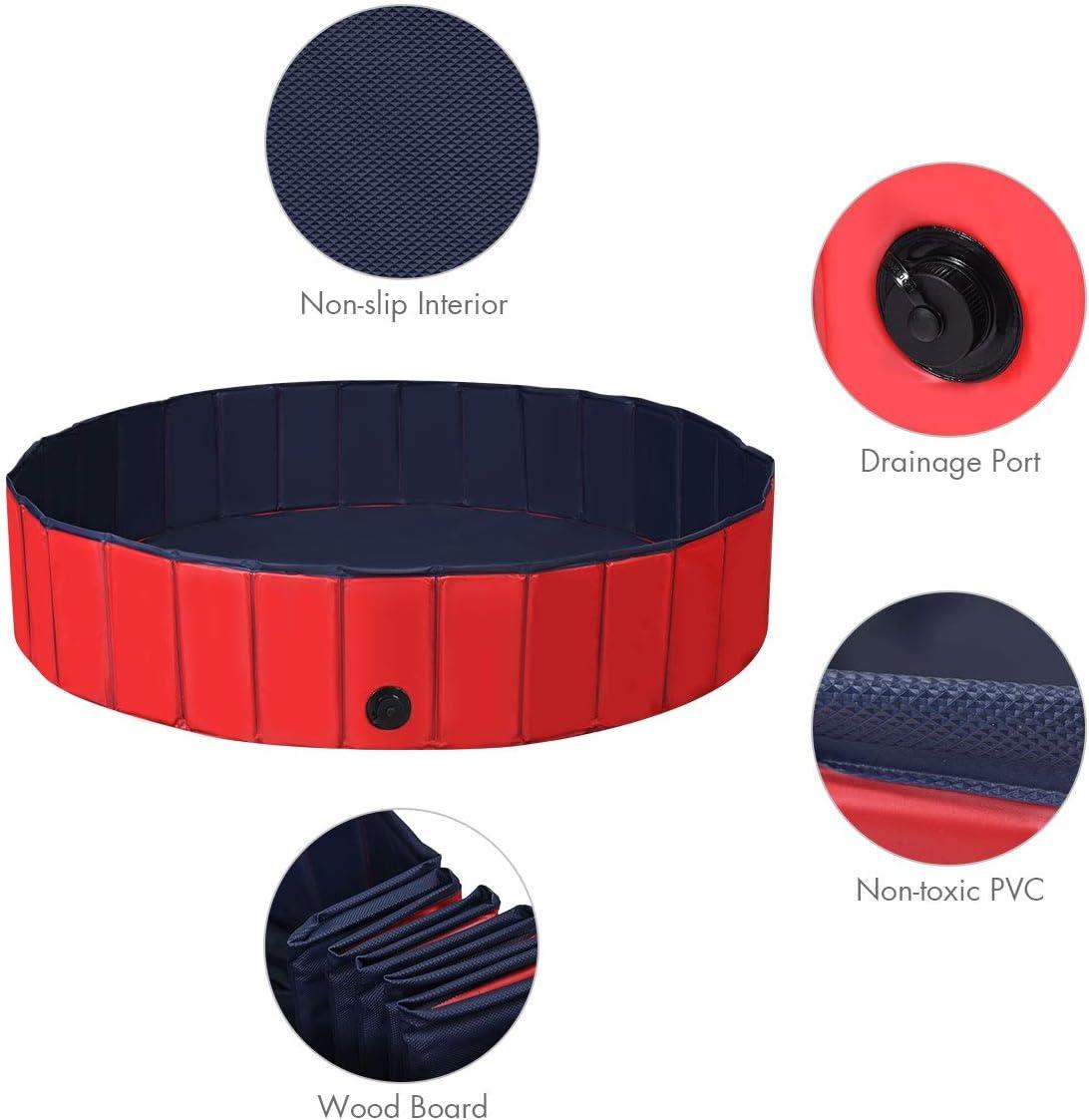 Giantex Foldable Pet Swimming Pool Dog Bath Pool with Anti-Slip Bottom, Portable PVC Pets Bathing Tub Kiddie Pools for Dogs Cats Kids, Easy to Drain, Collapsible Dog Pet Pool (XXL-63inch, Red)
