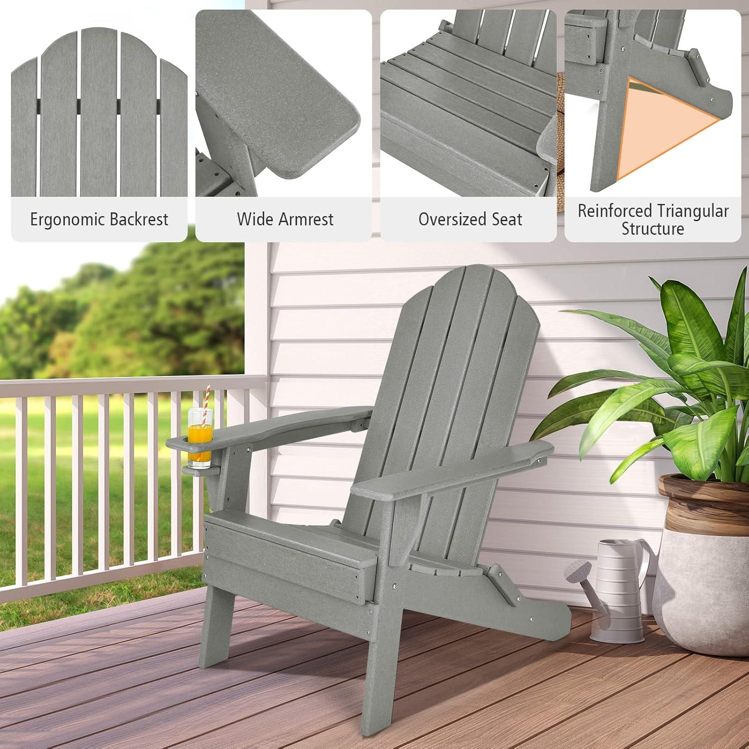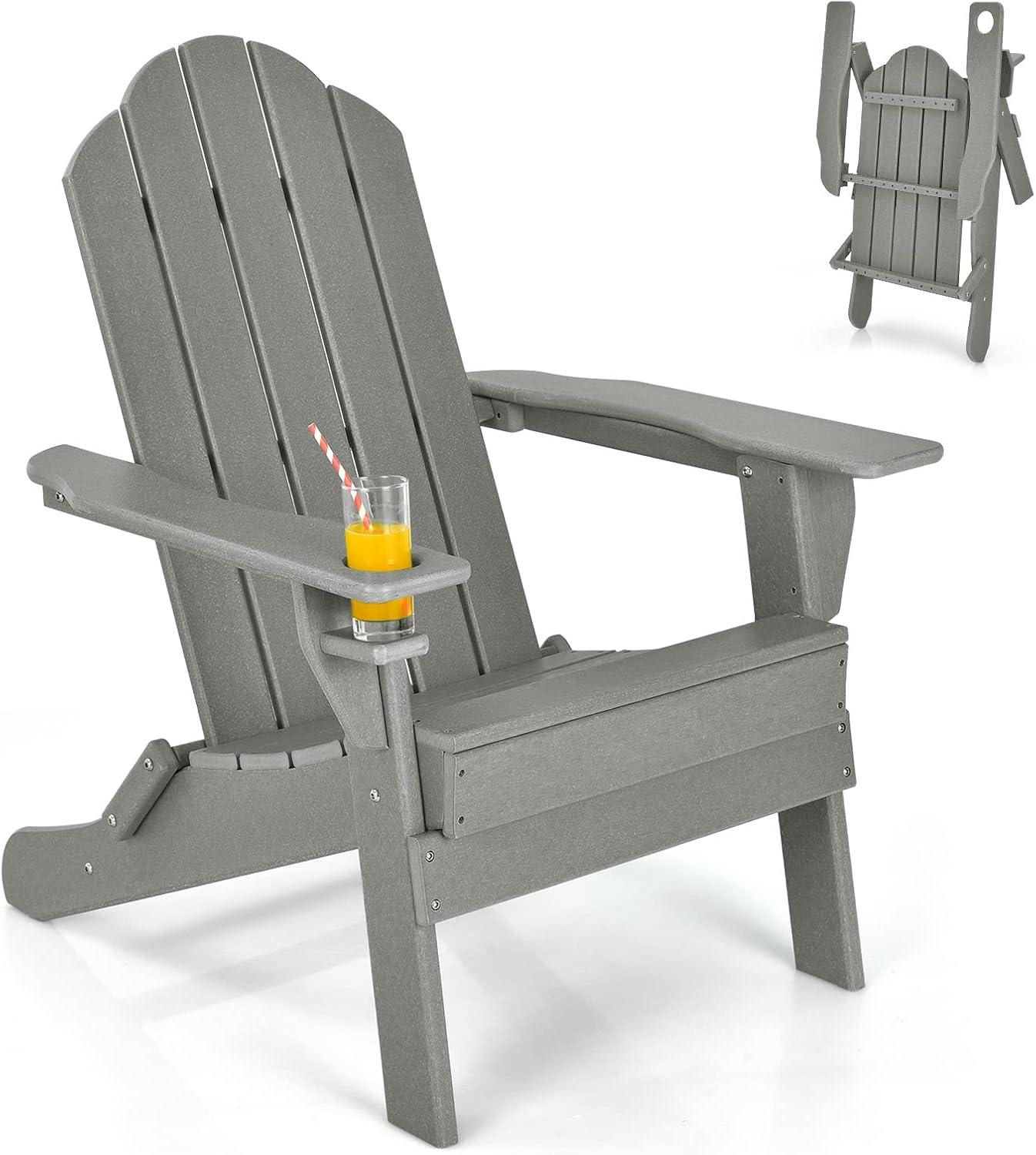 Boasting the ergonomic backrest, wide armrests and oversized seat, the Adirondack chair is cozy to sit on. At the same time, the sturdy triangular structure supports 330 lbs for the whole family to use. As for convenience, the practical side table and built-in cup holder allow you to reach items easily. Likewise, the folding chair makes the movement and storage easier. Furthermore, you do not need to spend too much time on staining or waterproofing because of the weather resistant HDPE material.