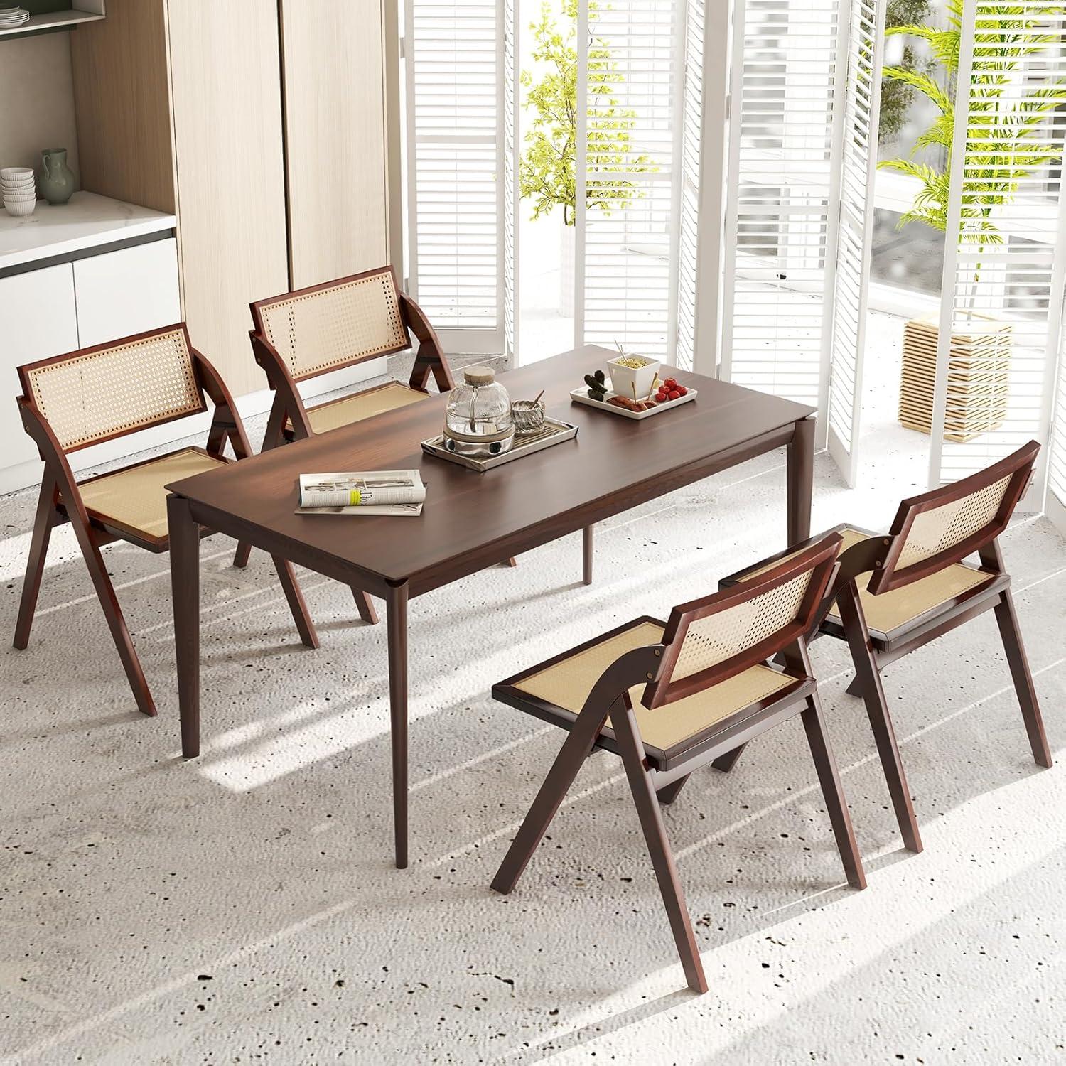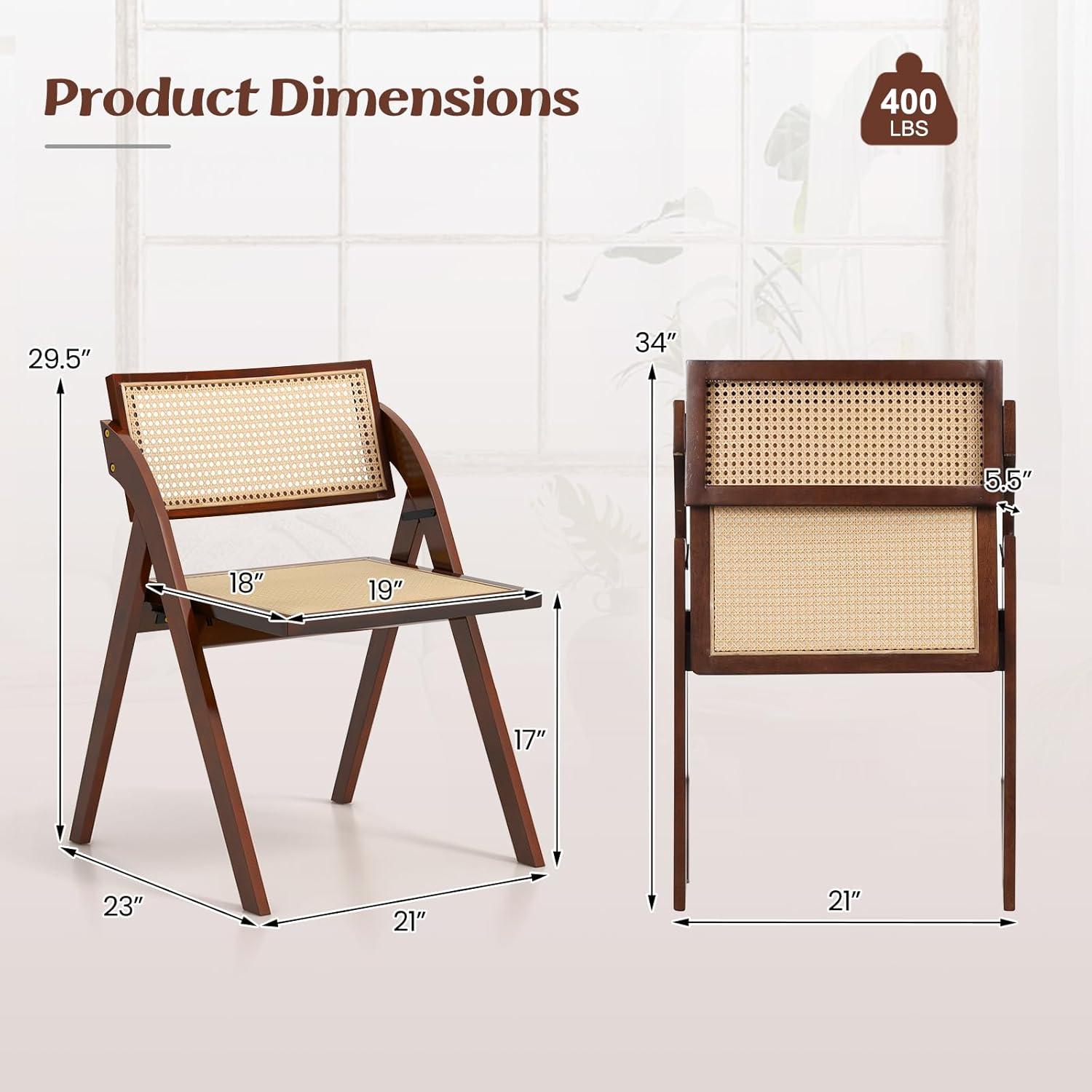 Giantex Folding Dining Chairs Set of 2, Wooden Folding Chair with Rattan Backrest & Seat, Sturdy Rubber Wood Frame, Armless Accent Chairs for Living Room, Kitchen, Wedding Party, No Assembly, Brown(Brown)