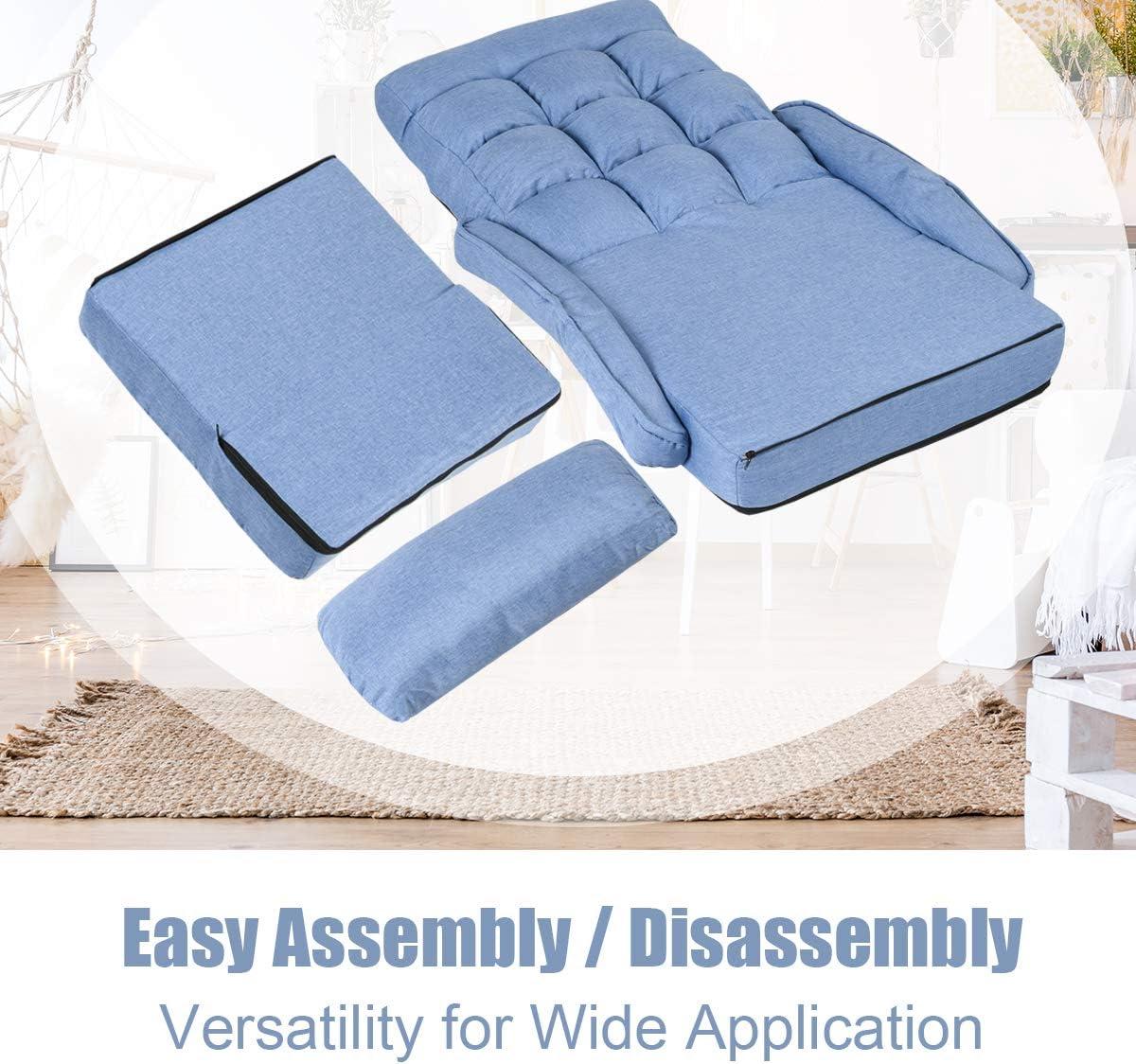 ◆◇Adjustable Lounge Sofa Chair- This fully adjustable sofa chair can be adjusted at 6 different angles, which is the most comfortable angle for your body spine line. It also can be laid flat on the ground as a single bed or folded into a small piece to store it in your closet.