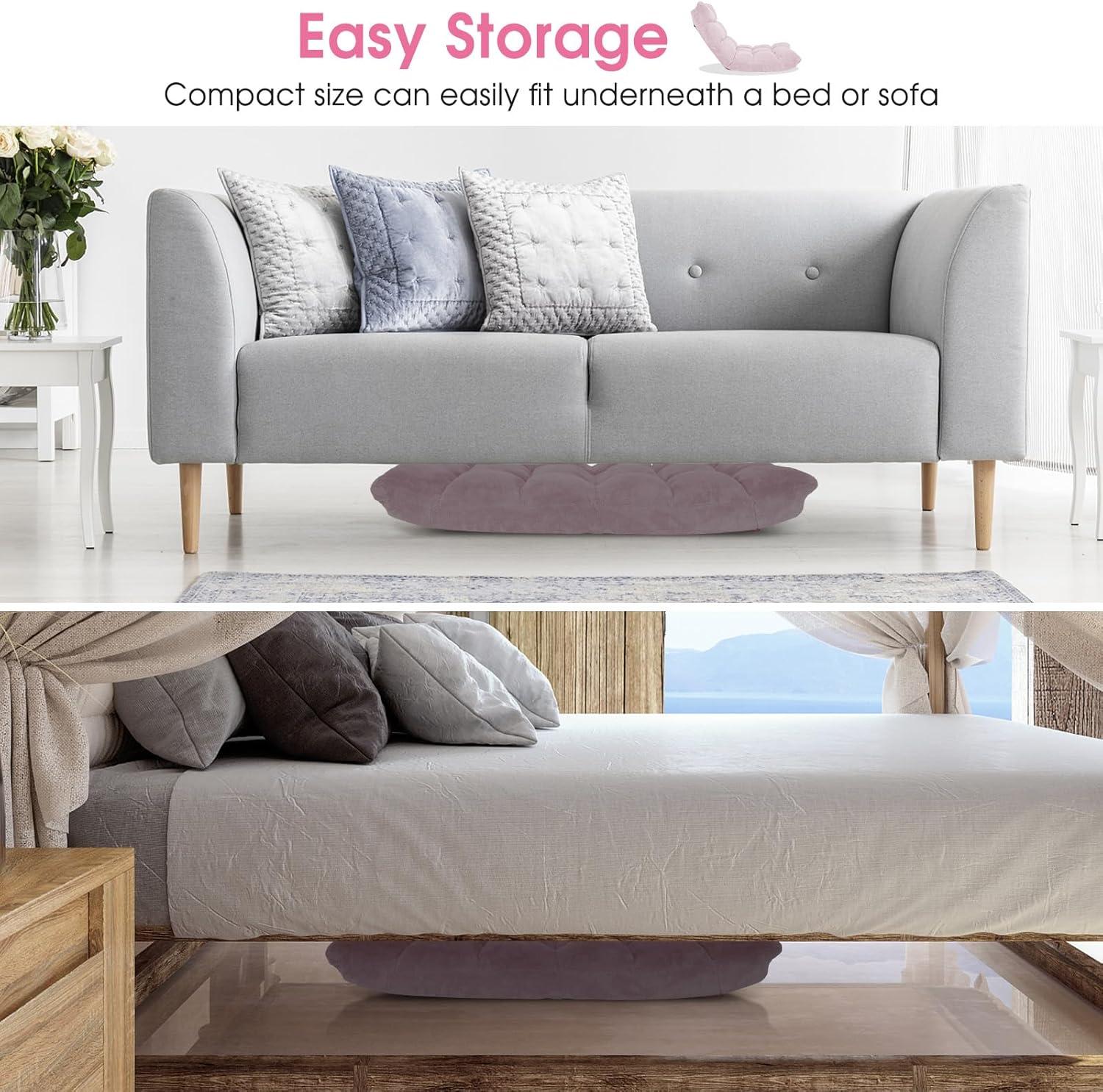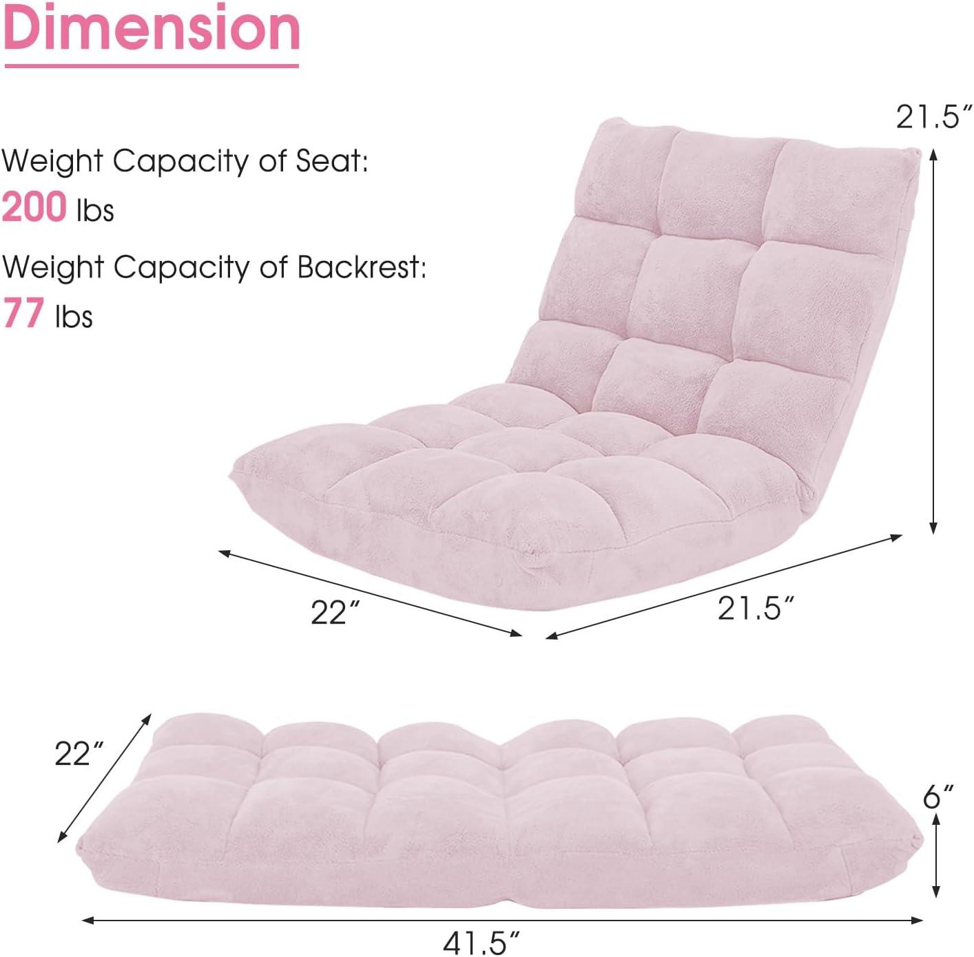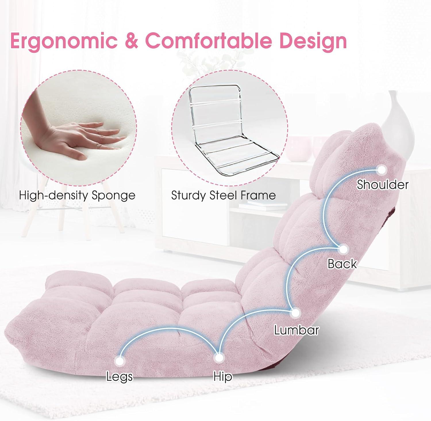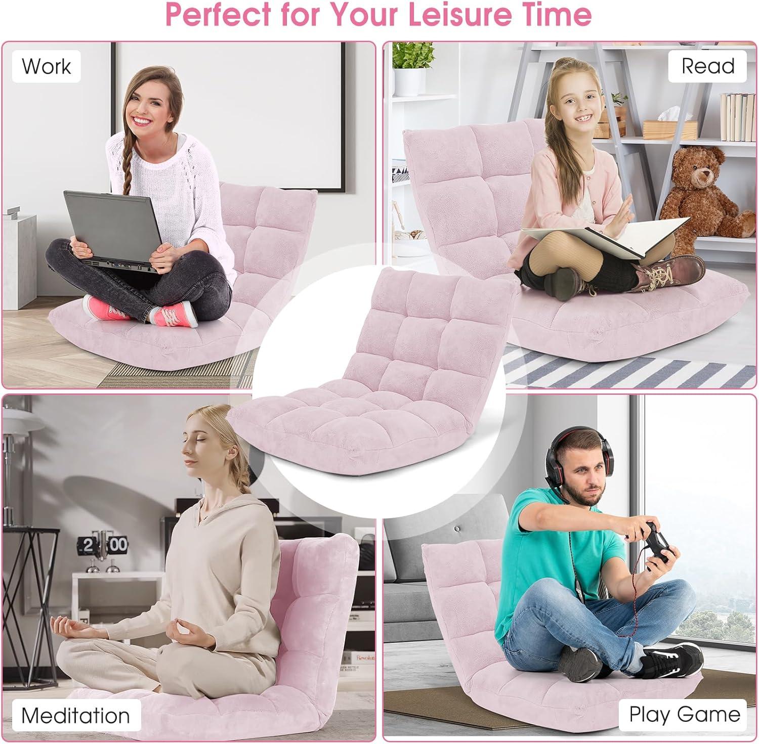 Giantex Folding Floor Chair with Back Support, 14 Adjustable Position, Padded Sleeper Bed, Couch Recliner, Gaming Floor Chairs for Adults, Meditation, Living Room (Grey)(Light Pink)