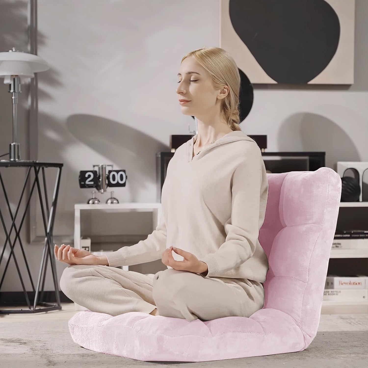 14-level Adjustments: This floor chair features a 14-position adjustable backrest that fulfills your different needs, such as napping, reading, gaming, working, watching TV and meditation. And the fully flat position is included for better relaxation.