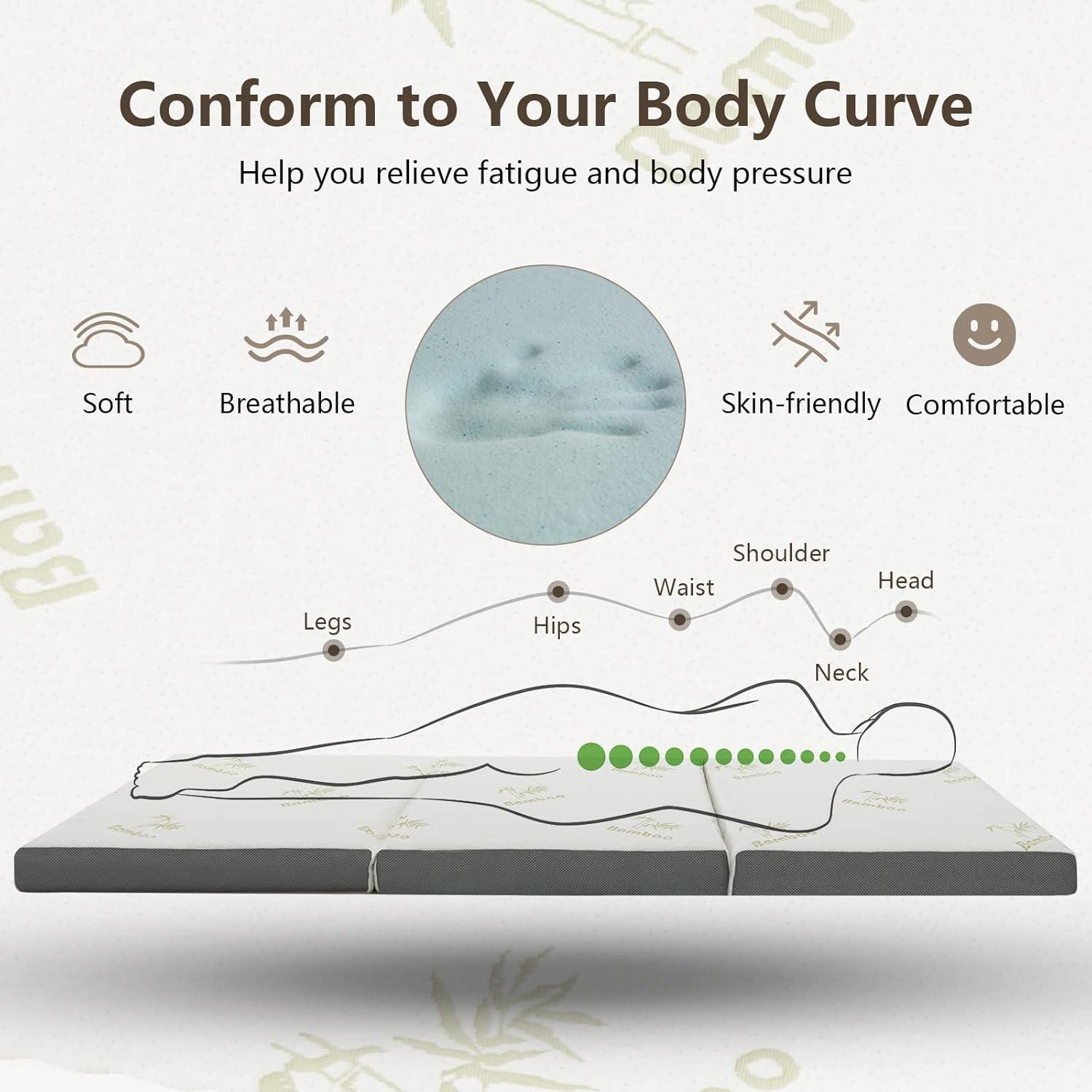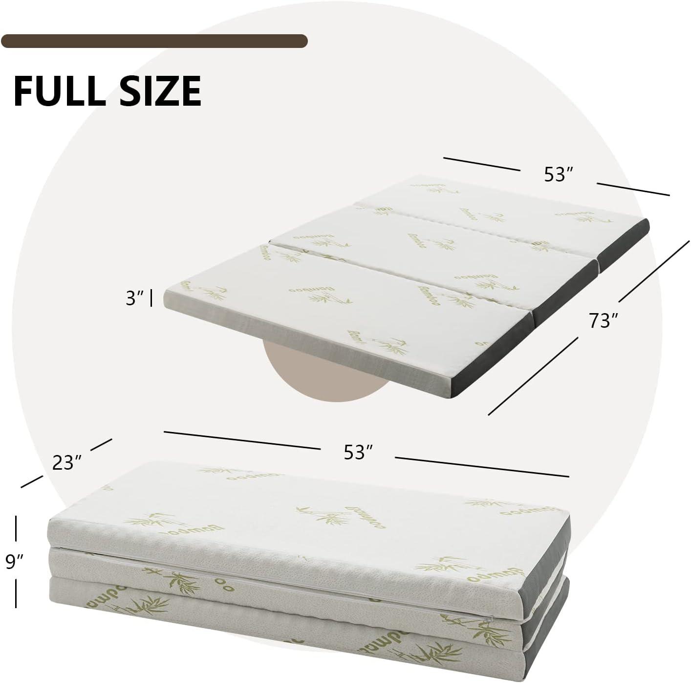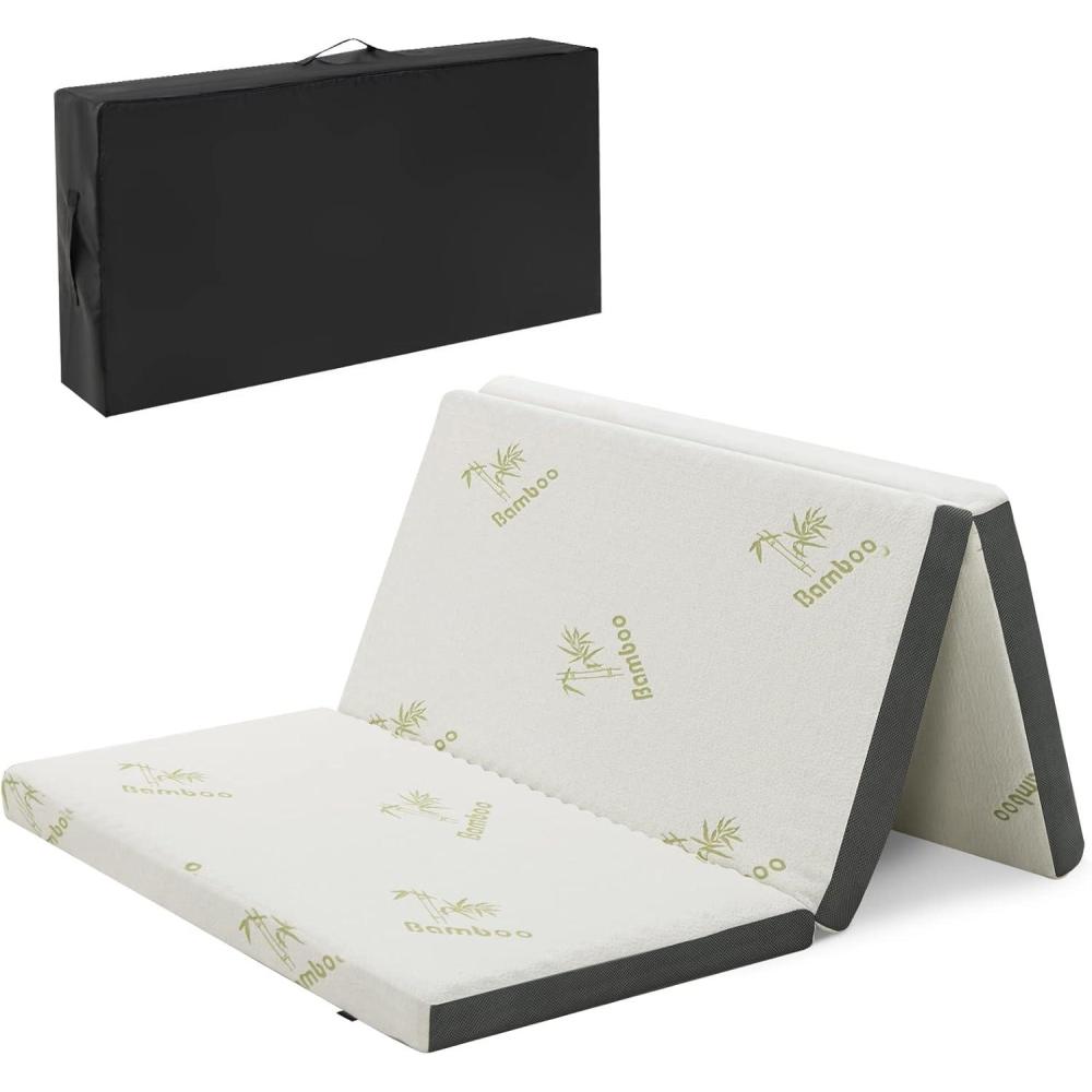 Giantex Folding Mattress Twin, 3" Tri-fold Memory Foam Mattress, Foldable Mattress Topper w/Soft Knit Fabric, Portable Mattress w/Carrying Bag for RV Guest Bed, CertiPUR-US Certified (Twin XL)(Full)
