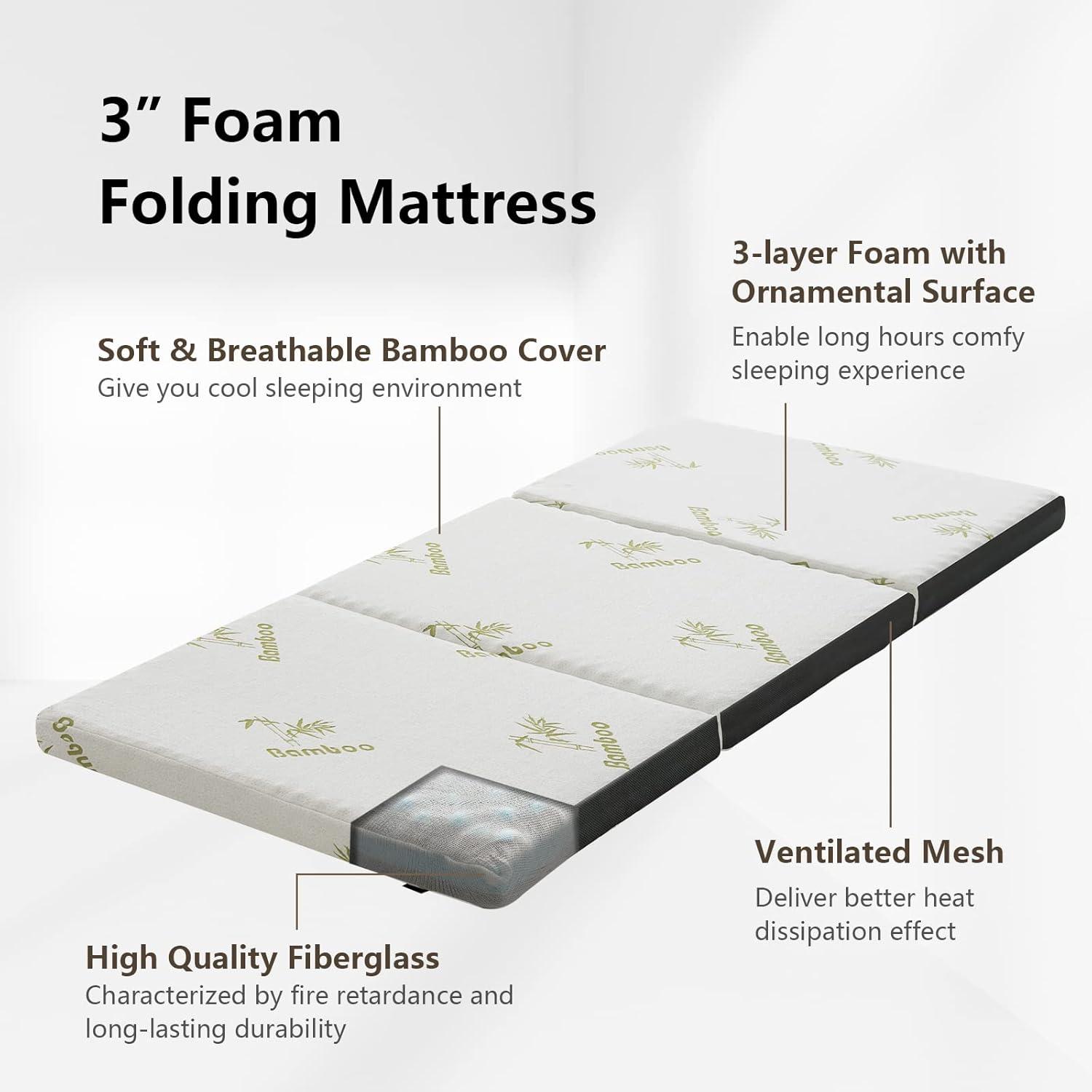 Giantex Folding Mattress Twin, 3" Tri-fold Memory Foam Mattress, Foldable Mattress Topper w/Soft Knit Fabric, Portable Mattress w/Carrying Bag for RV Guest Bed, CertiPUR-US Certified (Twin XL)(Twin XL)