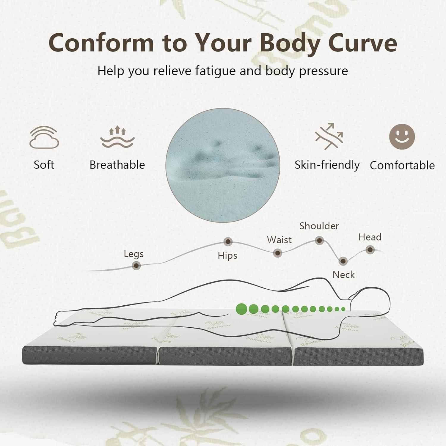 imageGiantex Folding Mattress Twin 3quot Trifold Memory Foam Mattress Foldable Mattress Topper wSoft Knit Fabric Portable Mattress wCarrying Bag for RV Guest Bed CertiPURUS Certified Twin XLTwin XL