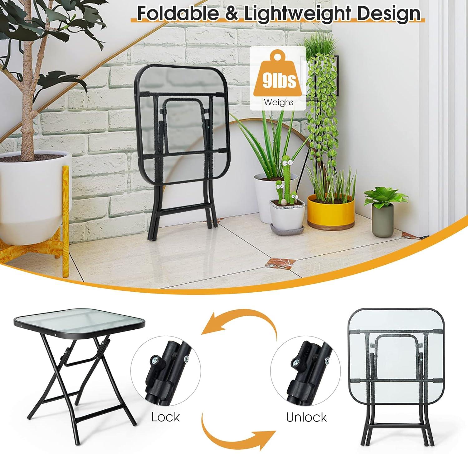 〖Robust X-shape Structure〗: Supported by X-shaped steel legs with tight connection, this square folding side table is sturdy enough to hold up to 110 lbs without worry about wobbling. And anti-rust treatment has been applied to the steel surface that ensures a longer service time.