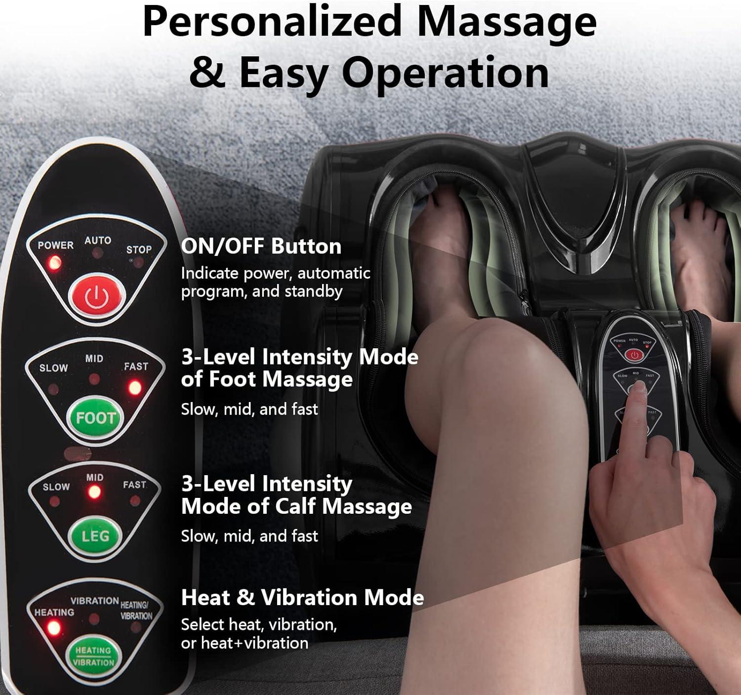 【Thoughtful Gift Idea】: Perfect for anyone seeking relief from foot pain due to long hours on their feet or rigorous physical activity, this foot and calf massager is suitable for the whole family. Consider it as a thoughtful gift for birthdays, Christmas, Mother’s Day, Father’s Day, or New Year celebrations – a gift of relaxation and well-being.