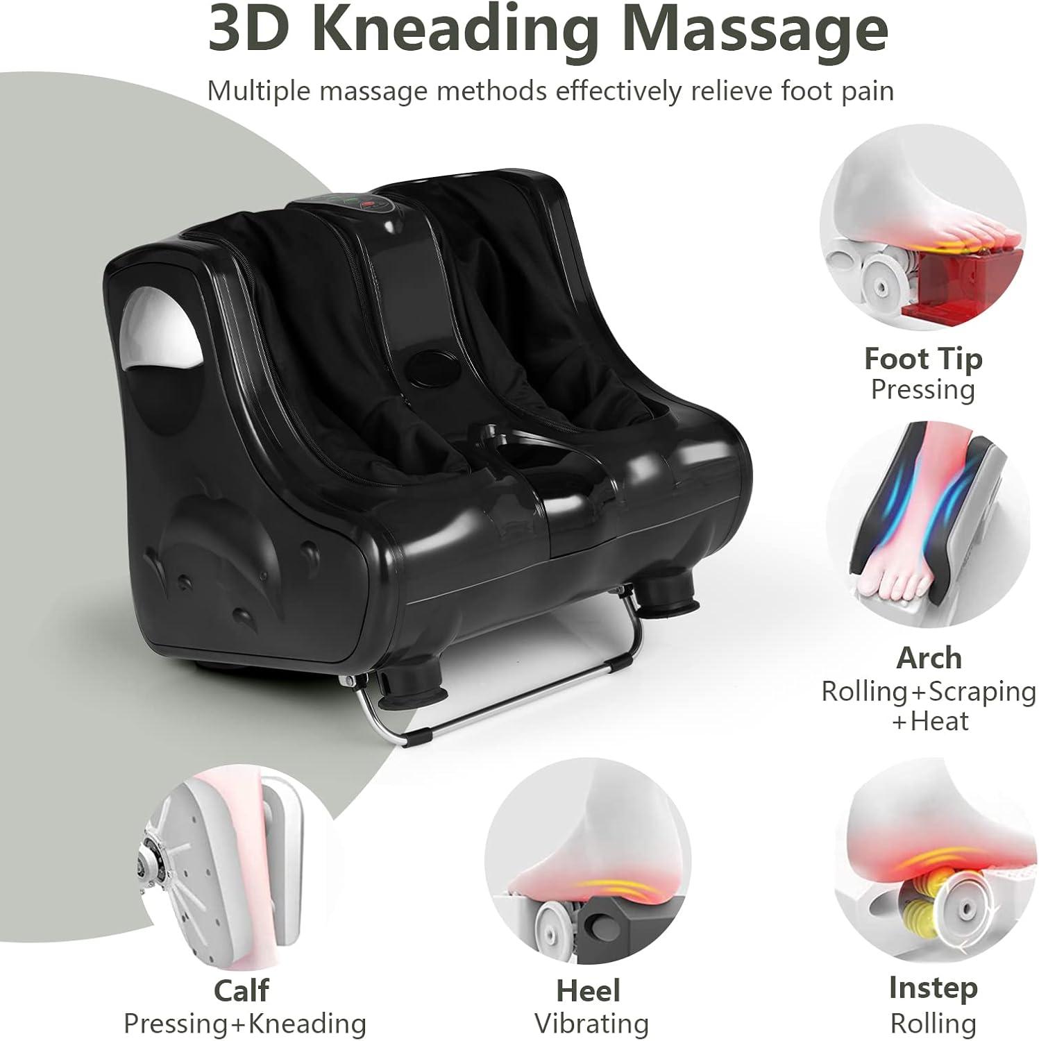 【Multiple Massage Methods】: Indulge in a 3D kneading massage experience with this foot and calf massager, offering various techniques including foot tip pressing, arch rolling, instep rolling, heel vibrating, and calf pressing. Alleviate muscle tension and foot pain with targeted relief for ultimate relaxation.