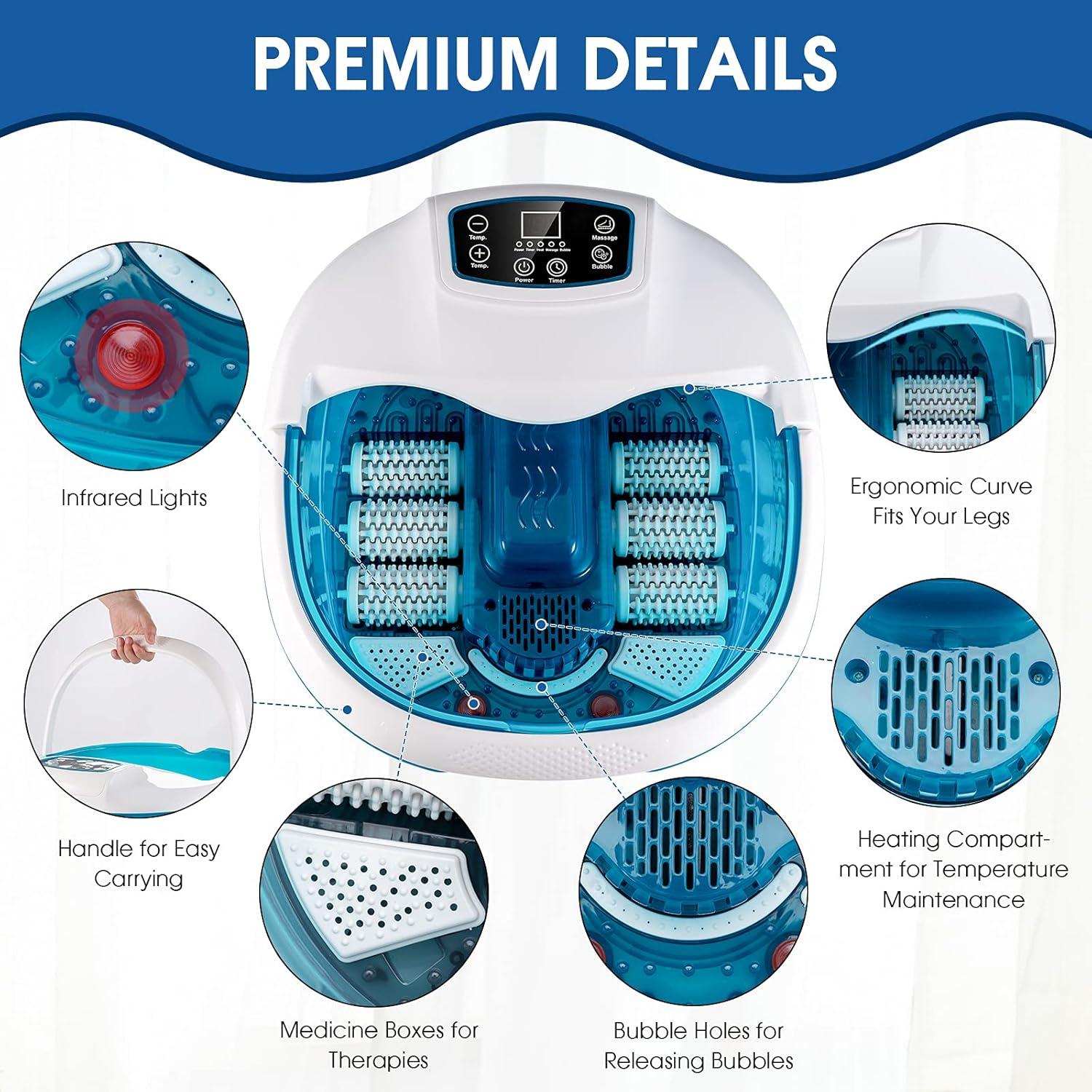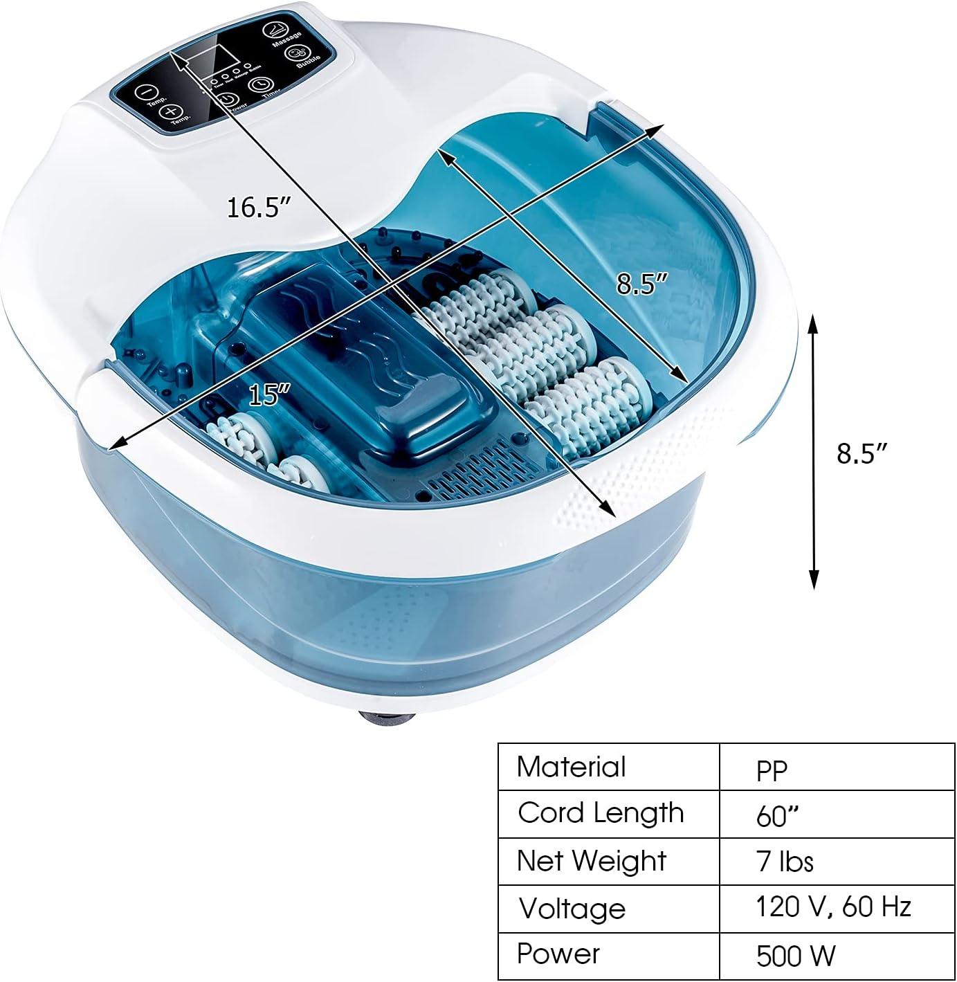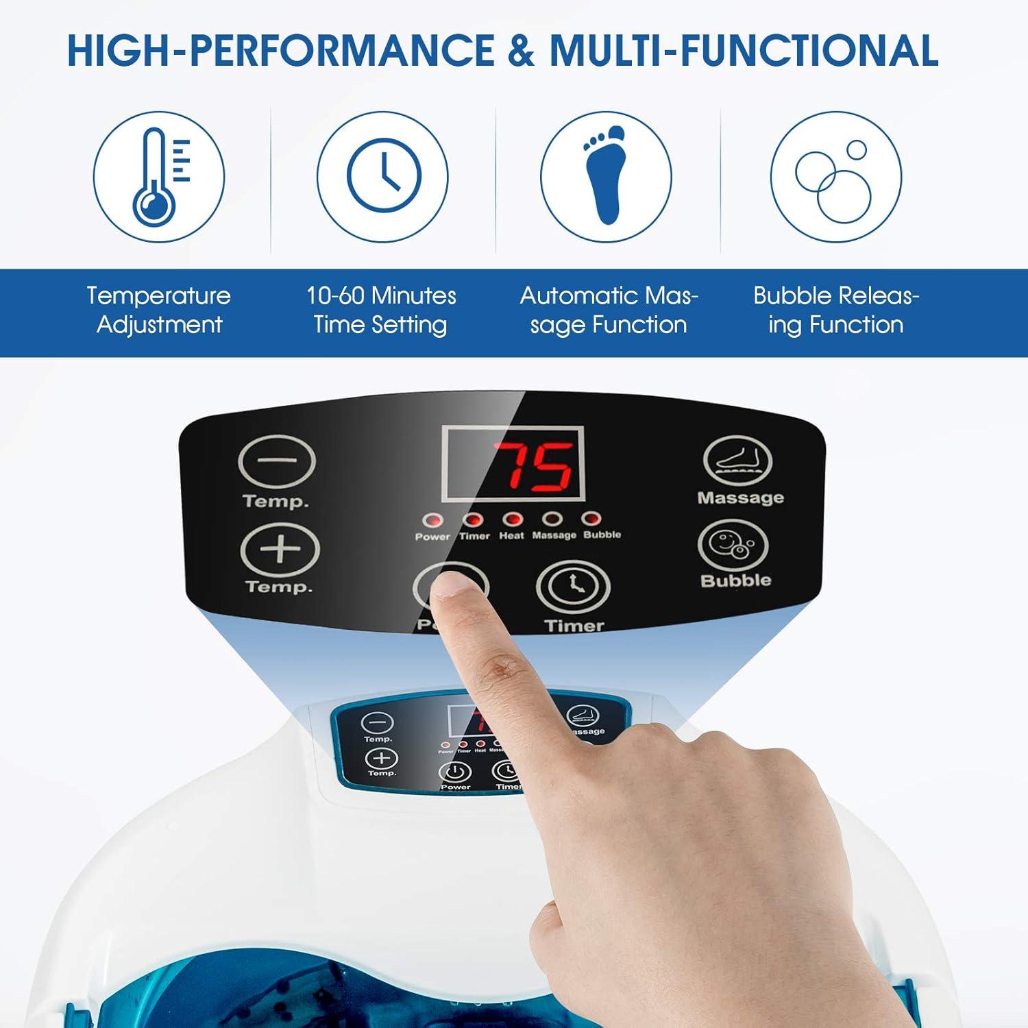 [High-Performance Heating System]: This foot spa tub features adjustable heating temperature (ranges from 95℉-118℉), which makes it possible to maintain the water at a selected temperature without the need to add hot water frequently. Also, with a short preheating time, it can provide you with a comfortable soak immediately.