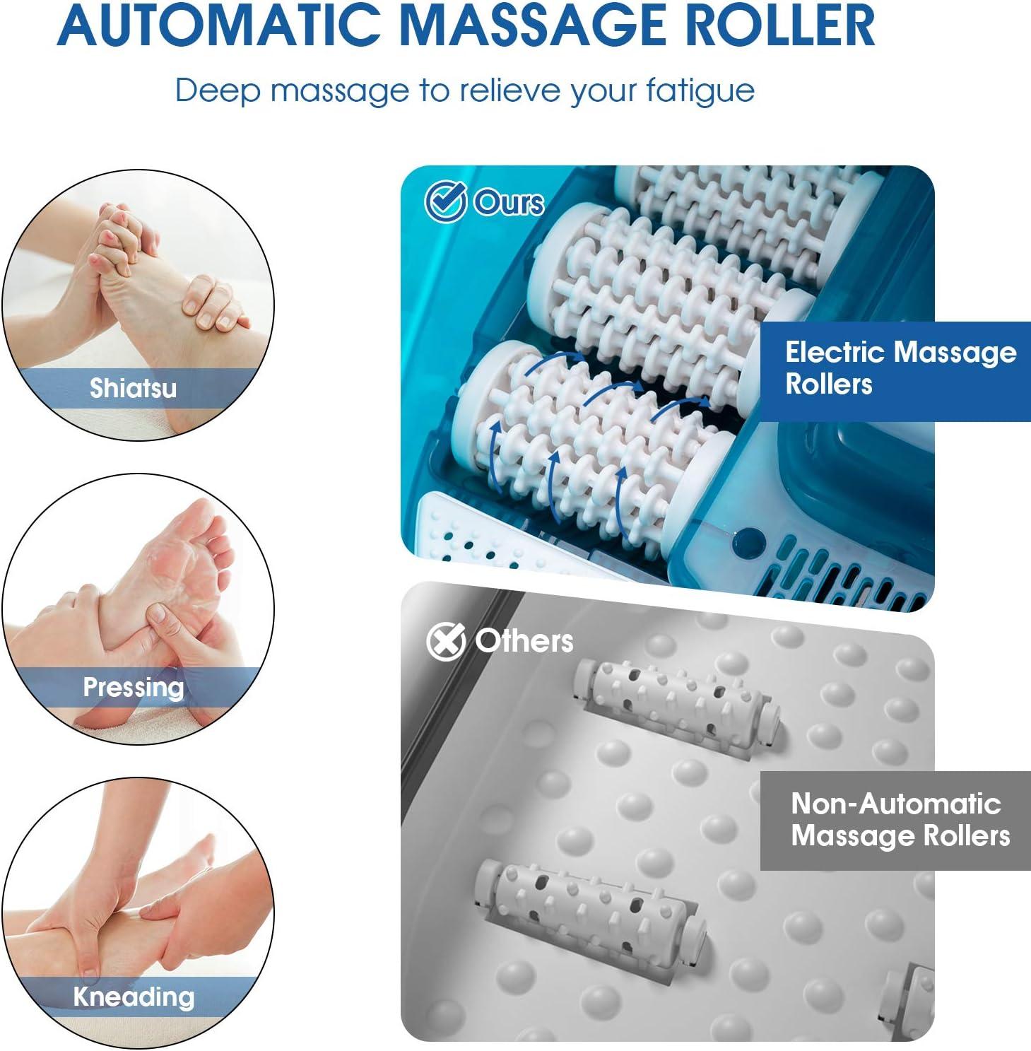 [Automatic Massage Rollers & Bubbles]: Equipped with 3 pairs of electric massage rollers with dotted nodes, this foot bath massager can effectively relax your soles to help promote blood circulation and metabolism. What’s more, the continuously released bubbles help to further reduce the tension and pressure.
