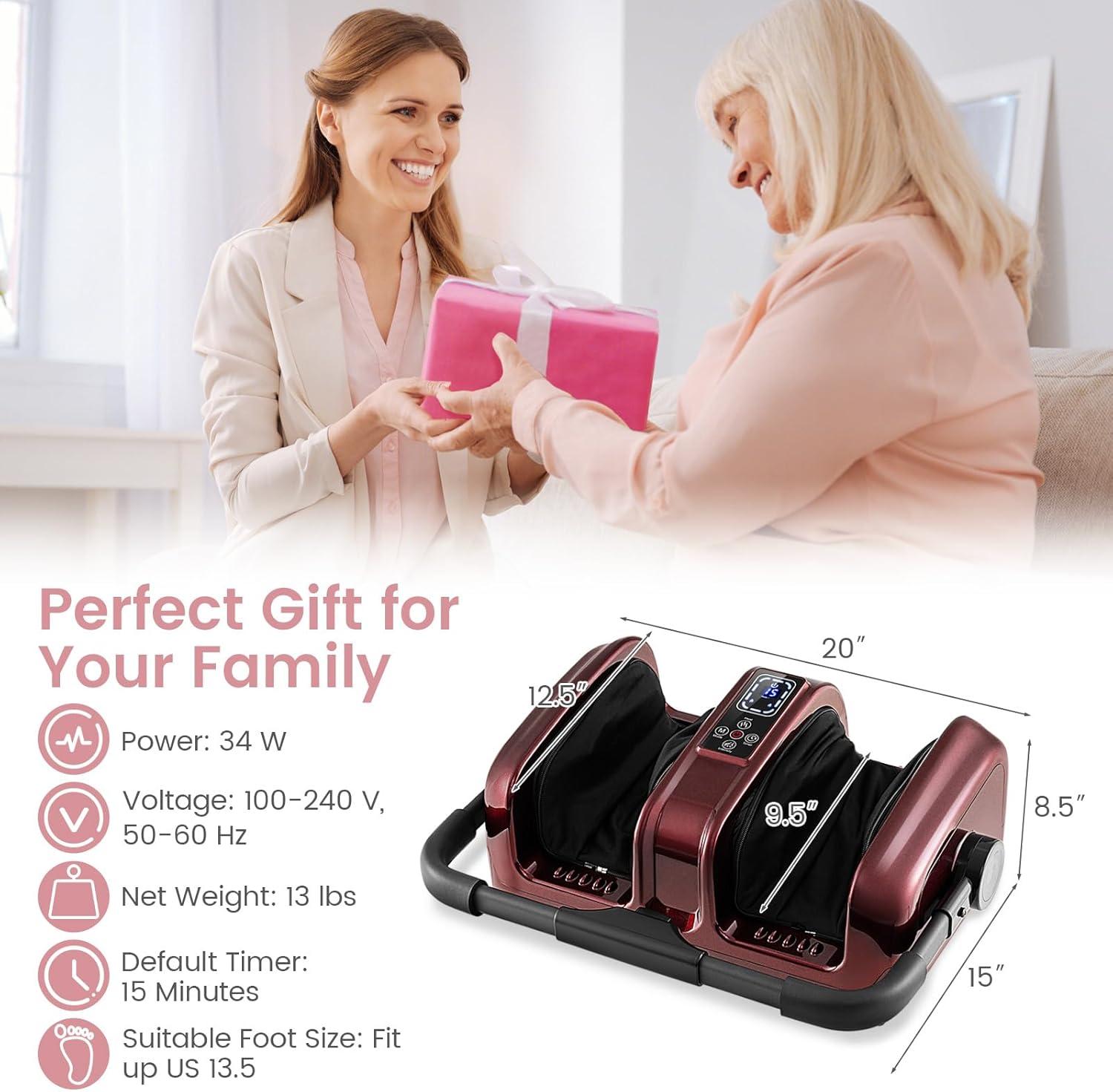 Giantex Foot Massager with Heat and Remote Control, Calf Massager with 3 Massage Settings, Timer, Washable Cover, Adjustable Stand, Foot Massage Machine for Calf Arms Relax, Gift for Women Men (Black)(Red)