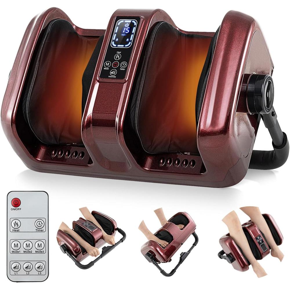 Our heated foot massager is perfect for foot, calf, and arm massages, making it the ideal choice for athletes, post-workout recovery, or anyone seeking relief from the strains of an active lifestyle or prolonged standing. Experience a variety of massage techniques including rolling, scraping, shiatsu, and kneading, targeting specific pressure points on your feet for ultimate relaxation. The wave-style kneading massage envelopes your feet, providing a deeply rejuvenating experience like no other. With 3 massage modes, 3 speeds, and a customizable 5-30 min timer, you can tailor your massage to your preferences. Plus, the leg and foot massager features a constant heating function for soothing comfort and revitalization. Easily adjust settings with the LED panel and remote control for ultimate convenience. The 360° rotary supporting stand allows you to find the perfect, most comfortable position for your massage. Turn your home into a personal spa retreat with this exceptional massage machine.