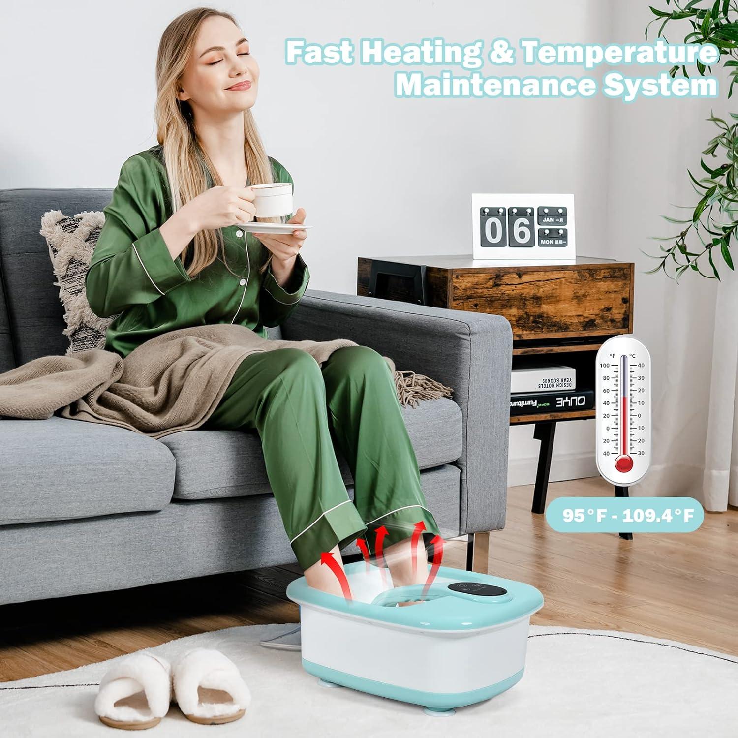 Rapid Heating &Temperature Control: Our foot bath massager can be heated quickly to give you a good foot bath experience. The water temperature can be adjusted freely between 35°C and 43°C (95°F ~ 109.4°F) to meet your different needs. It is suitable for the whole family, especially the elderly and office workers.
