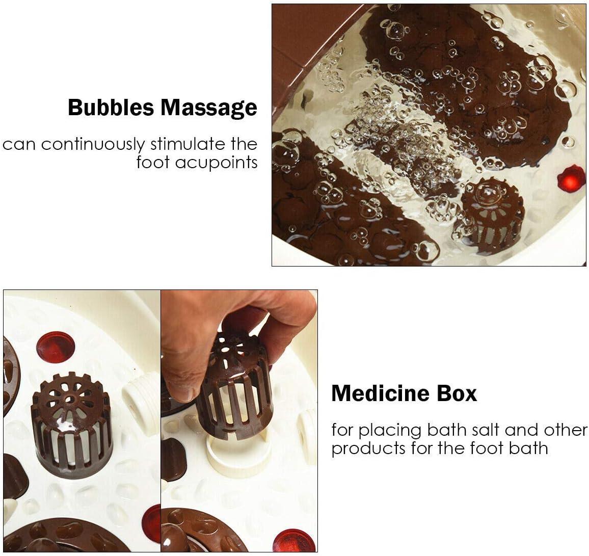 【Bubbles Jet Massage & Red Light】You can turn on the bubble mode to stimulate plantar acupuncture points to achieve the effect of soft massage. There is a medicine box can enhance the effect of the foot bath when putting the medicinal herb or sea salt.