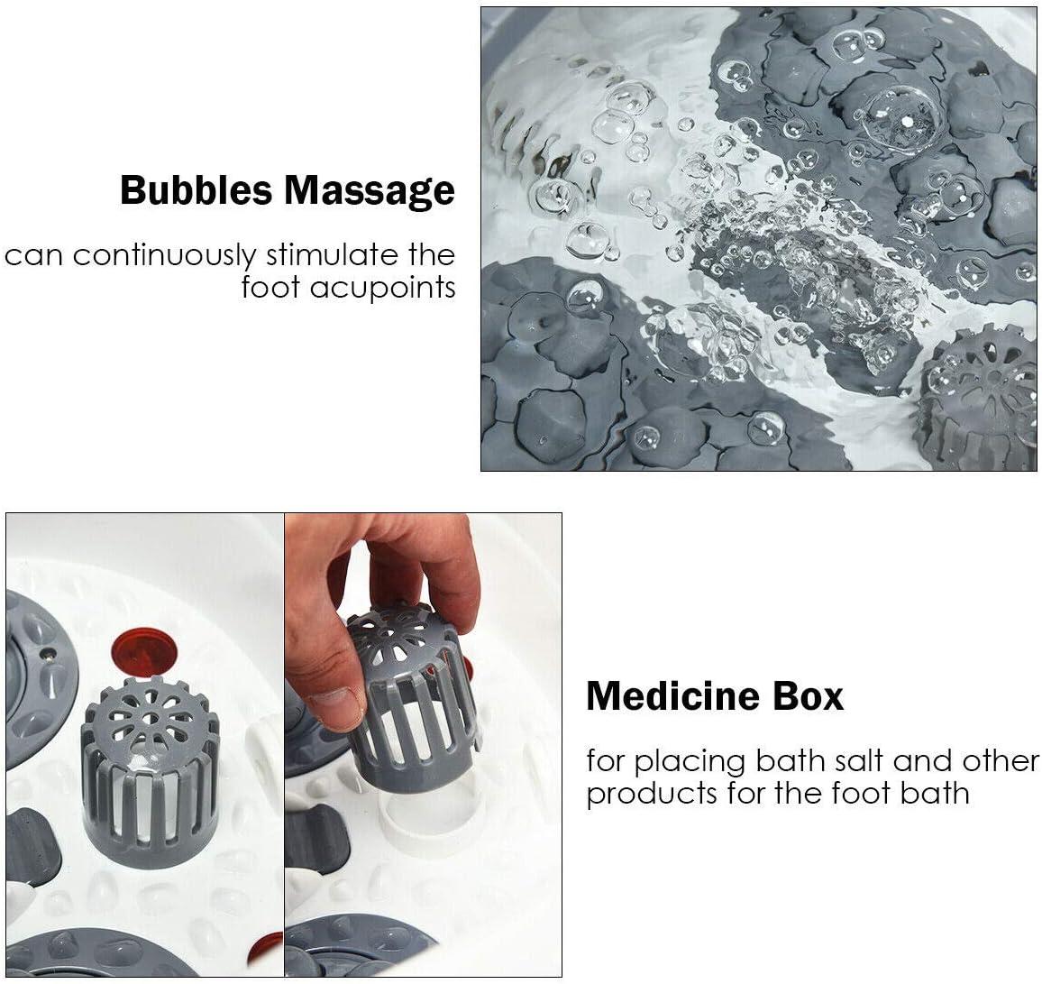 【Bubbles Jet Massage & Red Light】You can turn on the bubble mode to stimulate plantar acupuncture points to achieve the effect of soft massage. There is a medicine box can enhance the effect of the foot bath when putting the medicinal herb or sea salt.