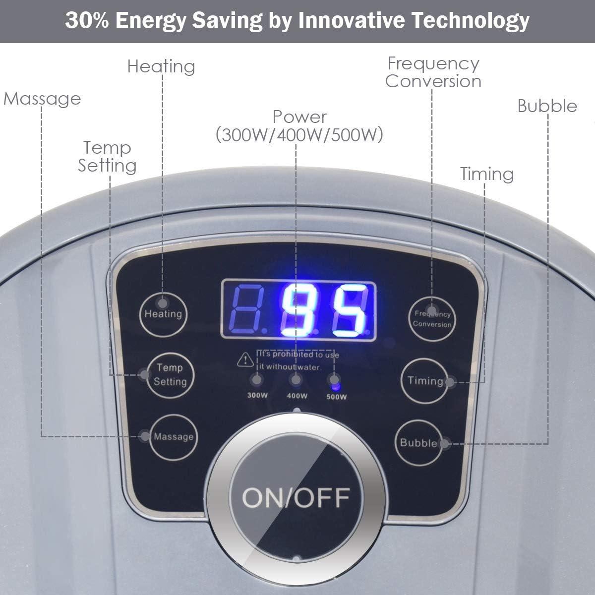 【Intelligent Frequency Conversion】Compared with others, our feet bath massager is more than 30% energy efficient. There are 3 power settings (300W, 400W, 500W) for you to choose. You can choose higher power for fast heating, or you can choose lower power to maintain a certain temperature.