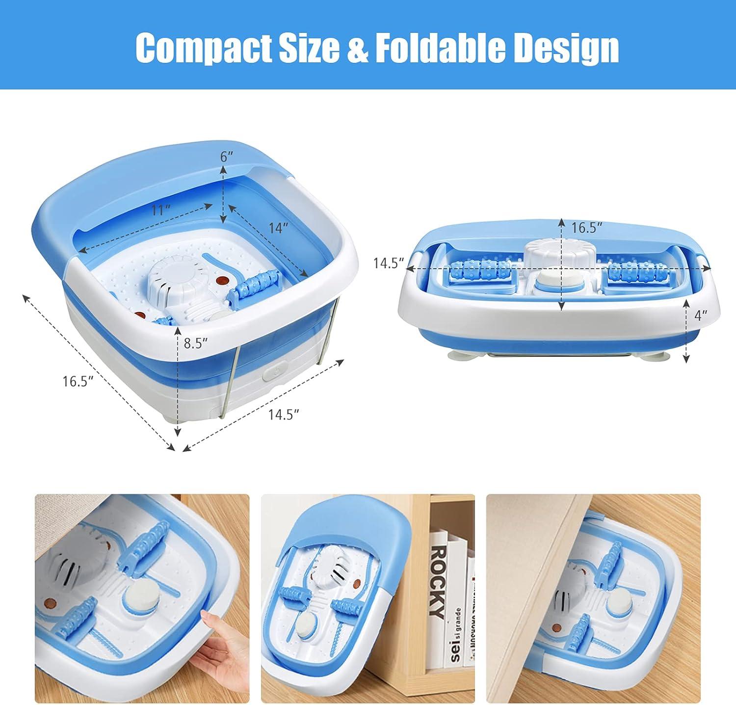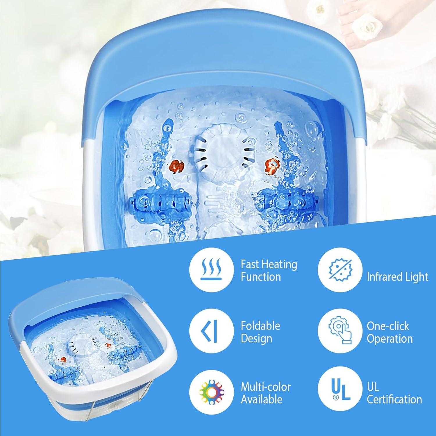 Giantex Foot Spa Massager with Heat, Bubbles, 6 Motorized Shiatsu Rollers, Time & Temperature Settings, Folding Cover, Pedicure Tub Bath, Collapsible 6 in 1 Foot Bath Soak Tub, Blue