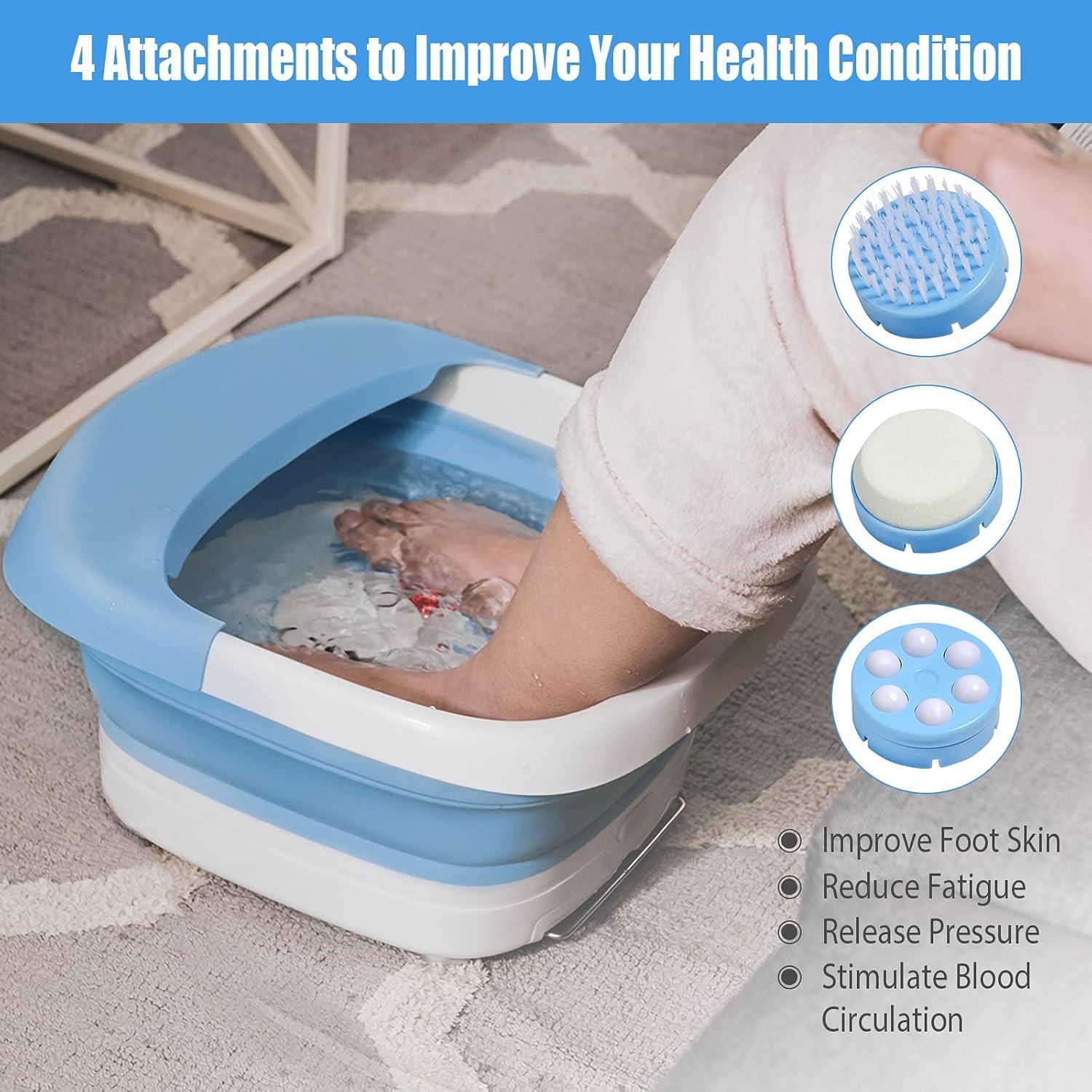 Giantex Foot Spa, Foot Bath Massager with Heat, Collapsible Design, Bubbles, Rollers, Pumice Stone, Scrub Brush, Folding 3 in 1 Footbath Tub, Foldable Foot Soaking Tub for Feet Stress Relief, Blue
