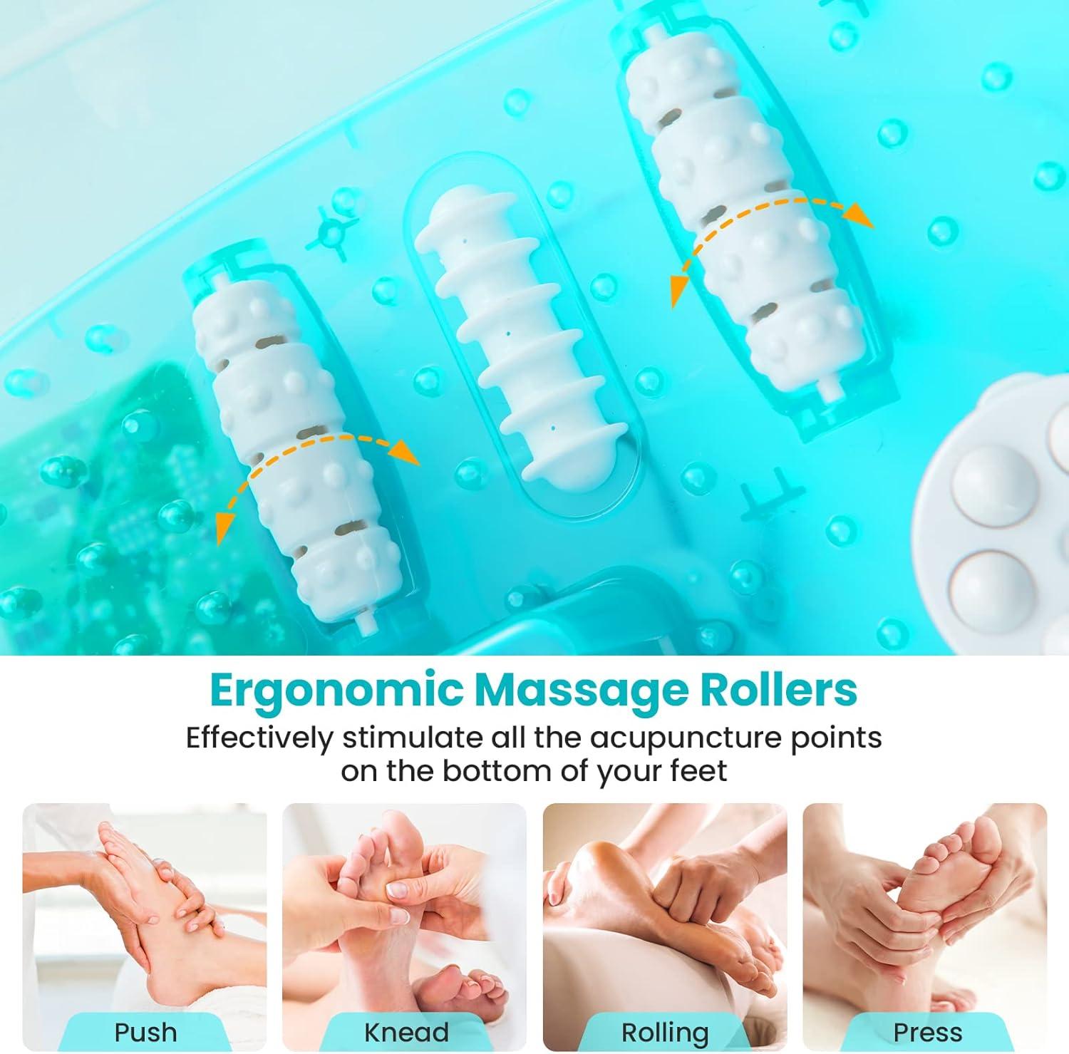 Massage Rollers Relieve Soreness: Devoted to full massage, the foot spa massager contains 2 kinds of rollers (2.5” or 3” long) & removable massage beads. By the way, the foot soak tub offers roomy massaging space inside, suitable for feet under US 11.