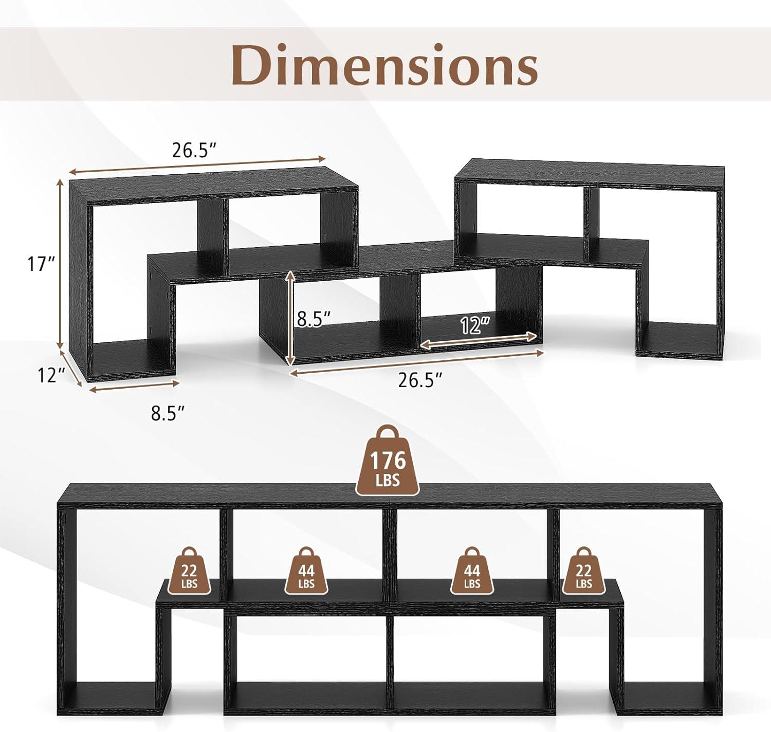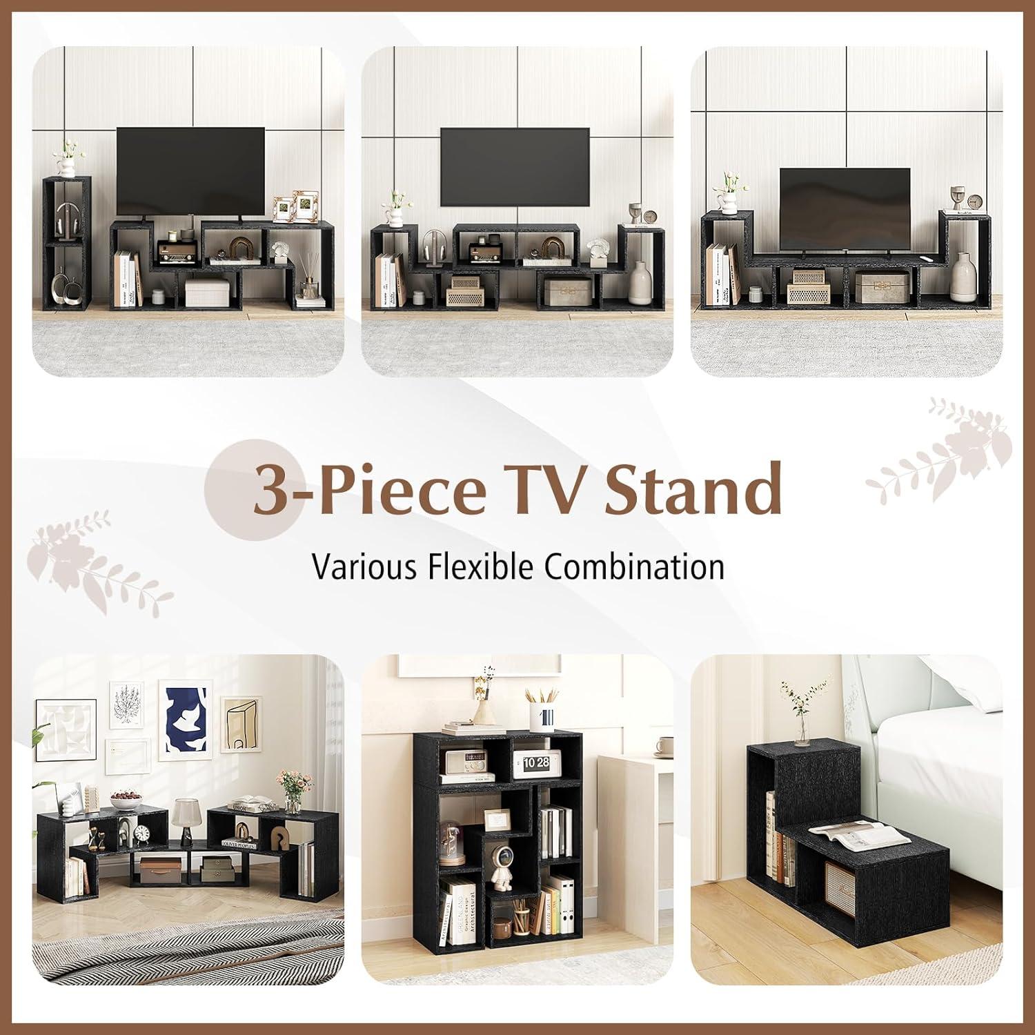 Giantex Free-Combination TV Stand for Bedroom - Entertainment Center for 50 55 60 65 Inch TV, 3-Piece Media Console Table with Storage Cubes, Deformable Open Storage Bookcase Shelf (Black Wood Grain)(Black Wood Grain)