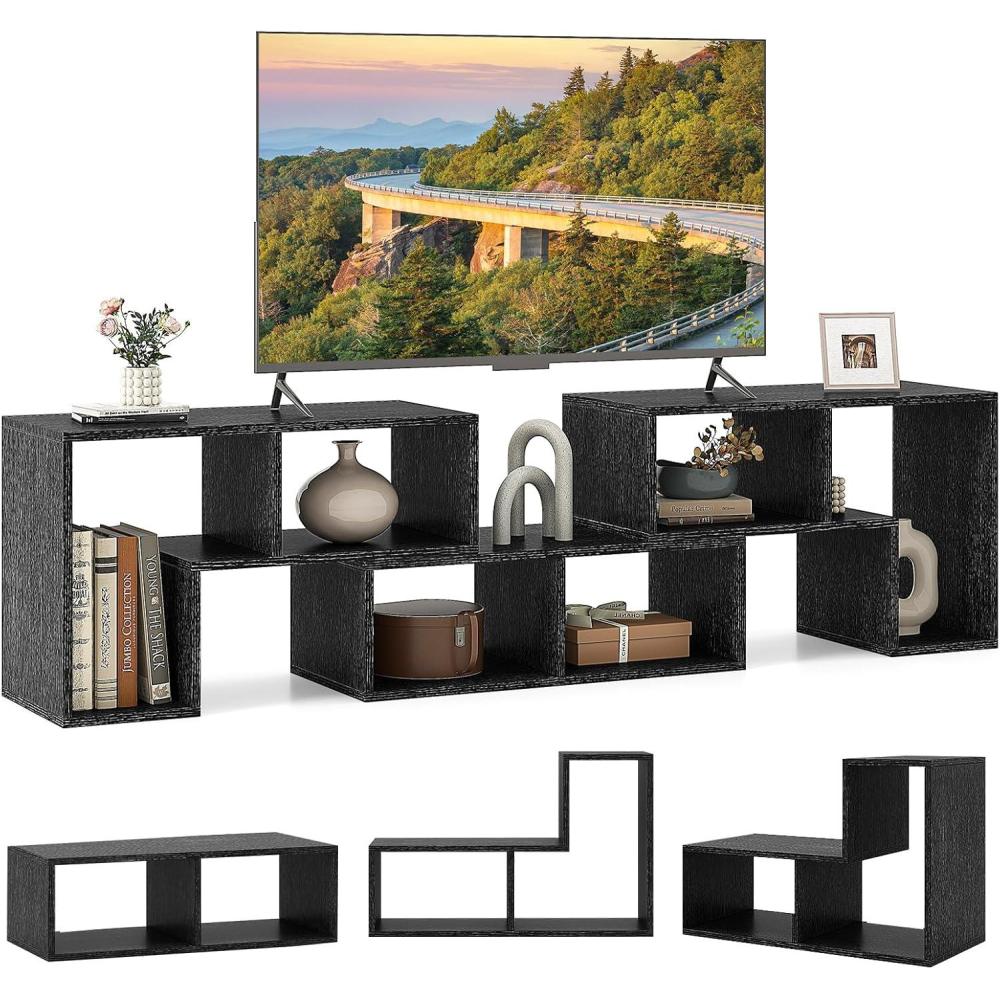 Giantex Free-Combination TV Stand for Bedroom – Entertainment Center for 50 55 60 65 Inch TV, 3-Piece Media Console Table with Storage Cubes, Deformable Open Storage Bookcase Shelf (Black Wood Grain)(Black)