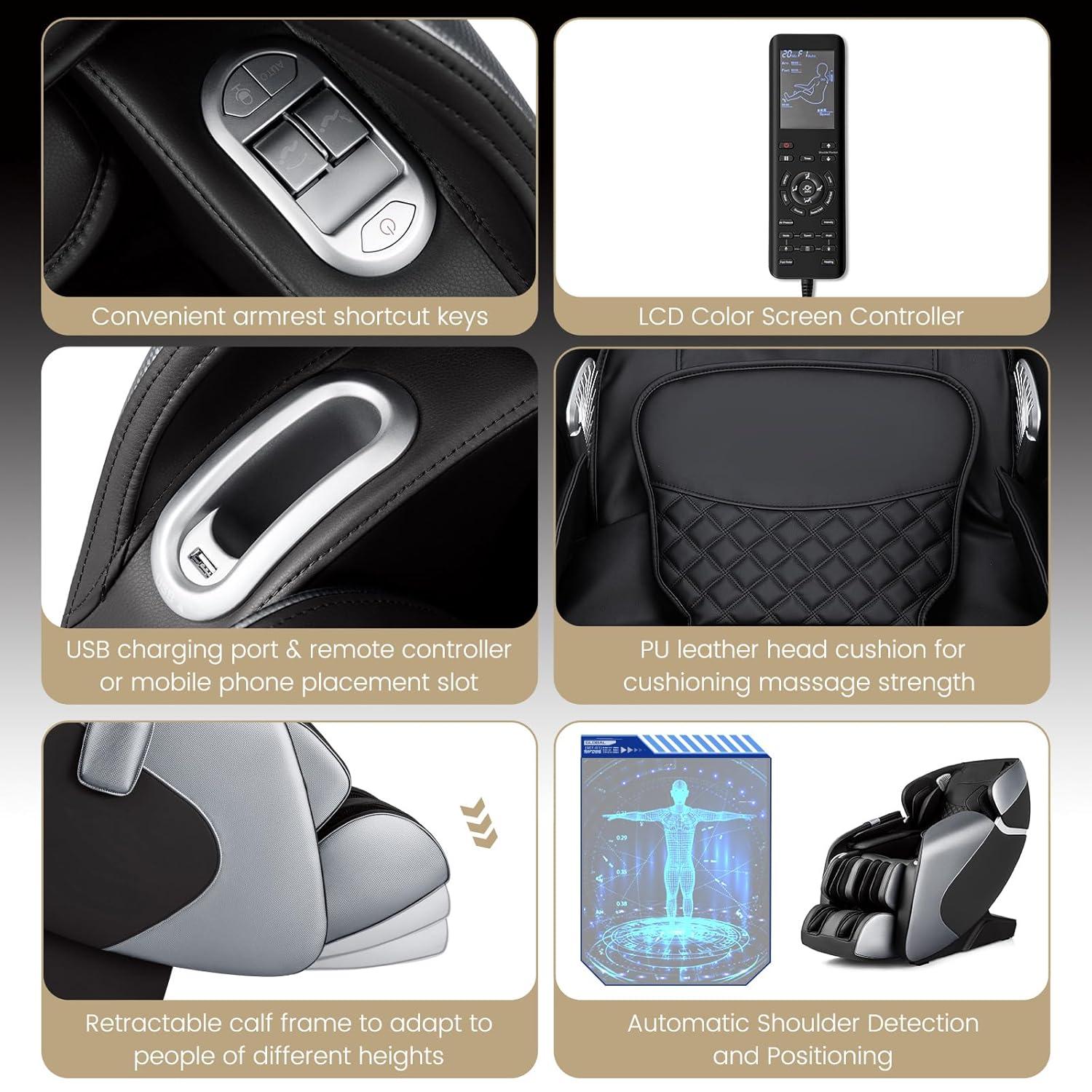 Customize Massage: There are 12 automatic massage modes, 5 massage techniques, 5 adjustable speeds, 3 adjustable widths, and 3 adjustable air pressure intensity. You can customize your massage mode according to your needs through the remote control with LCD color display. The installation-free design saves your time and energy.