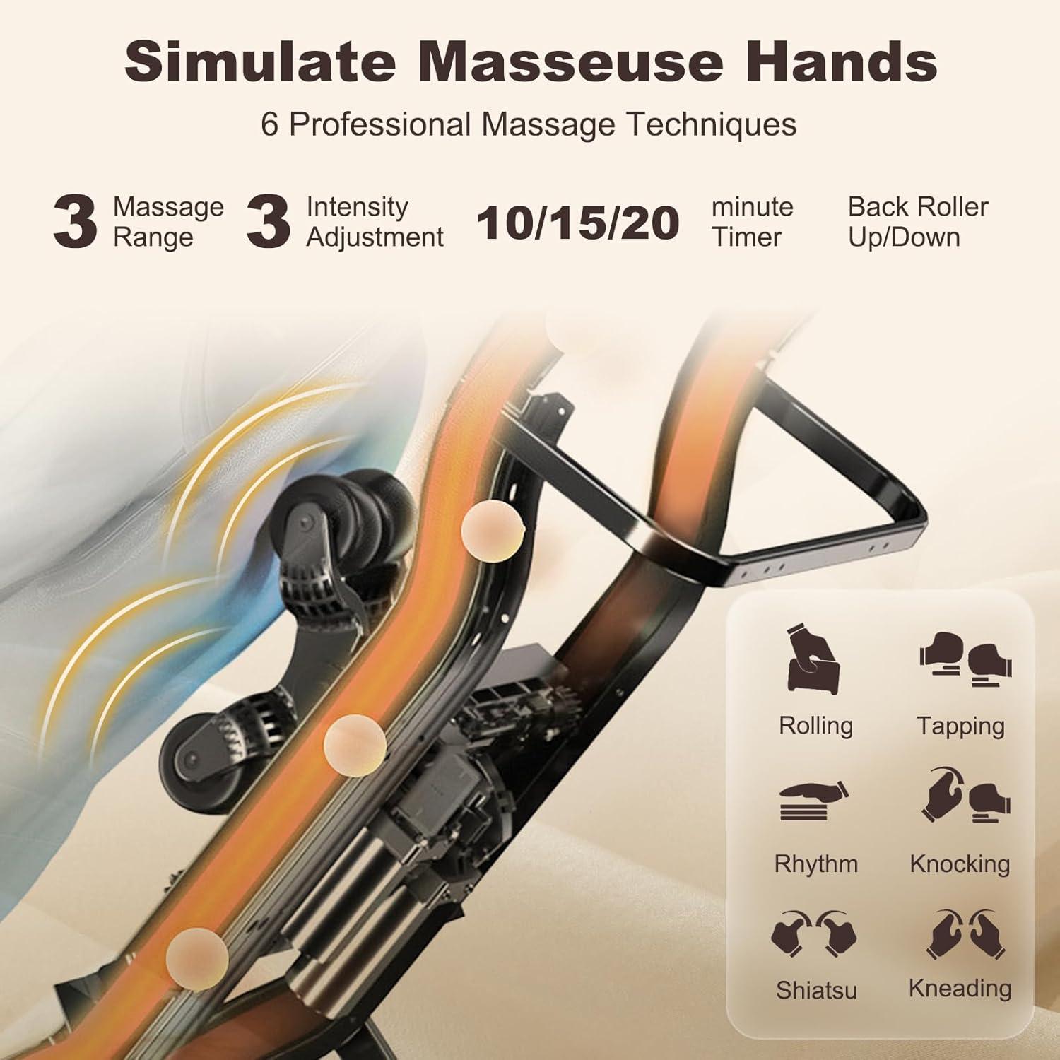 6 Professional Massage Techniques & 8 Preset Auto Modes: This massage chair offers 8 preset auto modes to meet different massage needs, especially for the elderly. It also features 6 professional massage techniques that effectively simulate the hands of a masseuse. The massage range and intensity can be adjusted in 3 levels according to your preference.