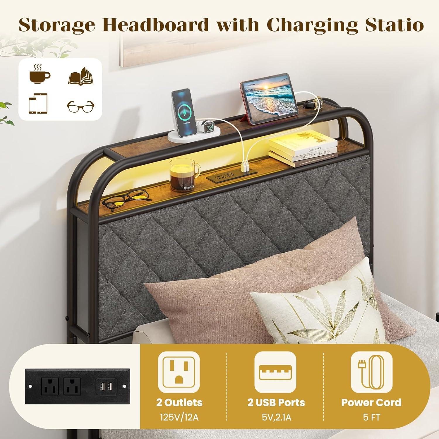 Storage Headboard with Charging Station: This full bed features a headboard with an integrated charging station, offering 2 AC outlets and 2 USB ports. Keep all your electronics powered while storing your bedside essentials in the headboard.