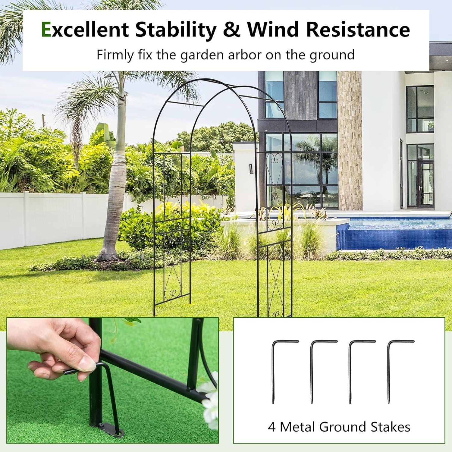 Giantex Garden Arbor with Gate, 7.5FT Metal Arch Trellis for Climbing Plants Rose Ivy, Archway Pergola with Flower Door, 4 Stakes, Garden Arch for Wedding Ceremony Bridal Party Decoration(Arch)