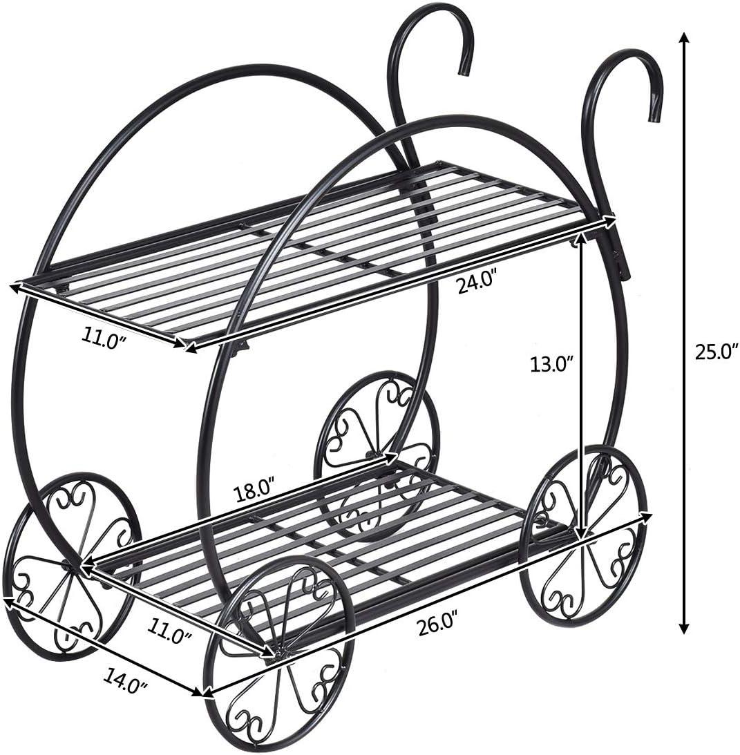 【Parisian Style Plant Stand】Parisian style cart and 4 decorative wheels with heart-shaped curved line, this plant stand looks more unique and exquisite and will be a charming decoration for your home, garden and patio.