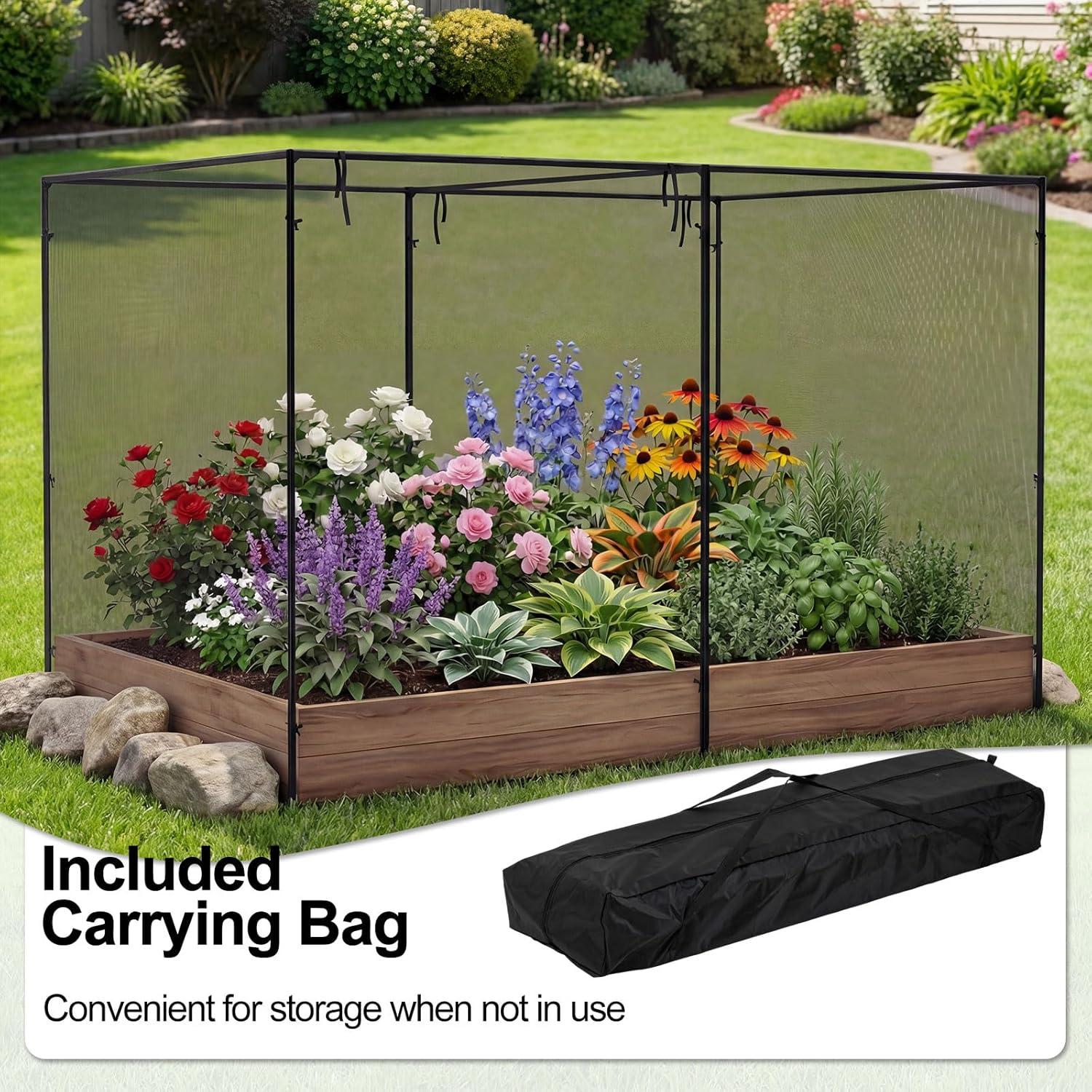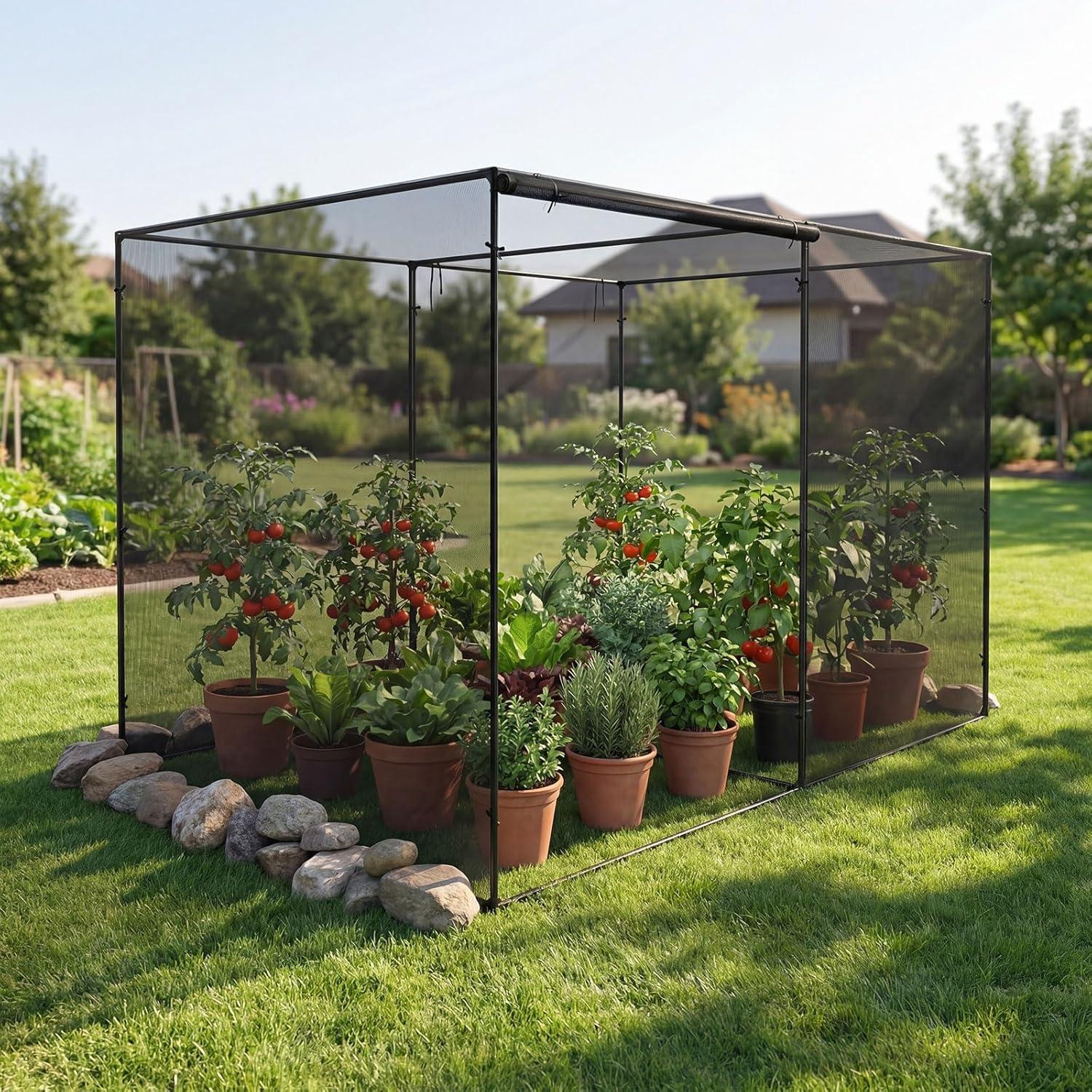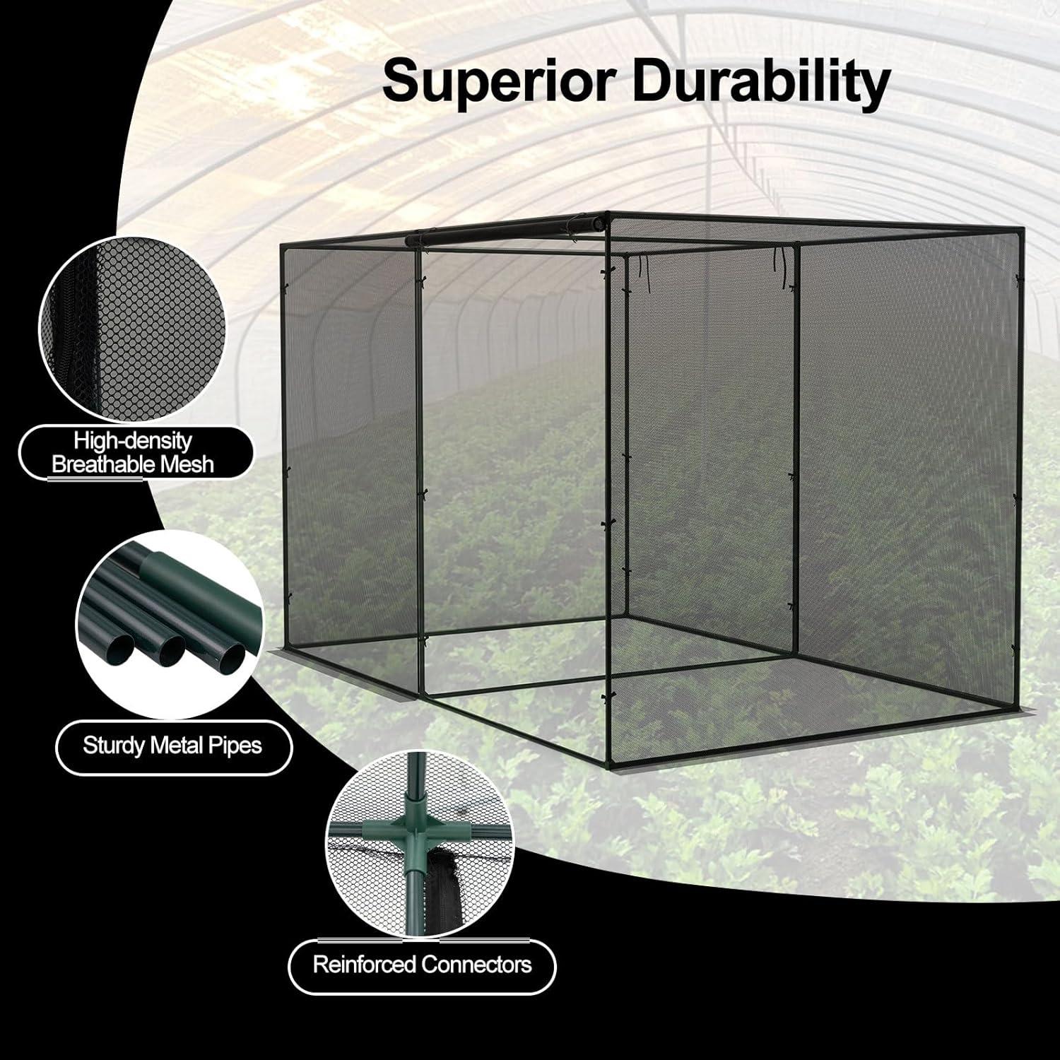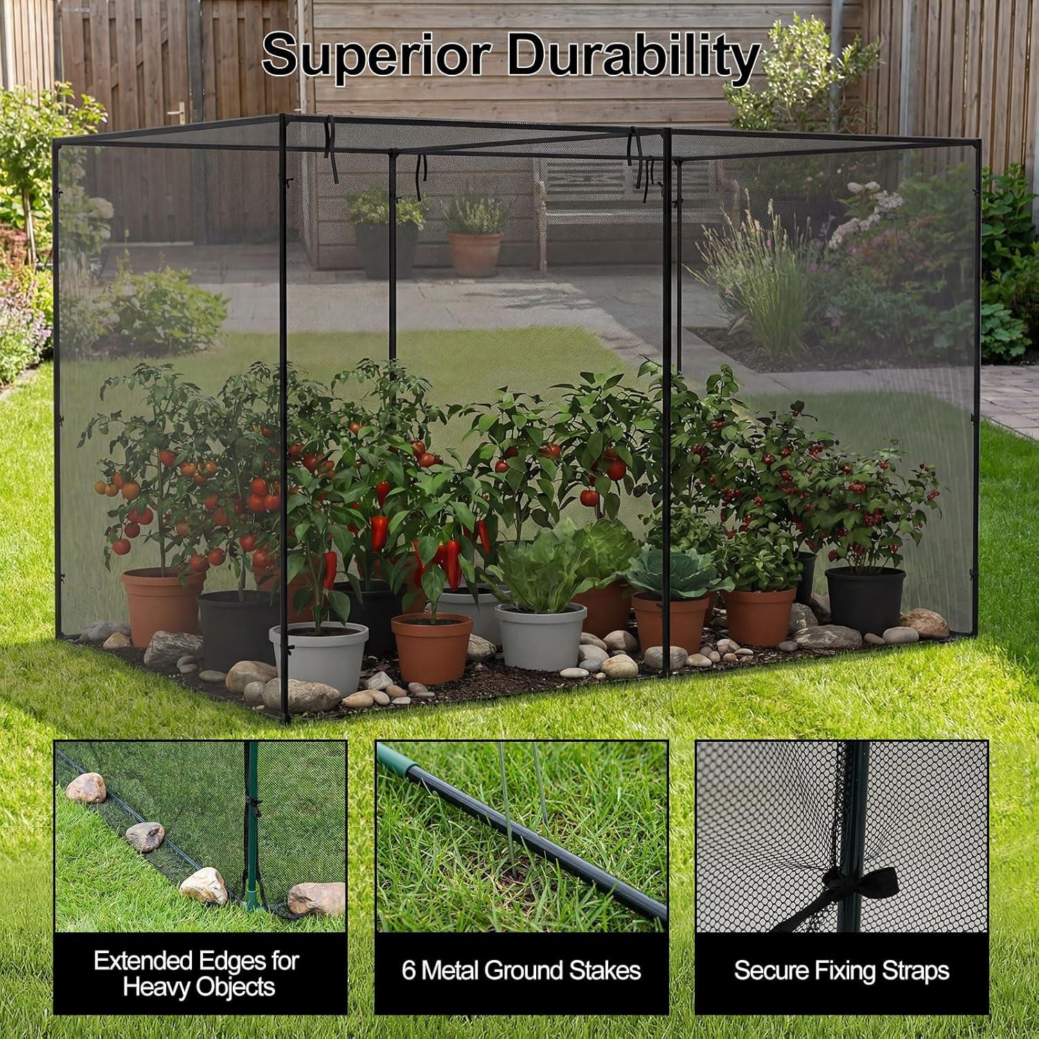 Protect your garden the smart way with our upgraded crop cage, the ultimate solution for plant lovers. This spacious garden plant cage features sturdy metal pipes, high-density mesh, and reinforced connectors to keep unwanted animals at bay, yet lets sunlight and air nurture your crops. Convenient roll-up zippered doors offer easy access to your garden crop cage, making plant care effortless. Quick to assemble and store with the included carrying bag, this versatile plant cage is ideal for gardens, lawns, and yards. Give your crops the safe, sheltered space they deserve while enjoying stress-free gardening all season long!